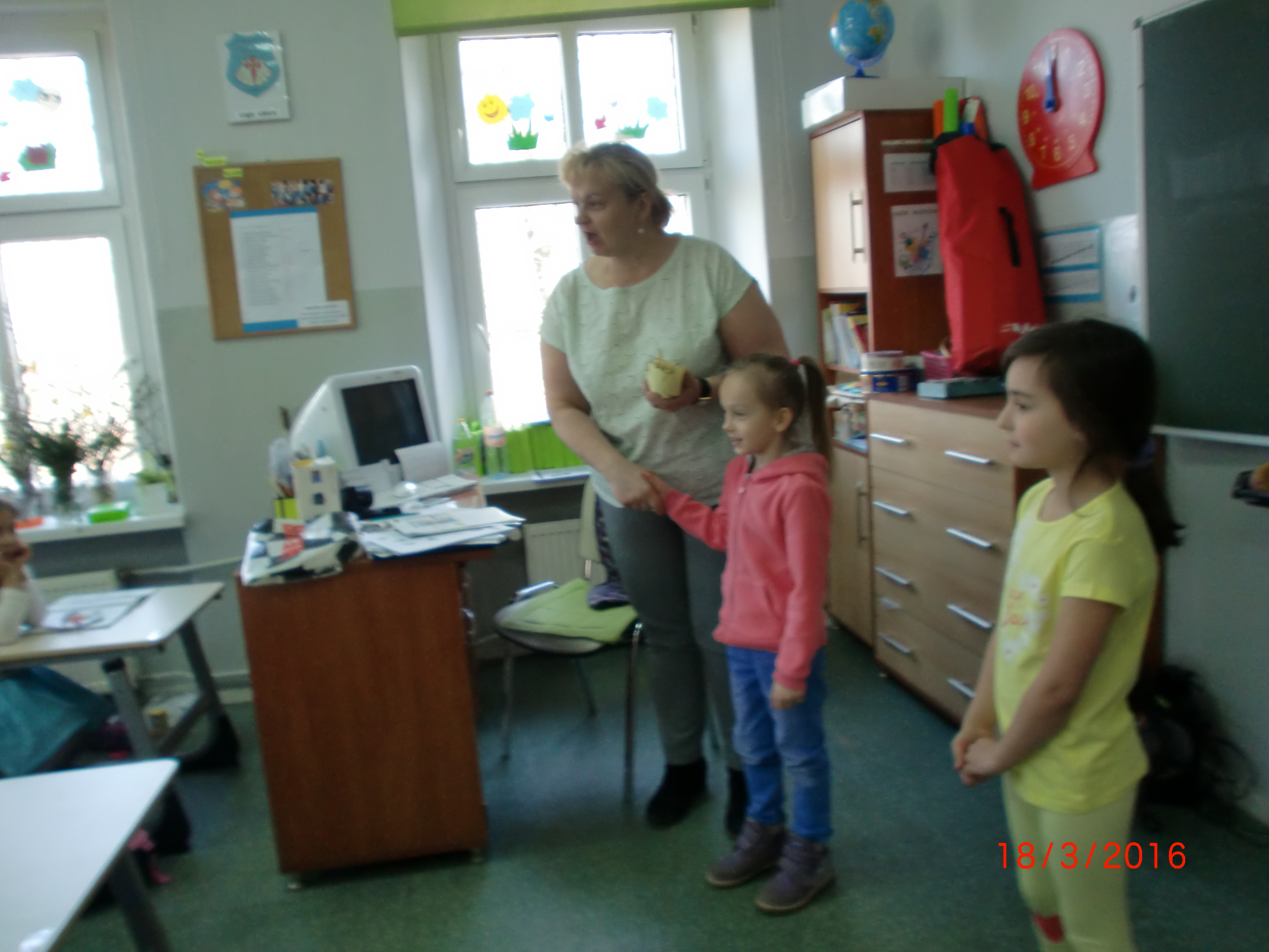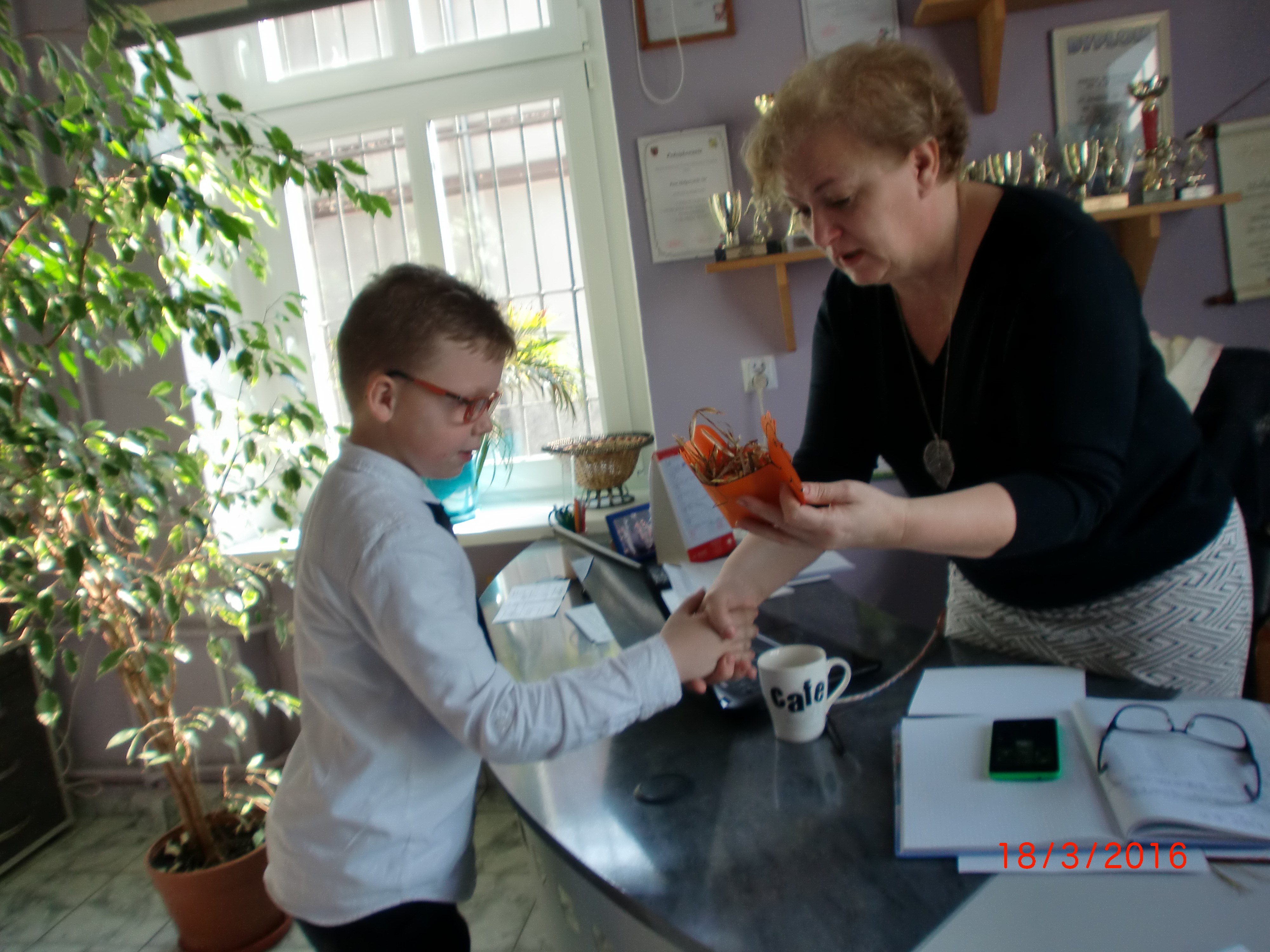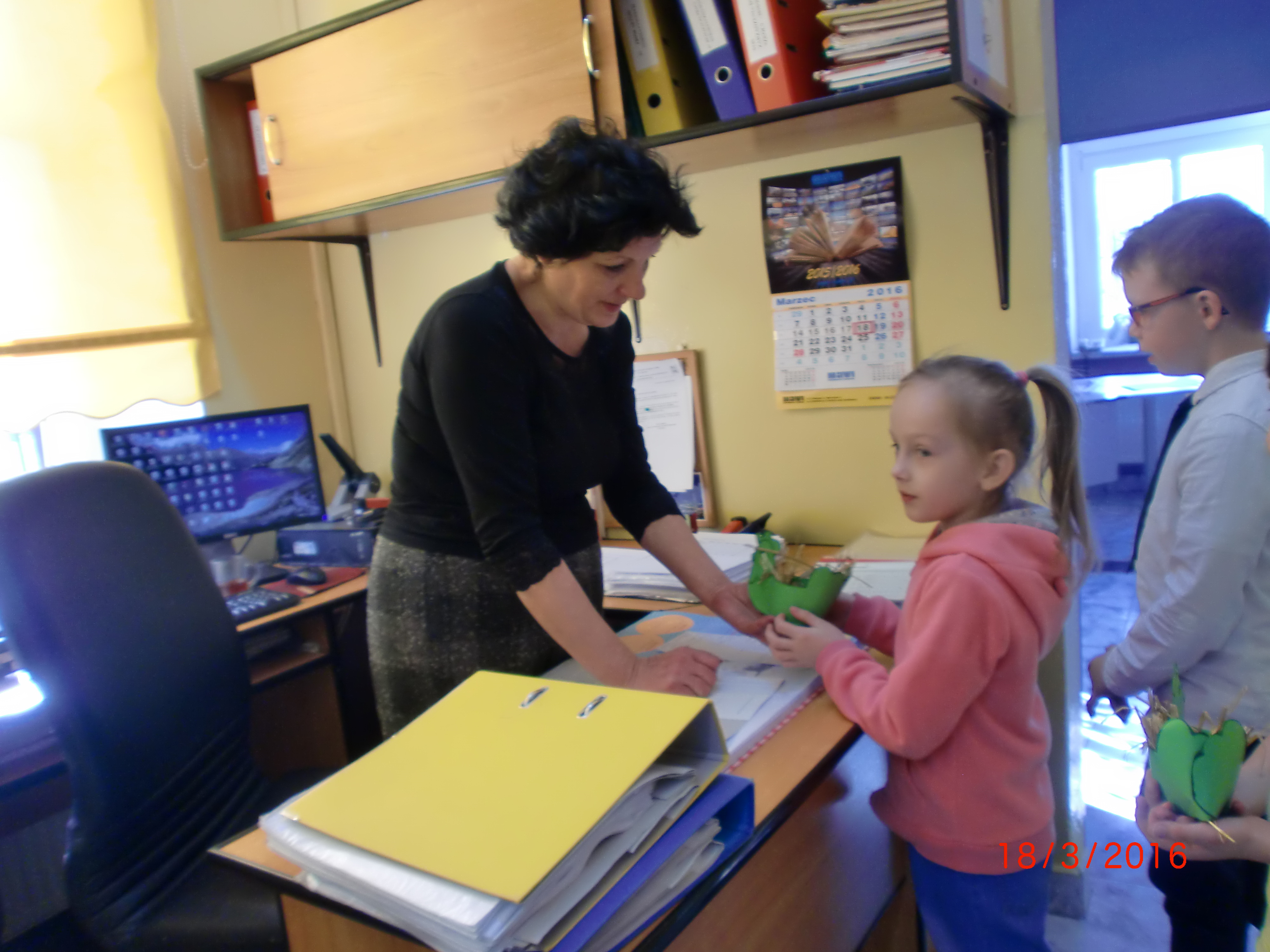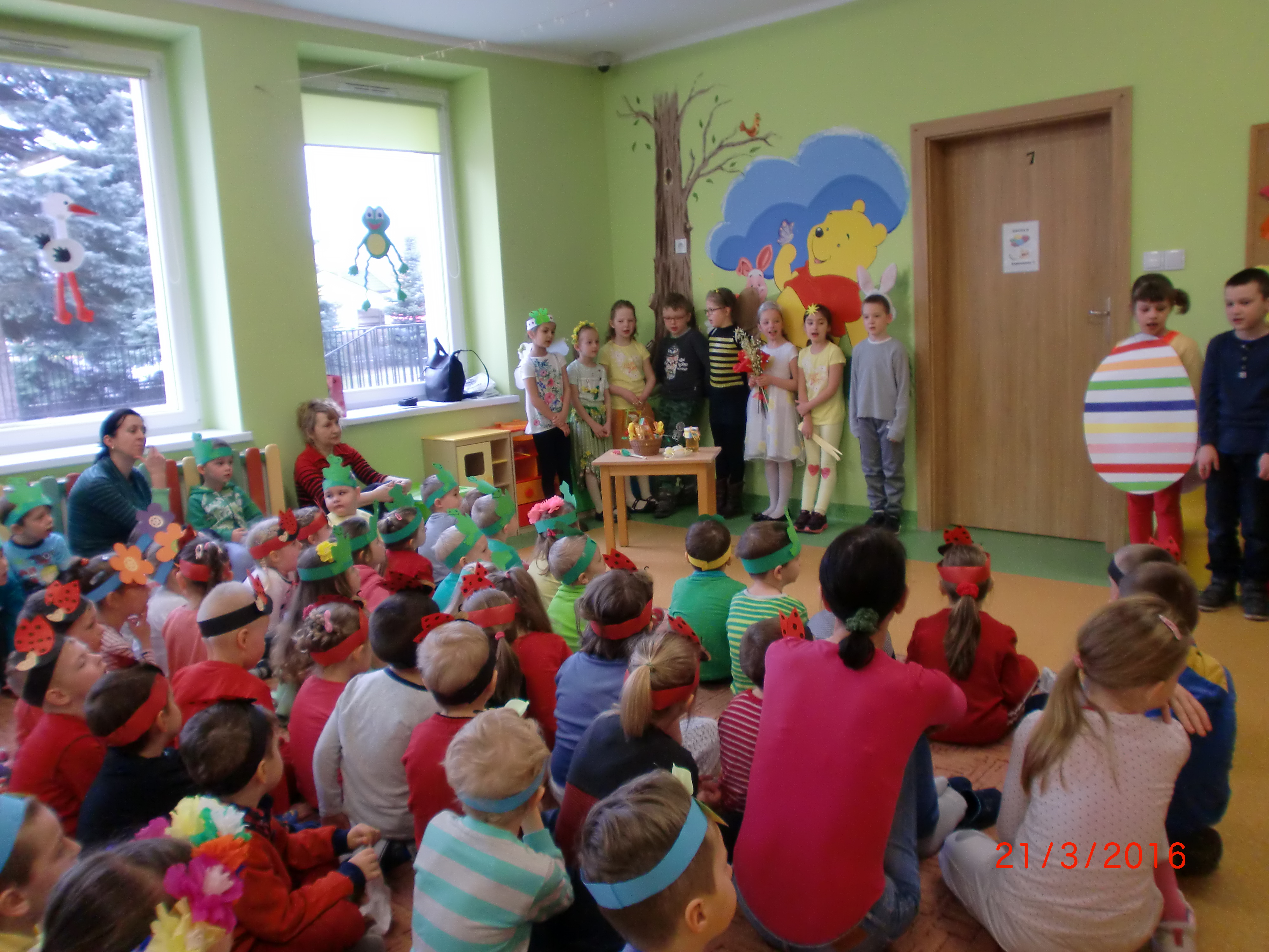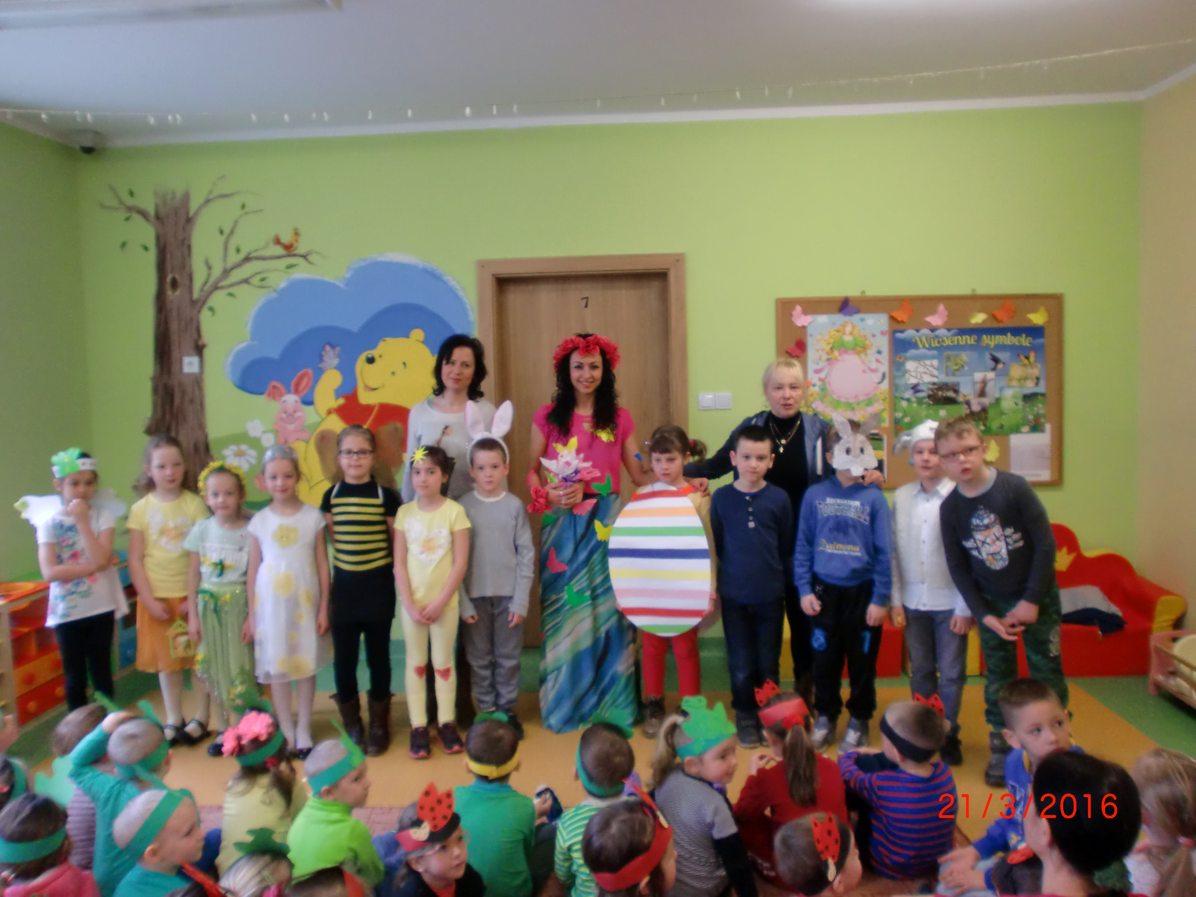 Z podobnymi życzeniami, uczniowie klasy 1b, udali się do Przedszkola Miejskiego Nr 3 w Lubaniu – wcześniej złożyli je wszystkim naszym pracownikom szkoły. Obok życzeń przedszkolaki wysłuchały wiosennych wierszyków, gdyż był to radosny, kolorowy i pierwszy dzień wiosny.