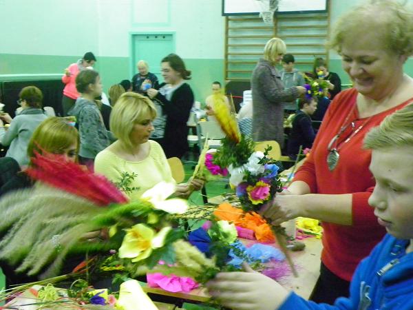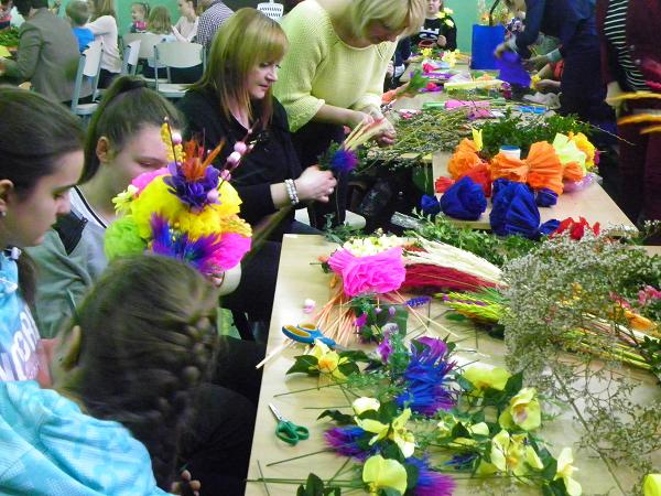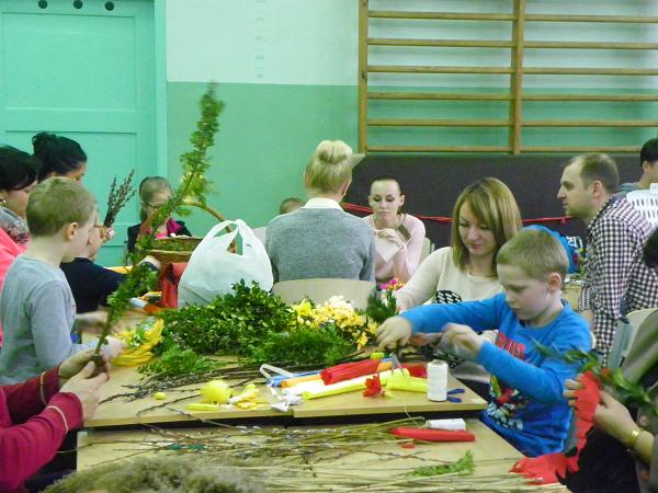 W ramach tegorocznego projektu wielkanocnego – Wielkanoc 2016, 9 marca ruszyły w naszej szkole świąteczne warsztaty artystyczne, na których nauczyciele, uczniowie i ich bliscy – rodzice, rodzeństwo, babcie ciocie i inne chętne osoby, projektowały i uwijały małe palmy wielkanocne. Pomysłów było wiele, tak jak dużo było materiałów, z których powstawały ,,wielkie ”dzieła. Z wykonanych na warsztatach lub w domu palm, każdy uczeń przygotował jedną na szkolny konkurs, który rozstrzygnięty został na przedświątecznym apelu w dniu 18.03 , a zwycięzcami zostali: Julia Zborowska kl. II a, Alicja Grabowska kl. VI, Julia Bodzenta kl. II b