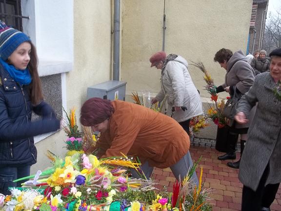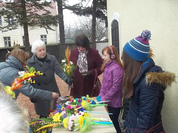 Wszystkie palmy ozdobiły i zostały sprzedane na kiermaszu, który odbył się 13.03.2016, przed kościołem NMP w Uniegoszczy, a który to kiermasz od lat cieszy się popularnością wśród mieszkańców parafii.