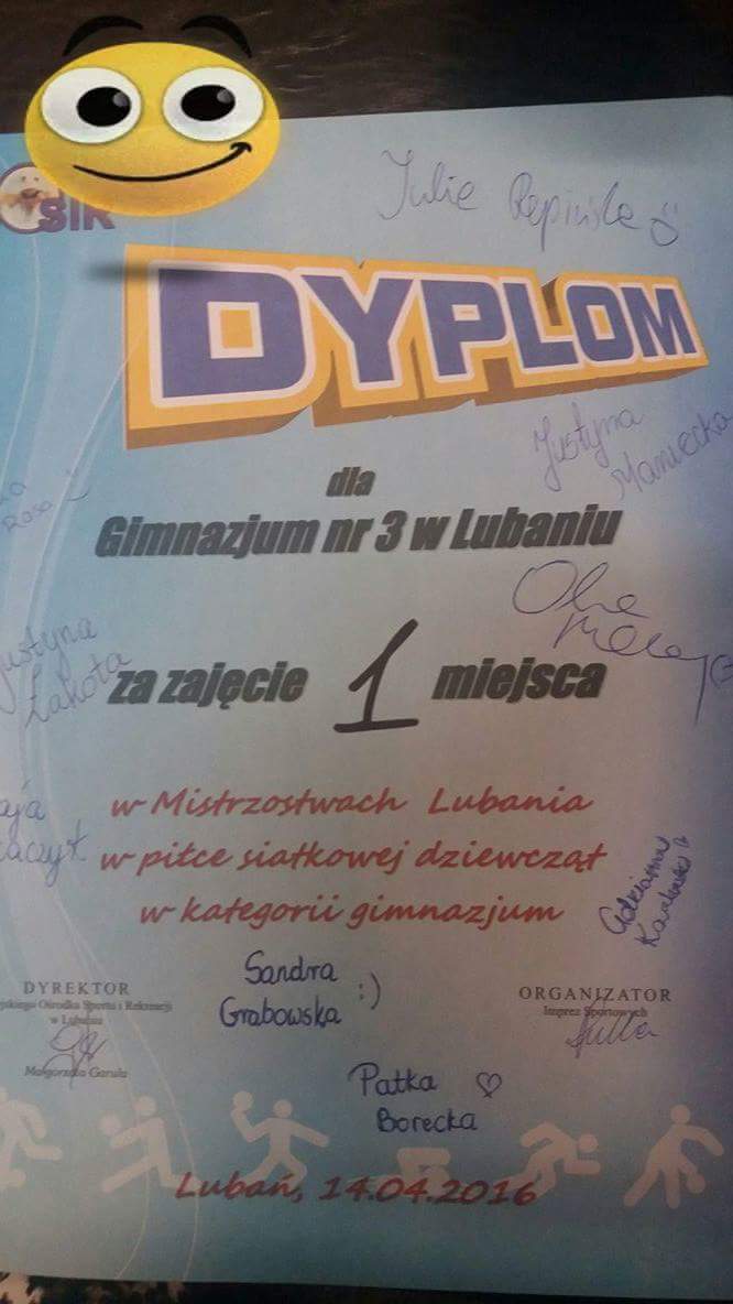 14 kwietnia 2016 na hali MOSiR w Lubaniu odbył się finał w piłce siatkowej dziewcząt i chłopców.