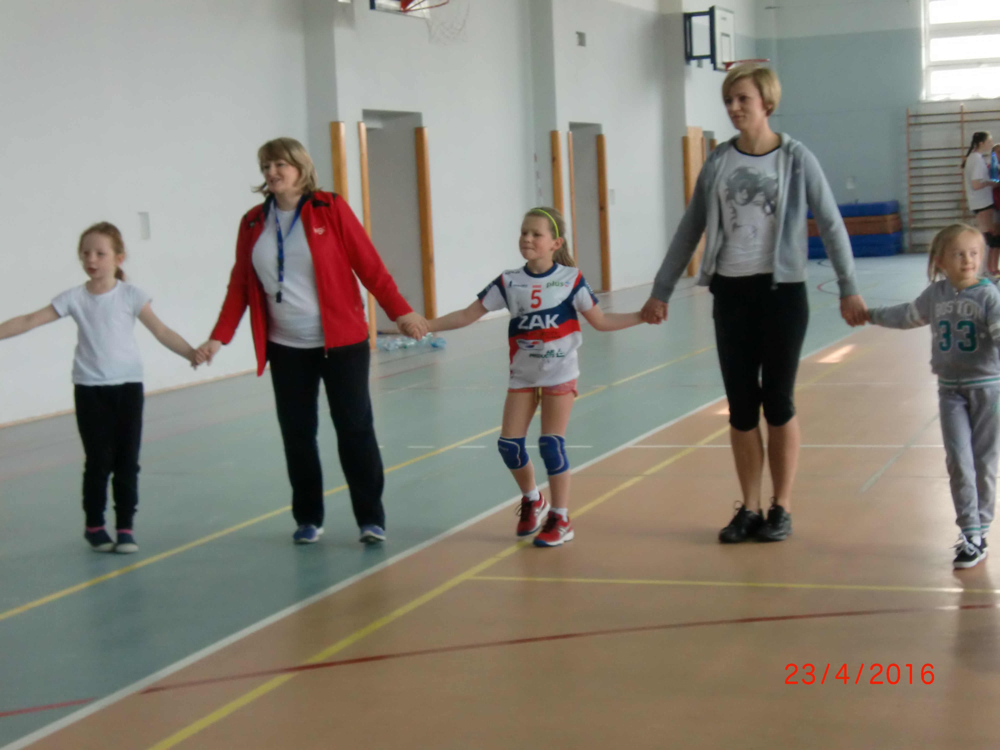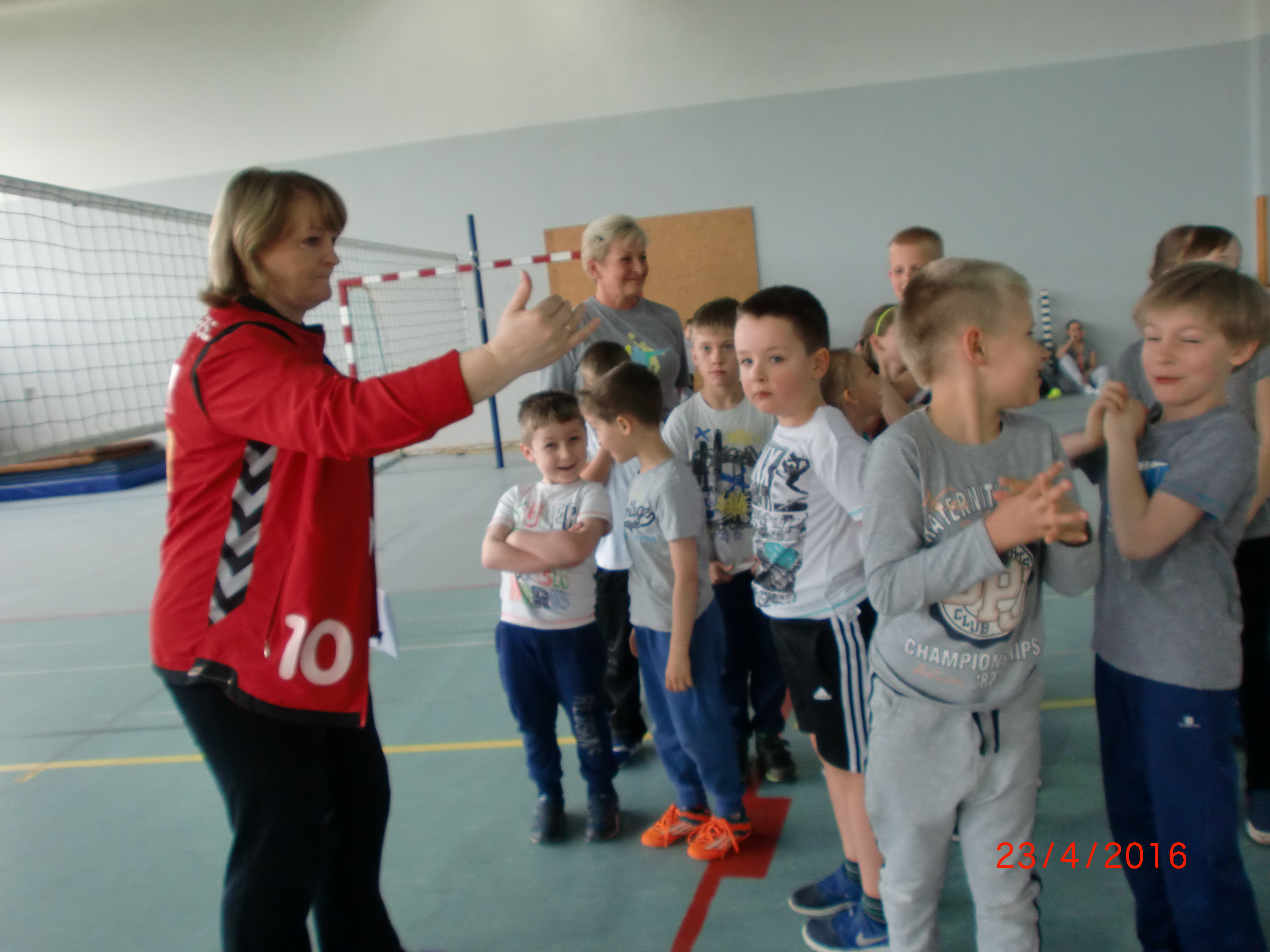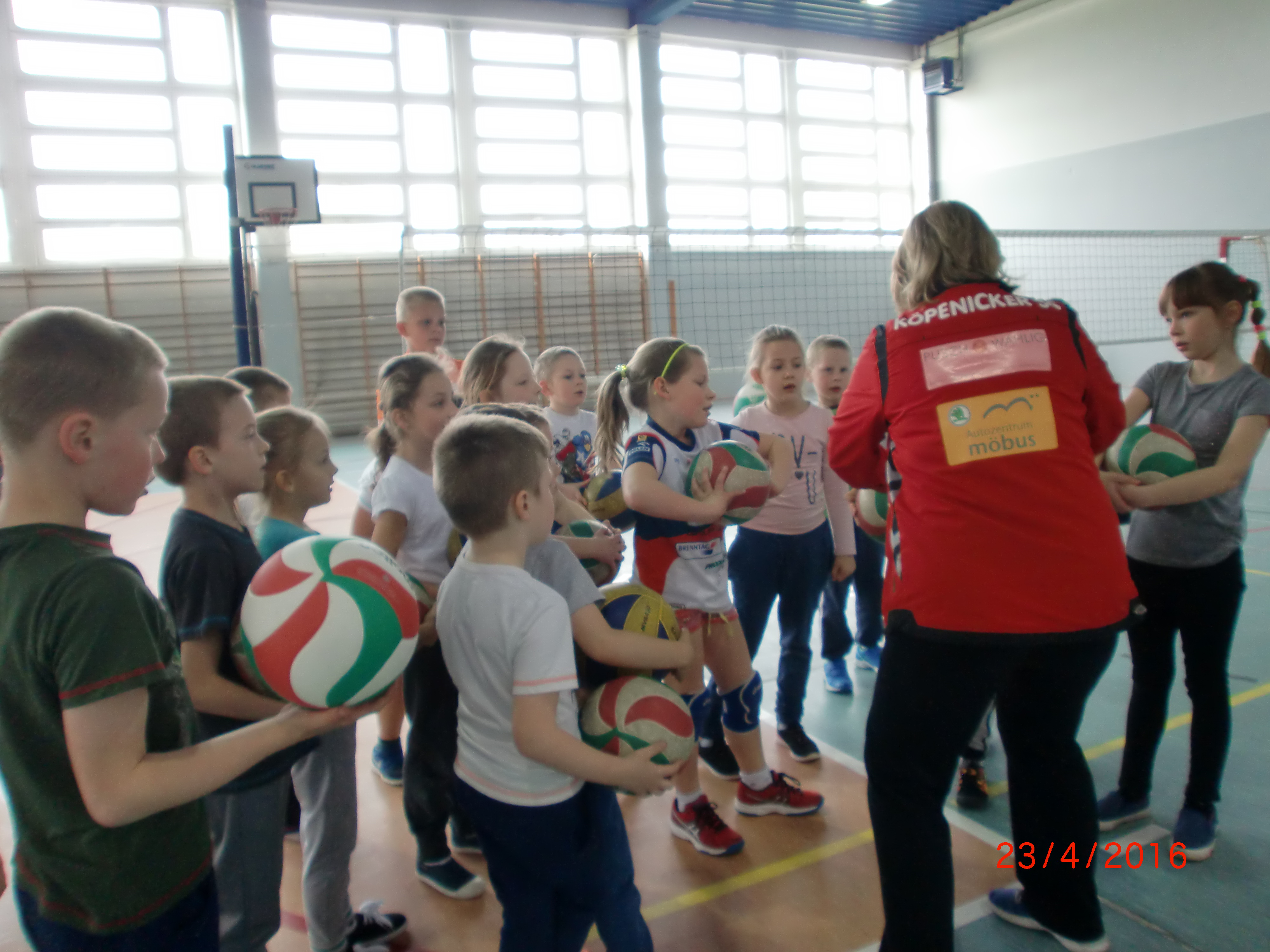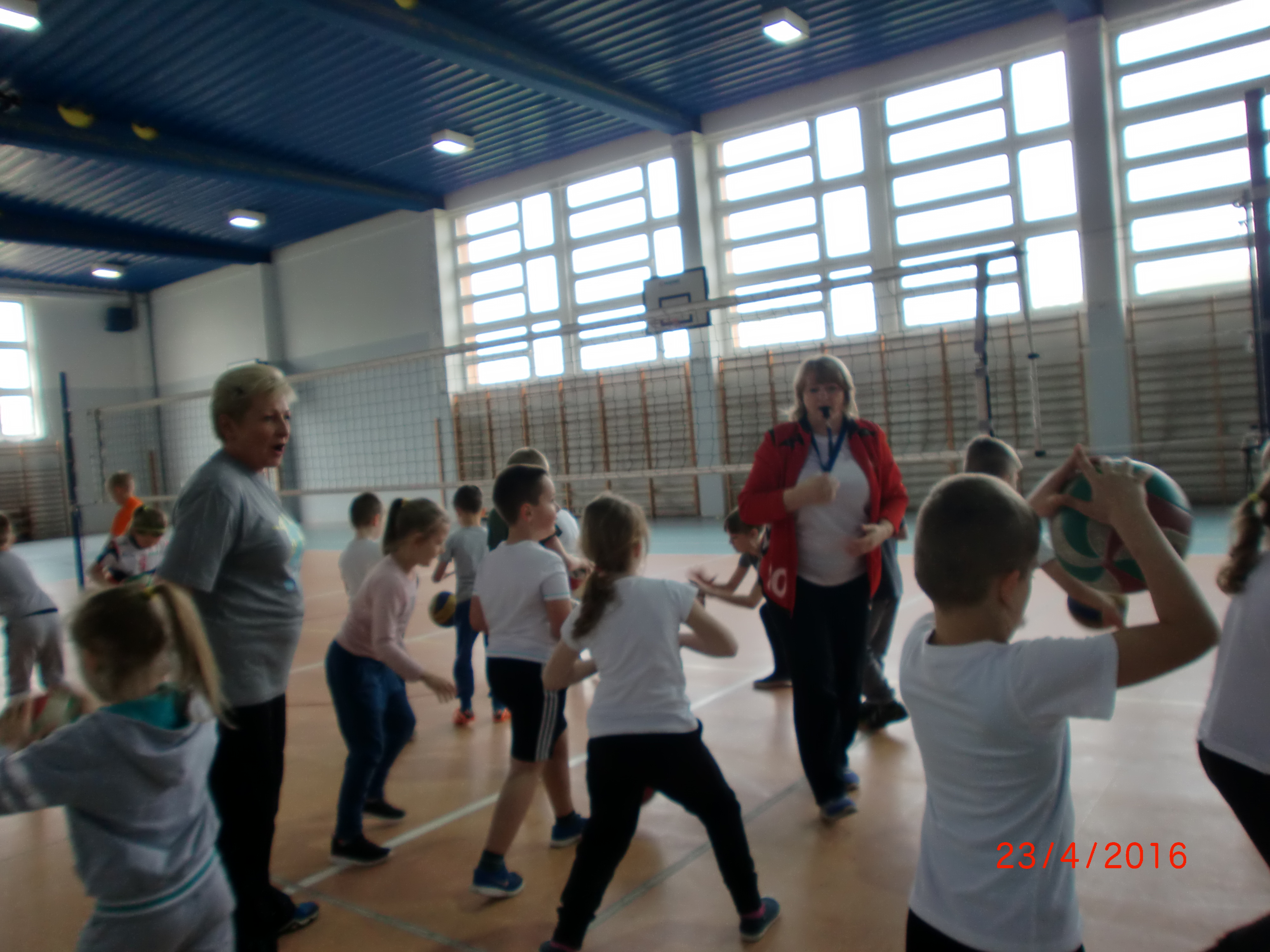 23 kwietnia, pierwszaki zaliczały kolejną sprawność w ramach projektu sportowego ,,Mały Mistrz” – jaką jest SIATKARZ. Zajęcia tym bardziej były interesujące, gdyż prowadzone przez dyplomowanych trenerów Ryszardę i Krzysztofa Leszczyńskich - szkoleniowców w Uczniowskim Klubie Sportowym Lubań.