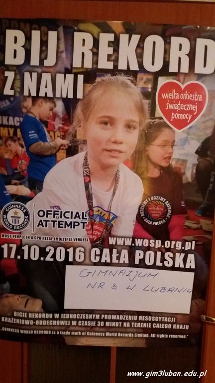 17.10.2016 r. uczniowie Gimnazjum nr 3 kolejny raz wzięli udział w Europejskim Dniu Przywracania Czynności Serca ustanowionym przez Europejską Radę Resuscytacji w 2013 r.
