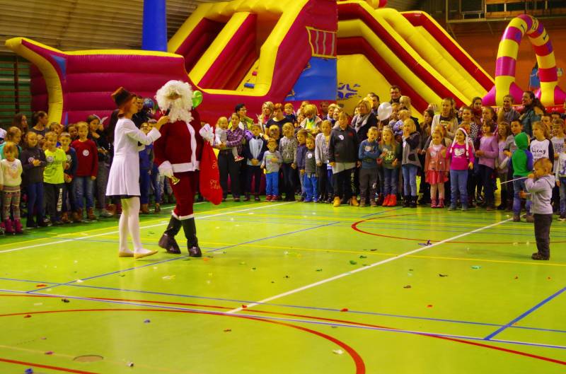 Sportowa hala zmieniła swoje oblicze, udekorowana świątecznymi balonami, choinkami, bałwankami i świecącymi wężami. 3 grudnia 2016 od 16.00 hala stanęła otworem dla małych i dużych dzieci, które mogły skorzystać z bogatej oferty różnego rodzaju zajęć.,. Plastycznie dzieci mogły się wykazać w malowaniu świąt, ozdabianiu choinek, nauczyć się wykonywać bombki w 3D, wyklejać Mikołaja, malować i ozdabiać bombki, składać świąteczne origami. Efektem końcowym były piękne dekoracje związane z choinką i Mikołajem, które mogły zostać zabrane do domów. Ruchowo dzieci mogły się wyszaleć na dwóch zamkach dmuchanych oraz trampolinie z kulkami.