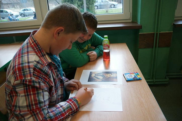 Konkurs plastyczny - 3- osobowe drużyny wykonywały techniką dowolną na kartkach w formacie A 4 pracę plastyczną - portret Tadeusza Kościuszki. Jest to jedenz patronów na rok 2017 wybrany przez sejm polski. Najwyżej oceniono prace klasy II a oraz III a;