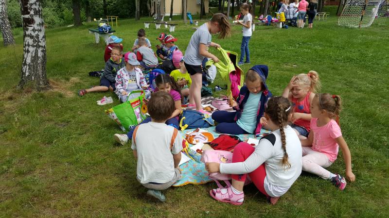 Z okazji obchodów Dnia Dziecka zorganizowany został piknik na Jeziorem Leśniańskim. Dzieci z wszystkich grup wiekowych pojechały do Bożkowic podziwiać teren przy jeziorze, obserwować przyrodę, uczestniczyć w przeróżnych zabawach ruchowych na powietrzu, spacerować po terenie ośrodka wczasowego.