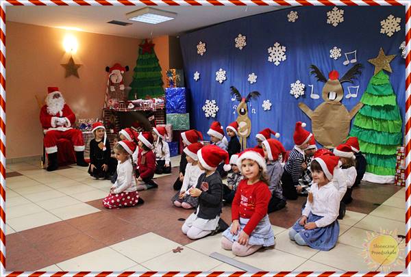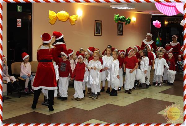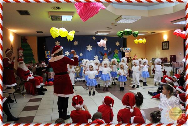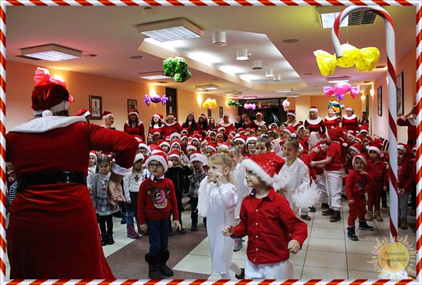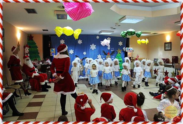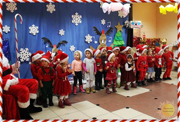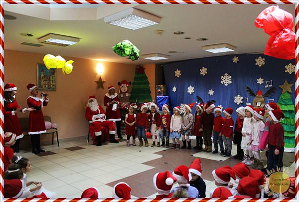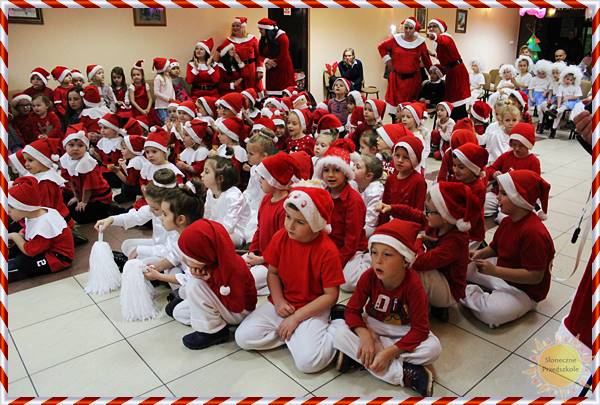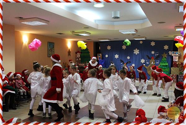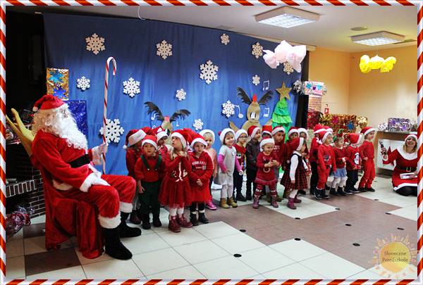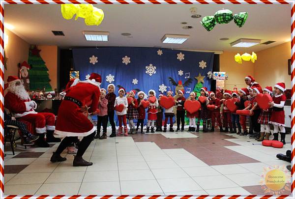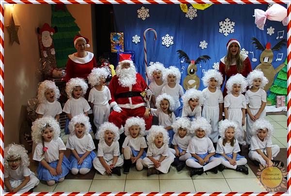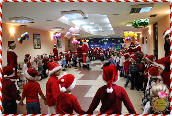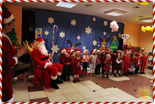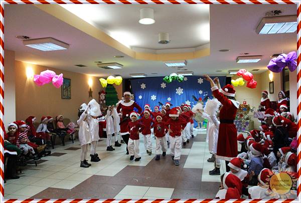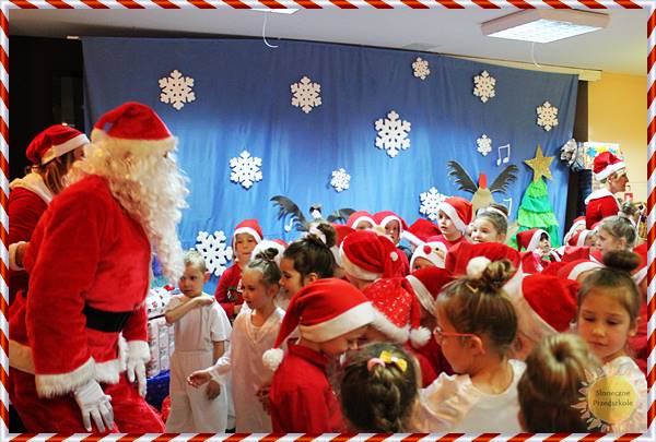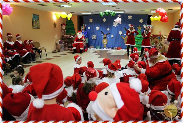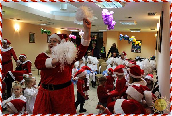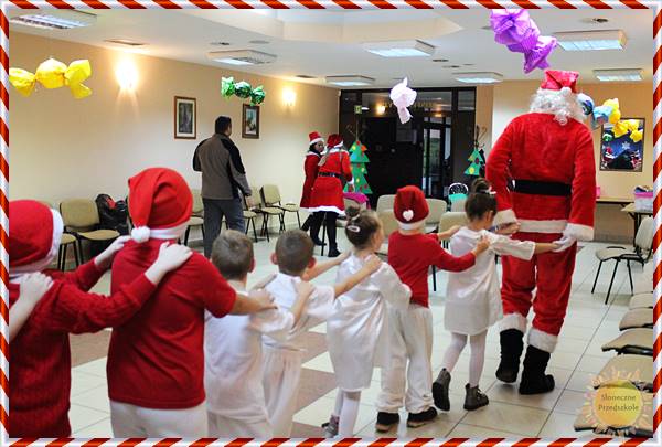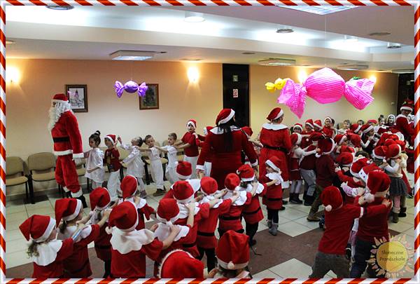 Od samego rana w całym Słonecznym Przedszkolu panowała atmosfera podekscytowania. Każde dziecko wie, że 6 grudnia, to data niezwykła. Niełatwo spokojnie usiedzieć przy śniadanku, kiedy zniecierpliwione nóżki same tupią i za nic w świecie nie chcą przestać! Byliśmy ciekawi, co wyjątkowego wydarzy się tego dnia. Z błyskiem w oku czekaliśmy na imieniny Świętego Mikołaja, na które otrzymaliśmy zaproszenie w ubiegłym tygodniu. Emocje sięgały zenitu, kiedy wybiła godzina dziewiąta i zaczęliśmy przygotowywać się do tego wyjątkowego wydarzenia. Gdy dotarliśmy na miejsce, zobaczyliśmy, że Mikołaja jeszcze nie ma... Jak się okazało - pomylił drogę i z Laponii do Lubania pojechał przez Zarębę. Musieliśmy troszkę poczarować i zaśpiewać kilka piosenek, aby udało mu się odnaleźć właściwy adres. Z pomocą dzielnej pani Eli i bohaterskiej pani Beatki, nasz zakręcony przyjaciel dotarł do nas bez większych przygód. A wtedy, to dopiero się działo! Tańce, piosenki, występy... Z resztą, zobaczcie sami :)