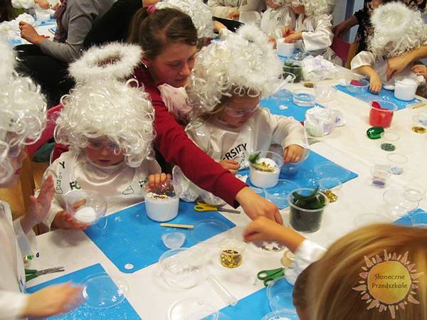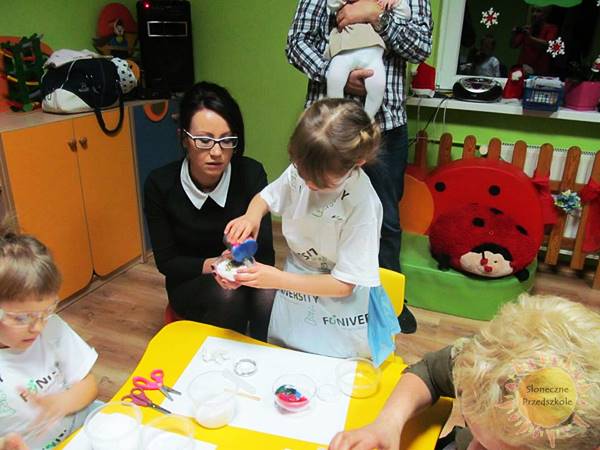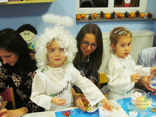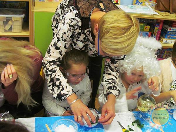 U Promyczków, w Aniołkowie również nie zabrakło śniegu. Zbliżają się Święta Bożego Narodzenia, więc Promyczki postanowiły samodzielnie go stworzyć i... udało się! Będzie śnieg!... w bombkach na choinkach :)