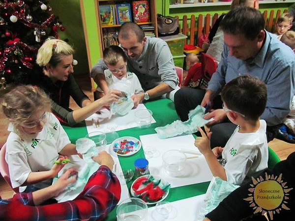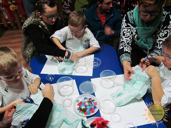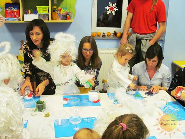 Kropelki miło spędziły czas na wspólnej zabawie z bliskimi. Najpierw delikatnie wprowadziły nas w świąteczny nastrój by następnie przenieść się do "pracowni doświadczalskiego" w celu poszukiwania super absorbentu i własnoręcznego wyprodukowania śniegu.