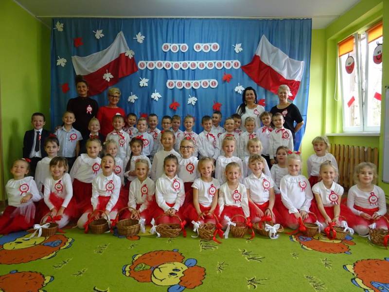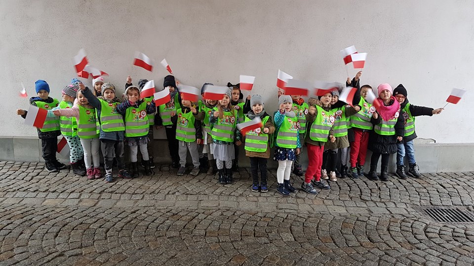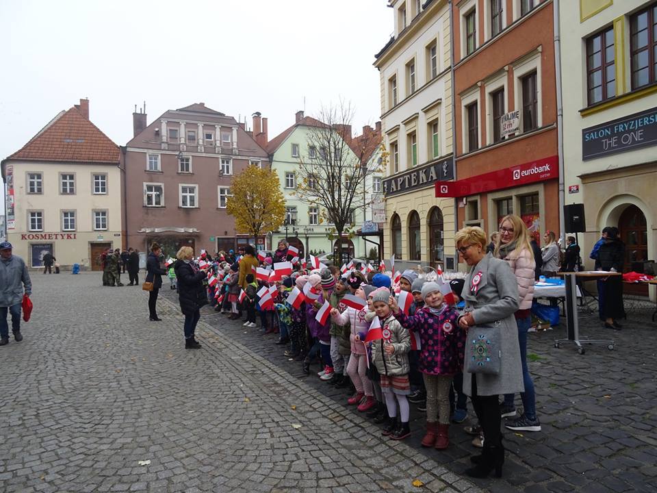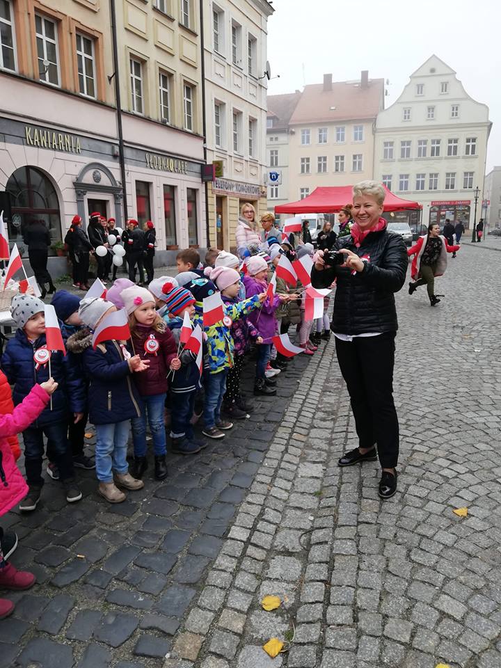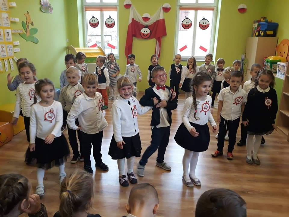 W czwartek zostł zorganizowany "poranek patriotyczny", podczas którego wszystkie przedszkolaki odśpiewały hymn Polski, a grupy starsze zatańczyły "Kujawiaka", "Poloneza" oraz odśpiewały pieśń "Od morza aż do Tatr - to Polska, to mój kraj...". W piątek wszystkie dzieci punktualnie o godz. 11.11 włączyły się do wspólnego śpiewania Mazurka Dąbrowskiego. Kropelki pięknie zatańczyły, a Zefirki swoją pieśnią wzruszyły widzów zgromadzonych pod Ratuszem. To była wspaniała lekcja hisrorii i patriotyzmu - pełna wzruszeń, refleksji, ale i radości. Jesteśmy z nich bardzo dumni!