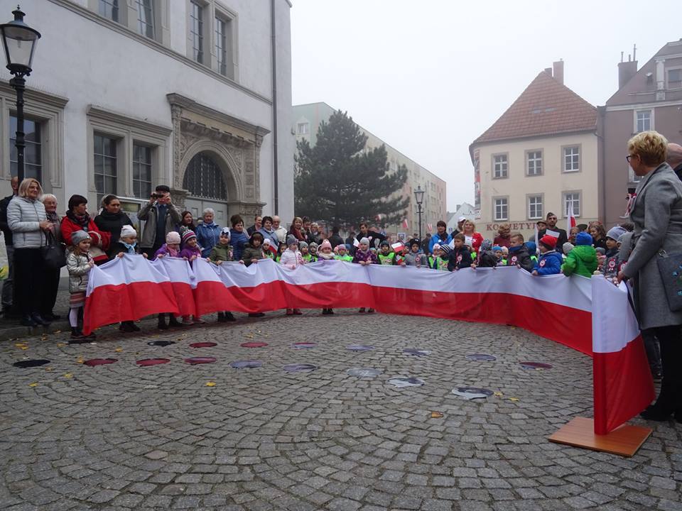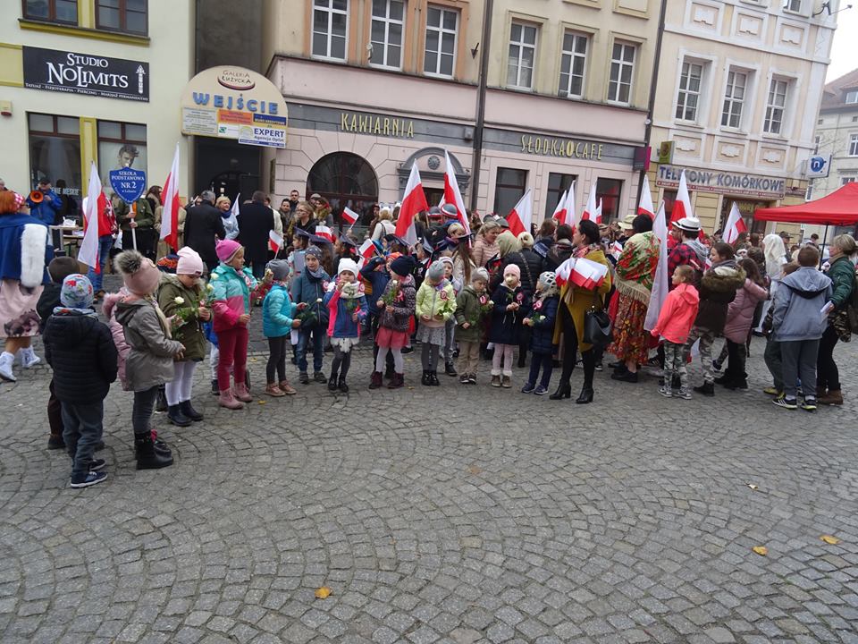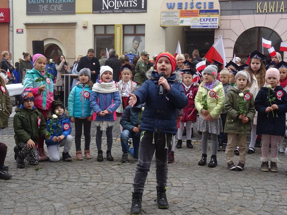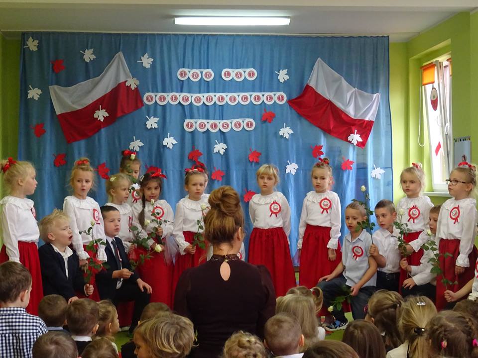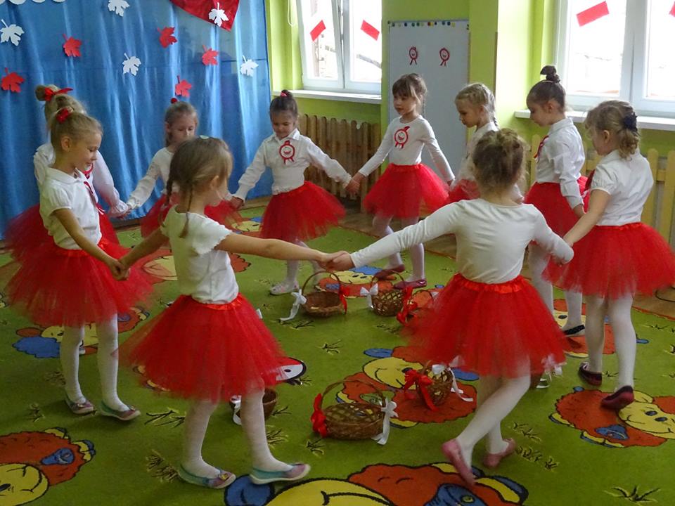 W czwartek zostł zorganizowany "poranek patriotyczny", podczas którego wszystkie przedszkolaki odśpiewały hymn Polski, a grupy starsze zatańczyły "Kujawiaka", "Poloneza" oraz odśpiewały pieśń "Od morza aż do Tatr - to Polska, to mój kraj...". W piątek wszystkie dzieci punktualnie o godz. 11.11 włączyły się do wspólnego śpiewania Mazurka Dąbrowskiego. Kropelki pięknie zatańczyły, a Zefirki swoją pieśnią wzruszyły widzów zgromadzonych pod Ratuszem. To była wspaniała lekcja hisrorii i patriotyzmu - pełna wzruszeń, refleksji, ale i radości. Jesteśmy z nich bardzo dumni!