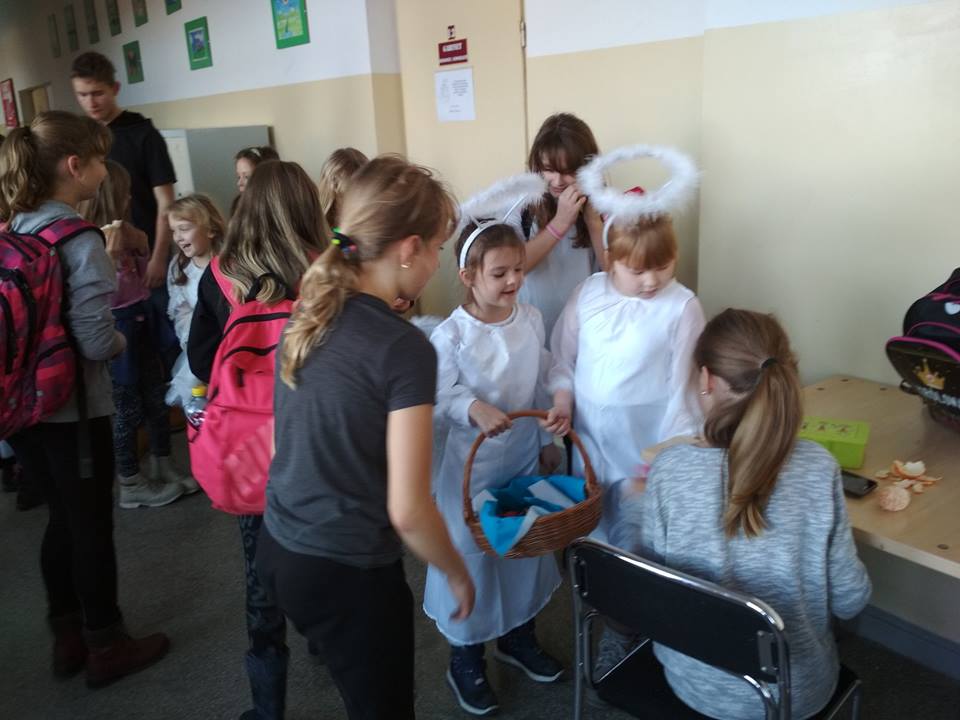 Dnia 5.12.2018 r. naszą szkołę odwiedziły Anioły. Obdarowywały wszystkich własnoręcznie upieczonymi i ozdobionymi pierniczkami, cukierkami i miłym słowem.