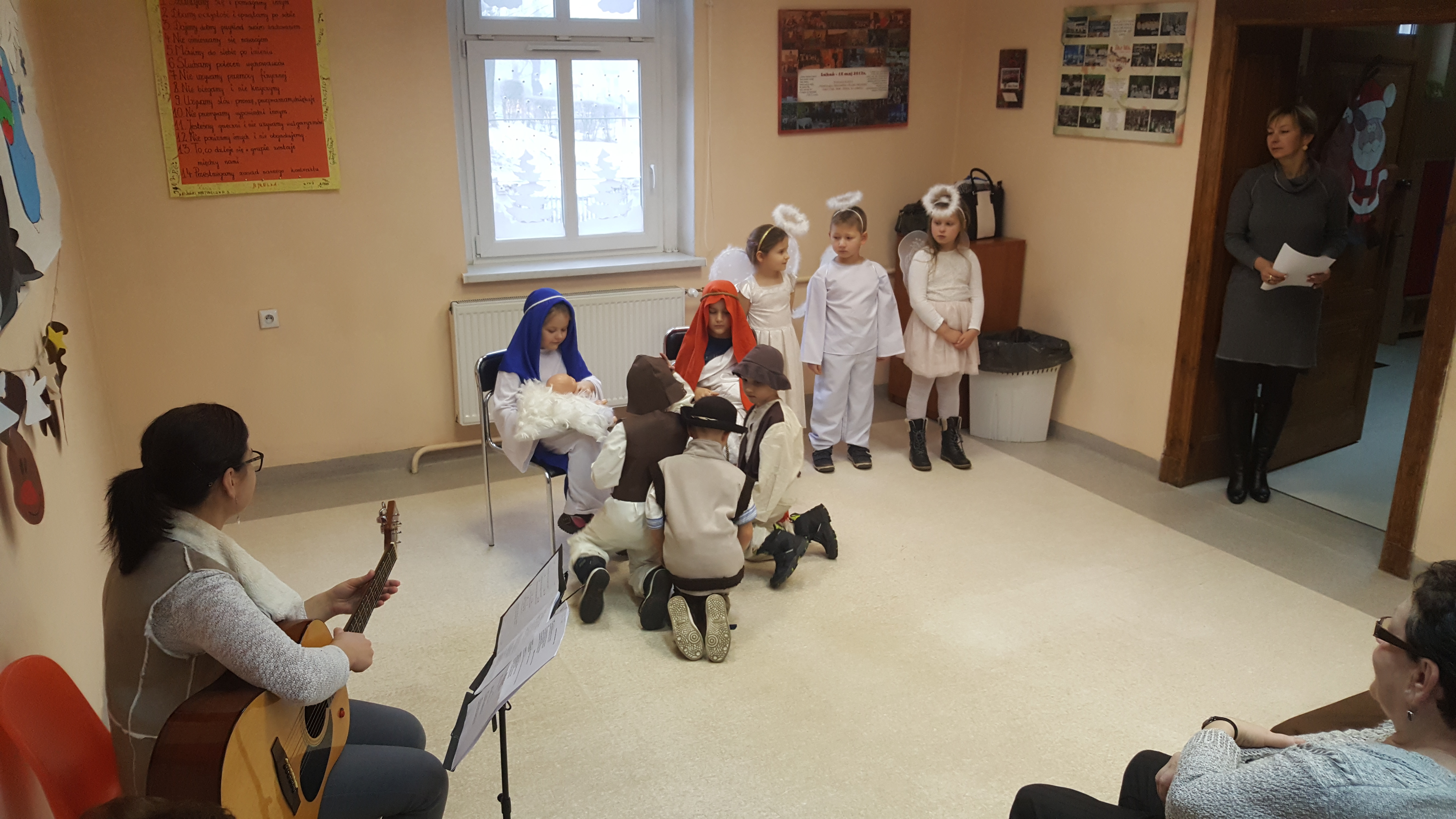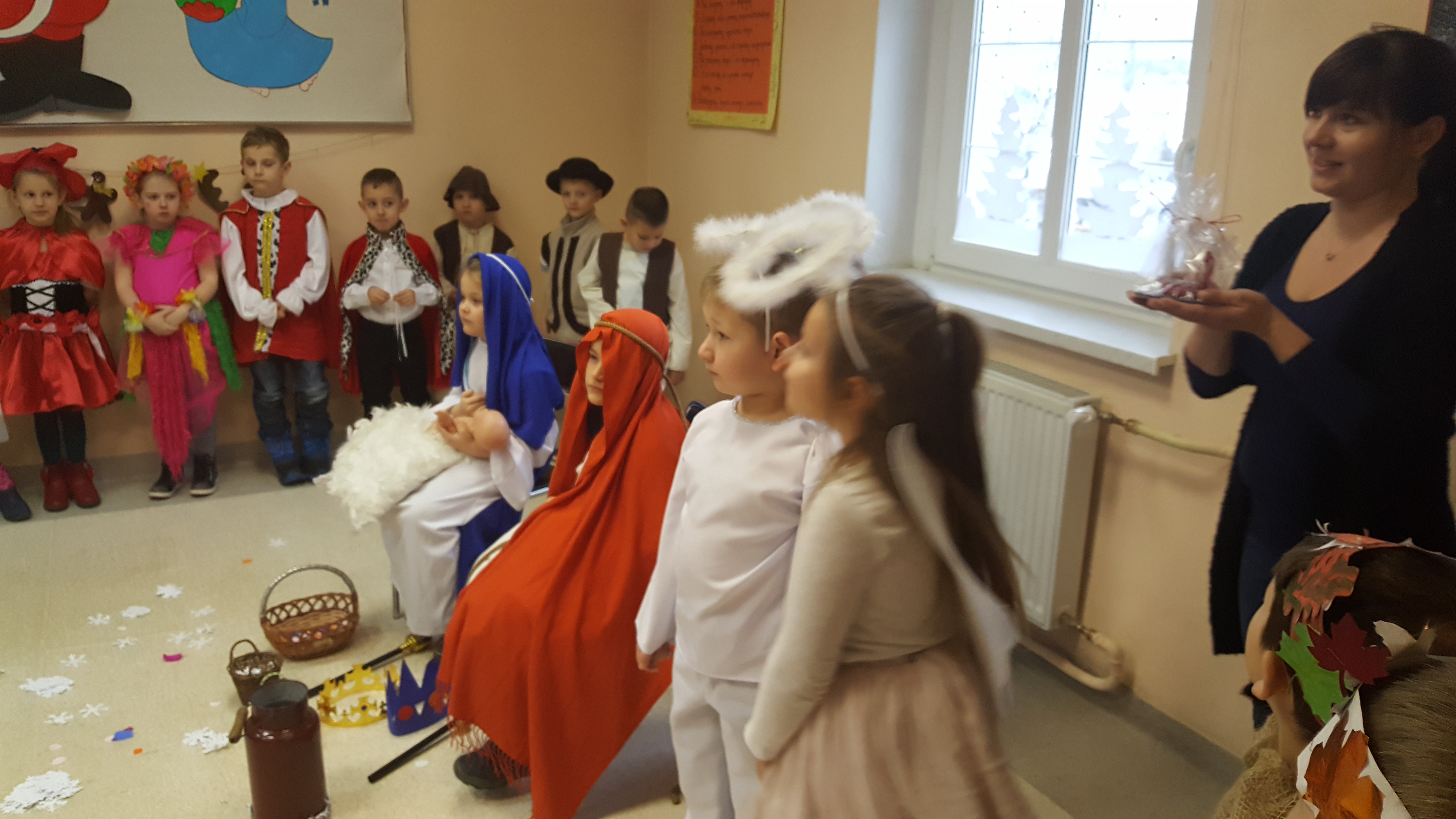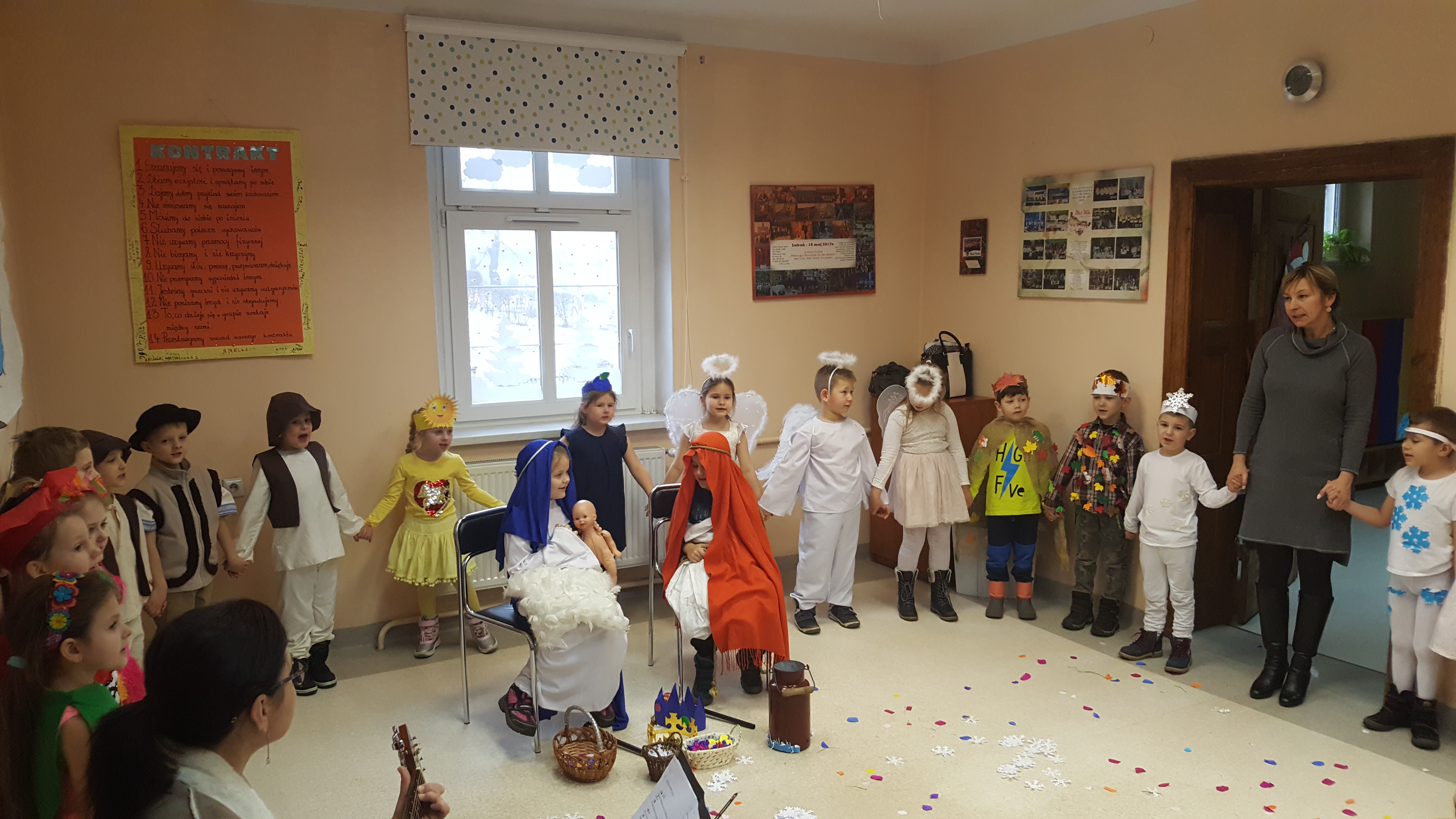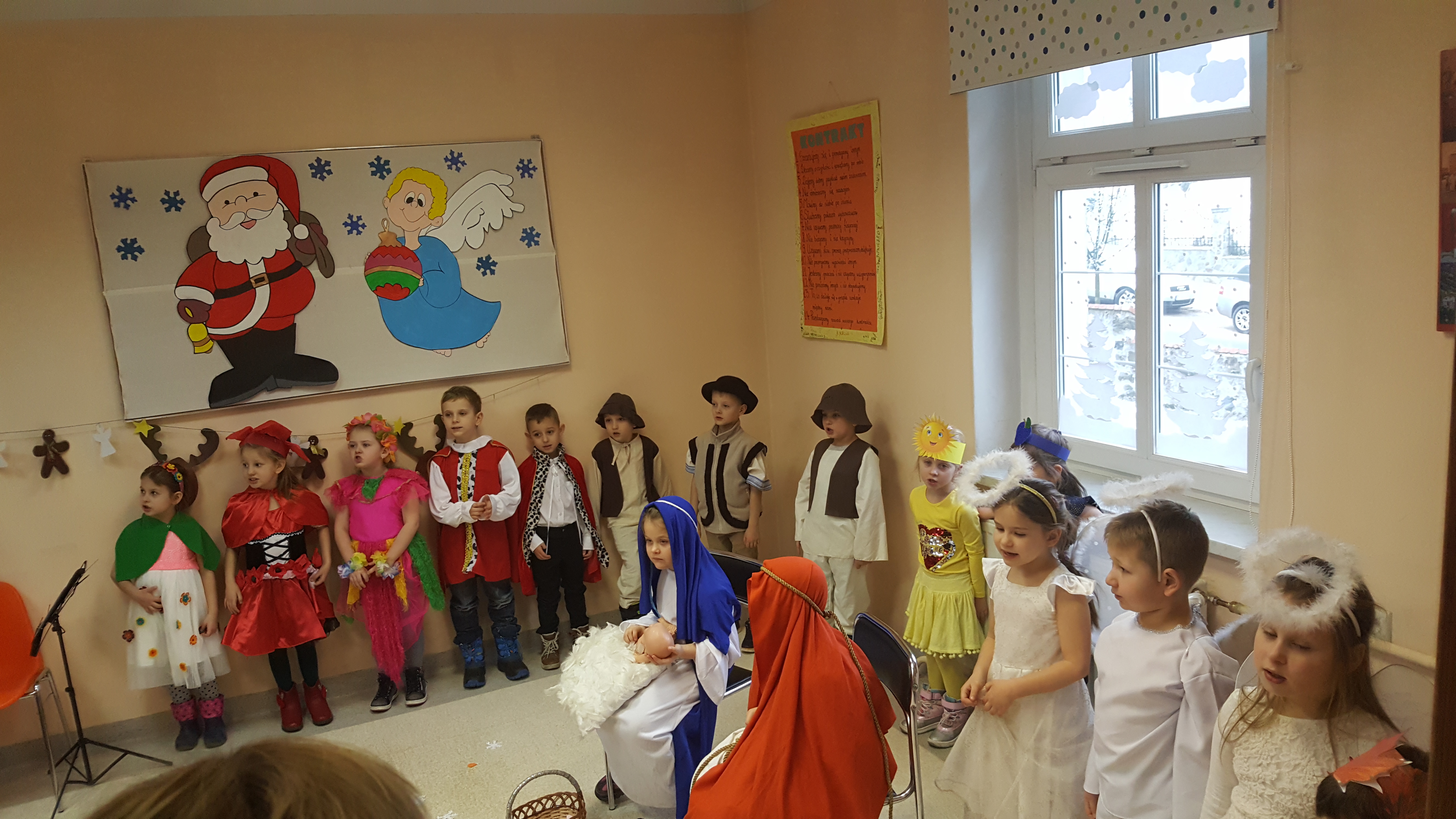 Dzieci wybrały się tam z programem bożonarodzeniowym -jasełka, przygotowanym specjalnie na tę szczególną okazję, śpiewały kolędy i składały życzenia. Seniorzy entuzjastycznie reagowali na występ dzieci przedszkolnych i nagradzali gromkimi brawami. Za piękny występ dzieci zostały obdarowane słodkim upominkiem. Wizyta w Ośrodku Wsparcia Dziennego była dla przedszkolaków kolejną lekcją wychowawczą - dzieci zrozumiały w jaki sposób można sprawić radość u osób starszych, jak szanować i okazywać życzliwość. Było dużo radości, miłych słów.