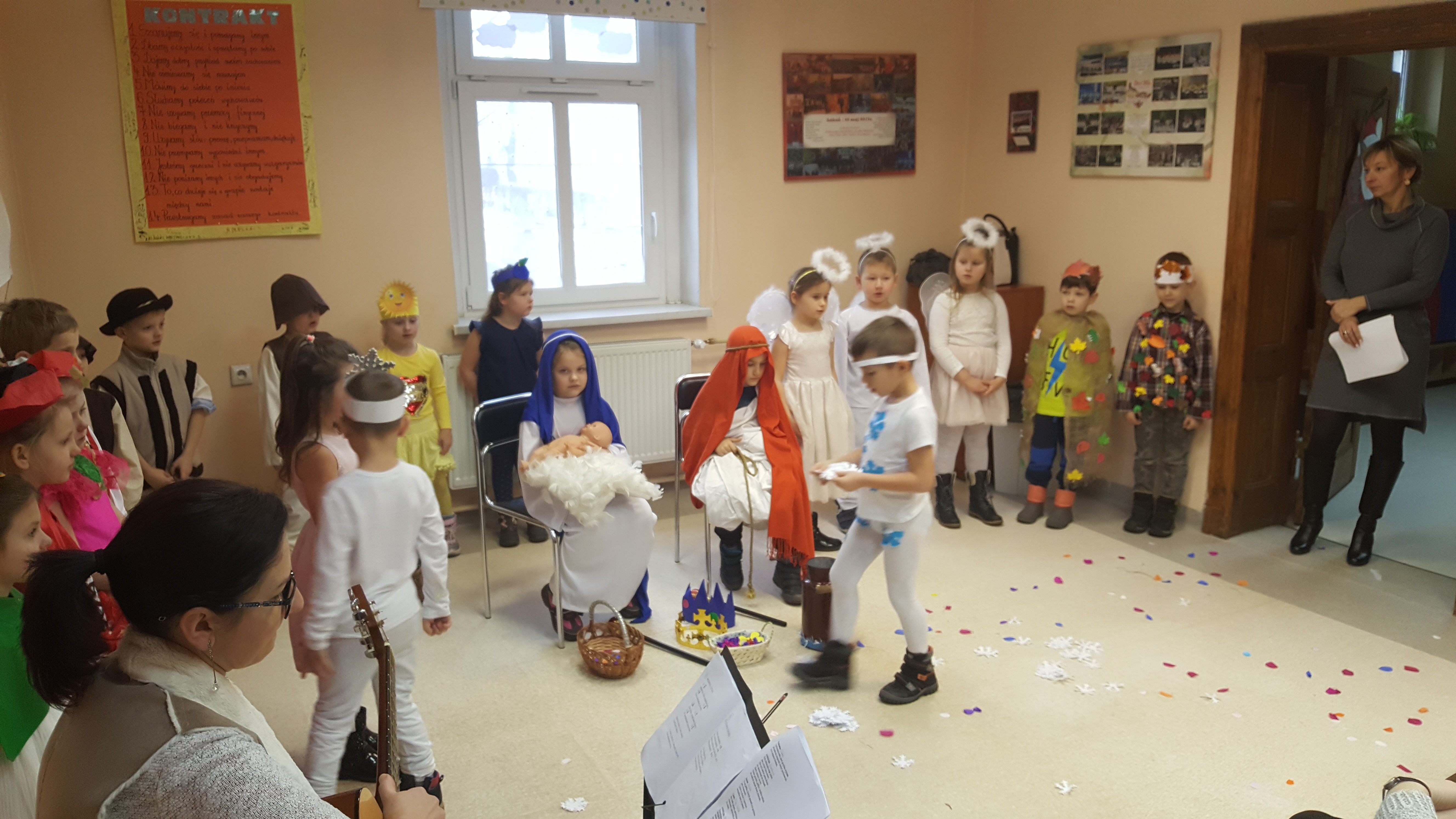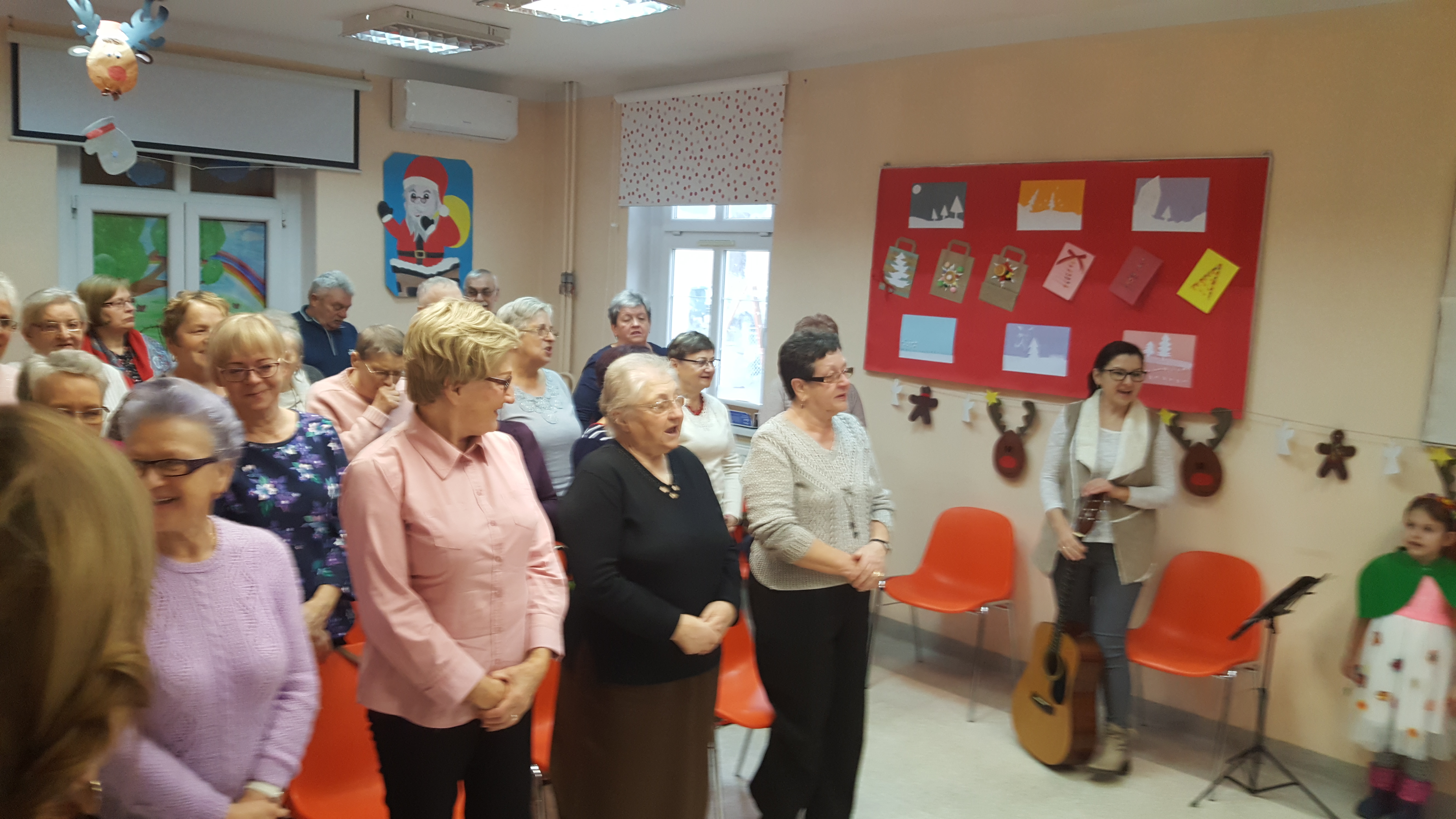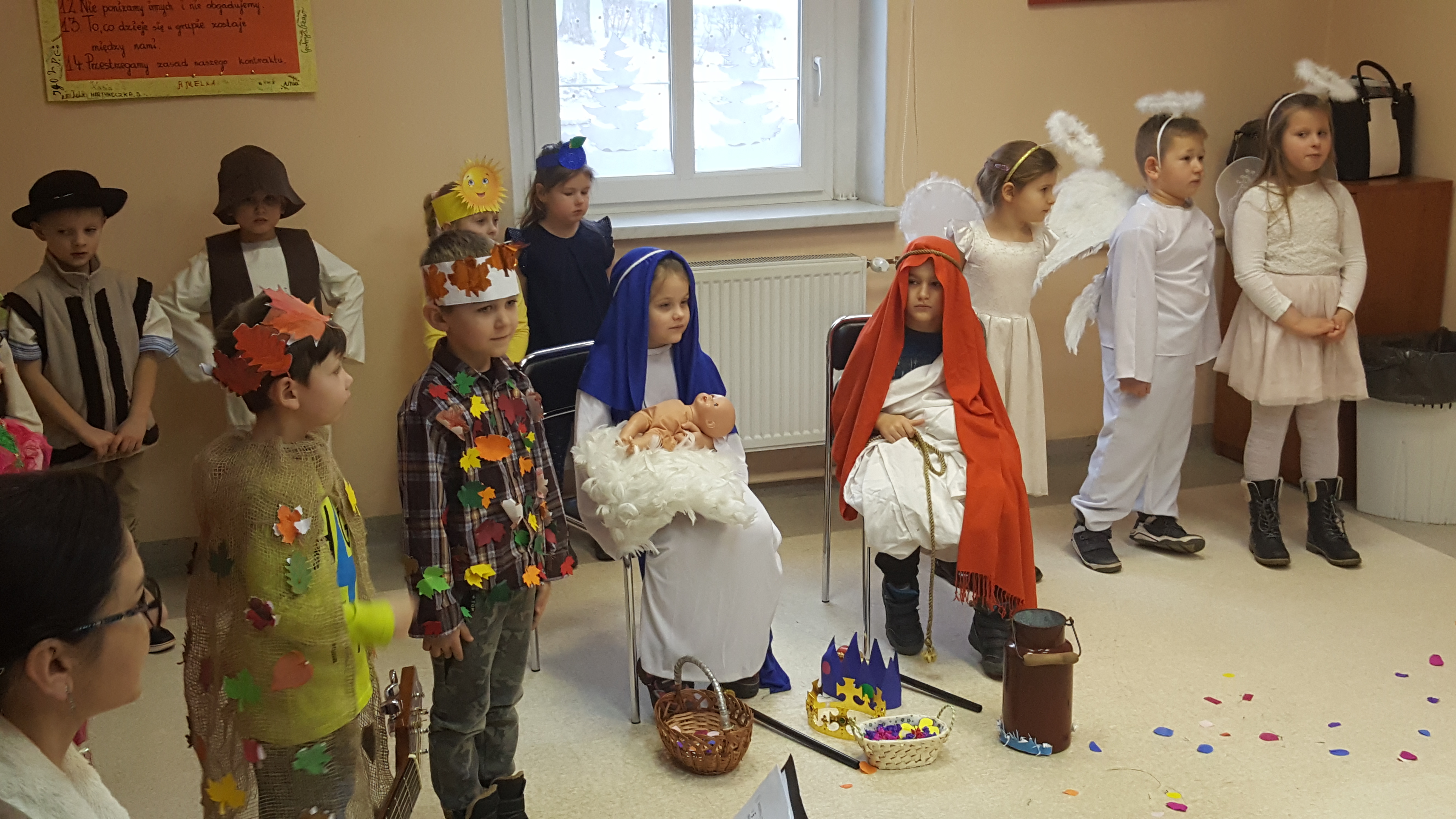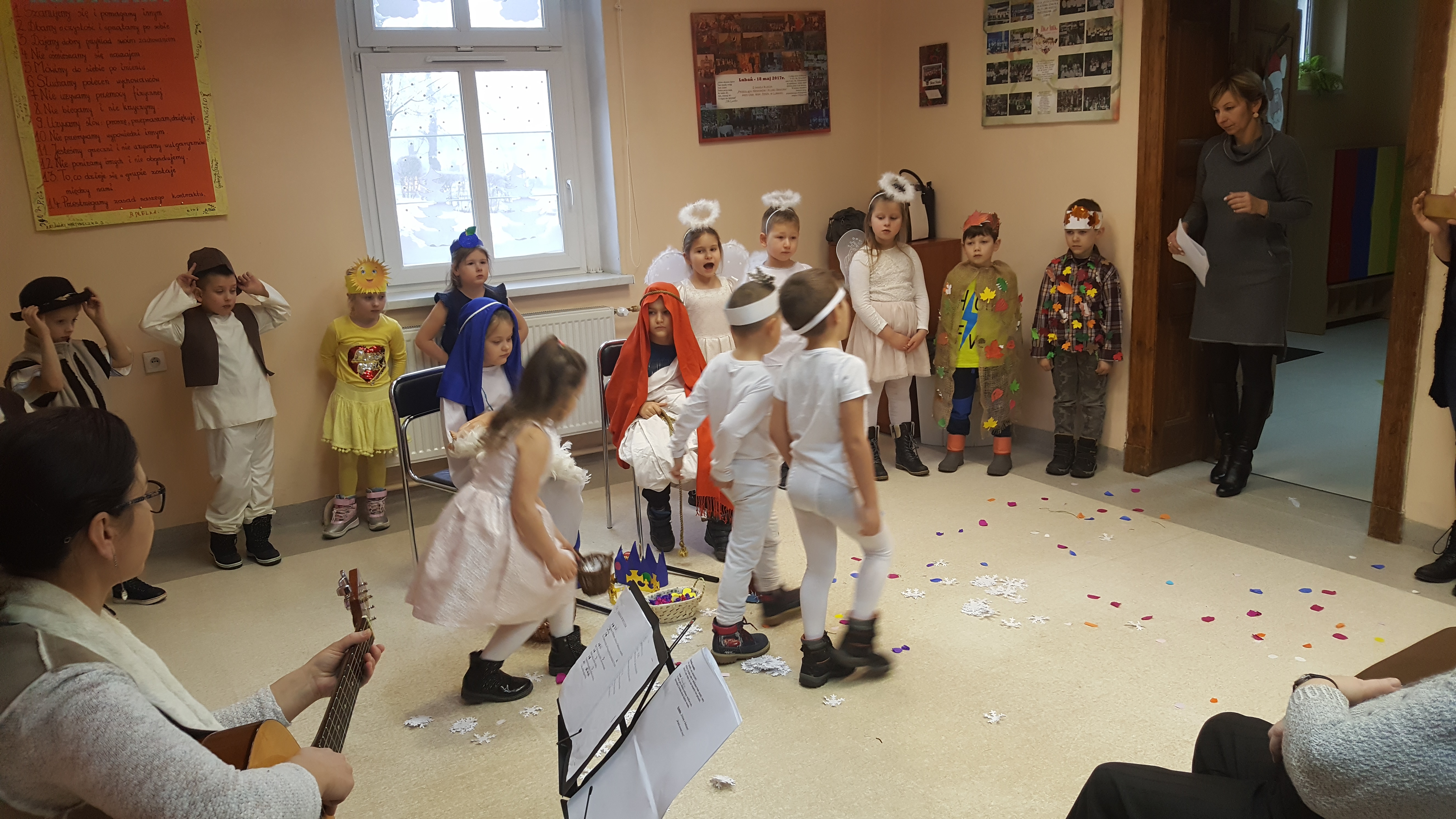 Dzieci wybrały się tam z programem bożonarodzeniowym -jasełka, przygotowanym specjalnie na tę szczególną okazję, śpiewały kolędy i składały życzenia. Seniorzy entuzjastycznie reagowali na występ dzieci przedszkolnych i nagradzali gromkimi brawami. Za piękny występ dzieci zostały obdarowane słodkim upominkiem. Wizyta w Ośrodku Wsparcia Dziennego była dla przedszkolaków kolejną lekcją wychowawczą - dzieci zrozumiały w jaki sposób można sprawić radość u osób starszych, jak szanować i okazywać życzliwość. Było dużo radości, miłych słów.