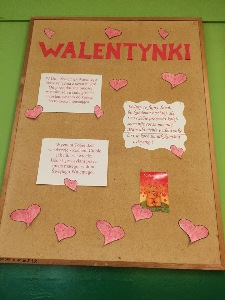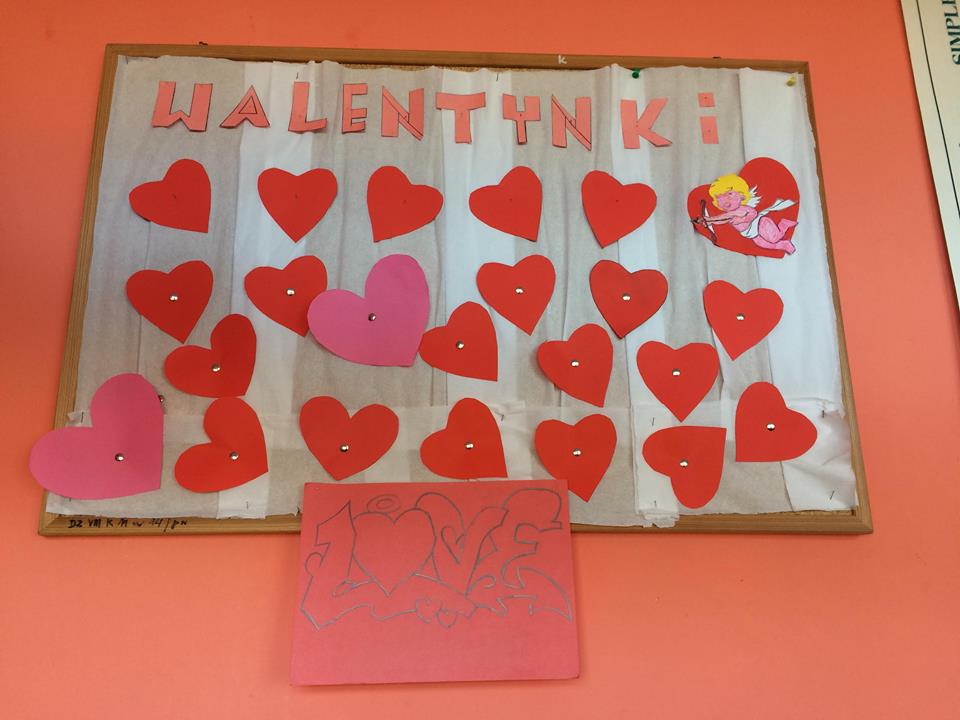 Z okazji Walentynek nasza szkoła zorganizowała konkurs na dekoracje walentynkowe klas. Wybraliśmy trzy najpiękniej udekorowane sale, a zwycięzcami okazali się być: klasa 3B gimnazjum, klasa 7 oraz klasa 2. Wyróżniliśmy także naszych najmłodszych, klasę I, za zaangażowanie w dekorację korytarza. Nawet dzieciaki ze świetlicy poczuły walentynkową atmosferę.