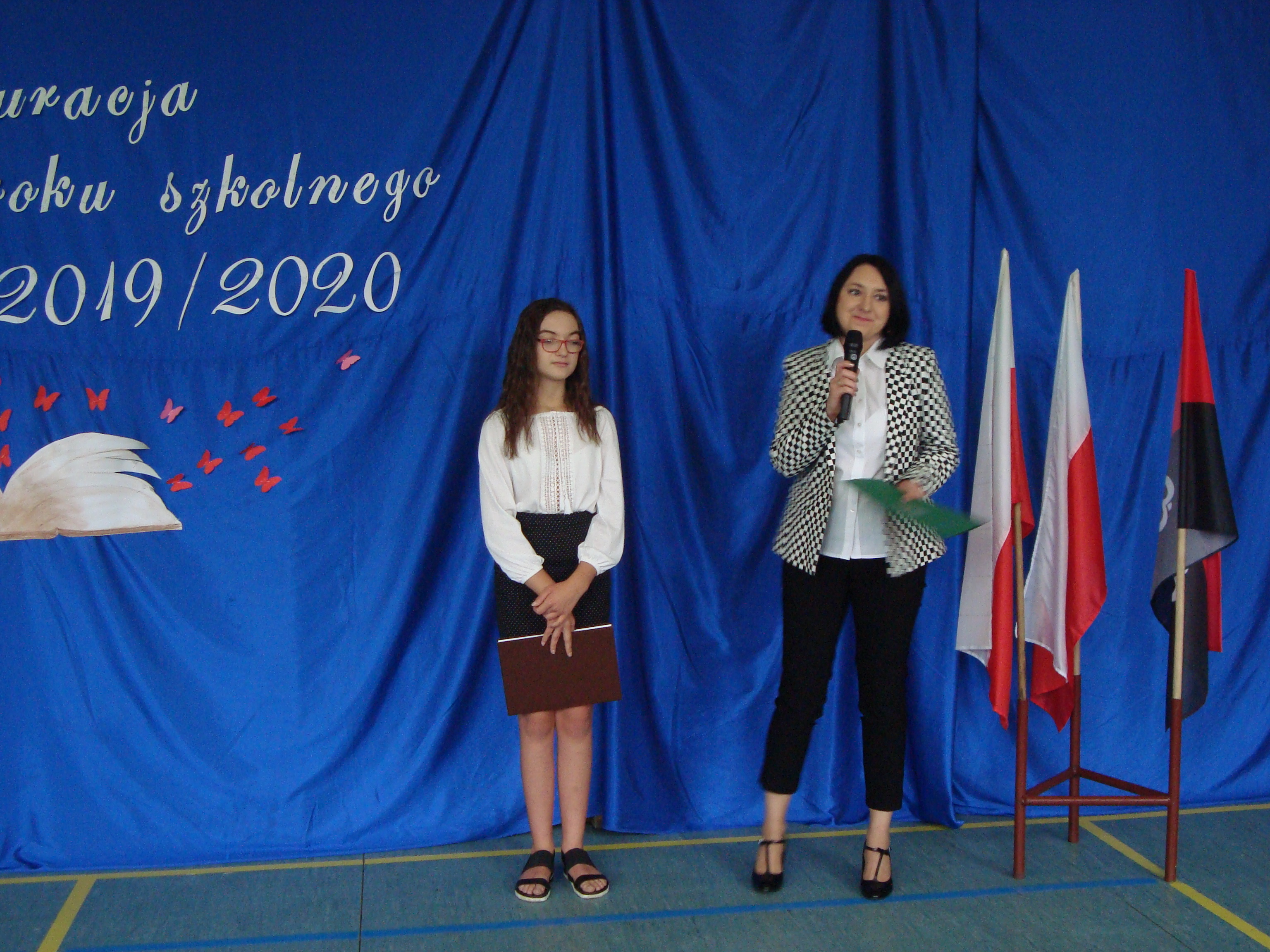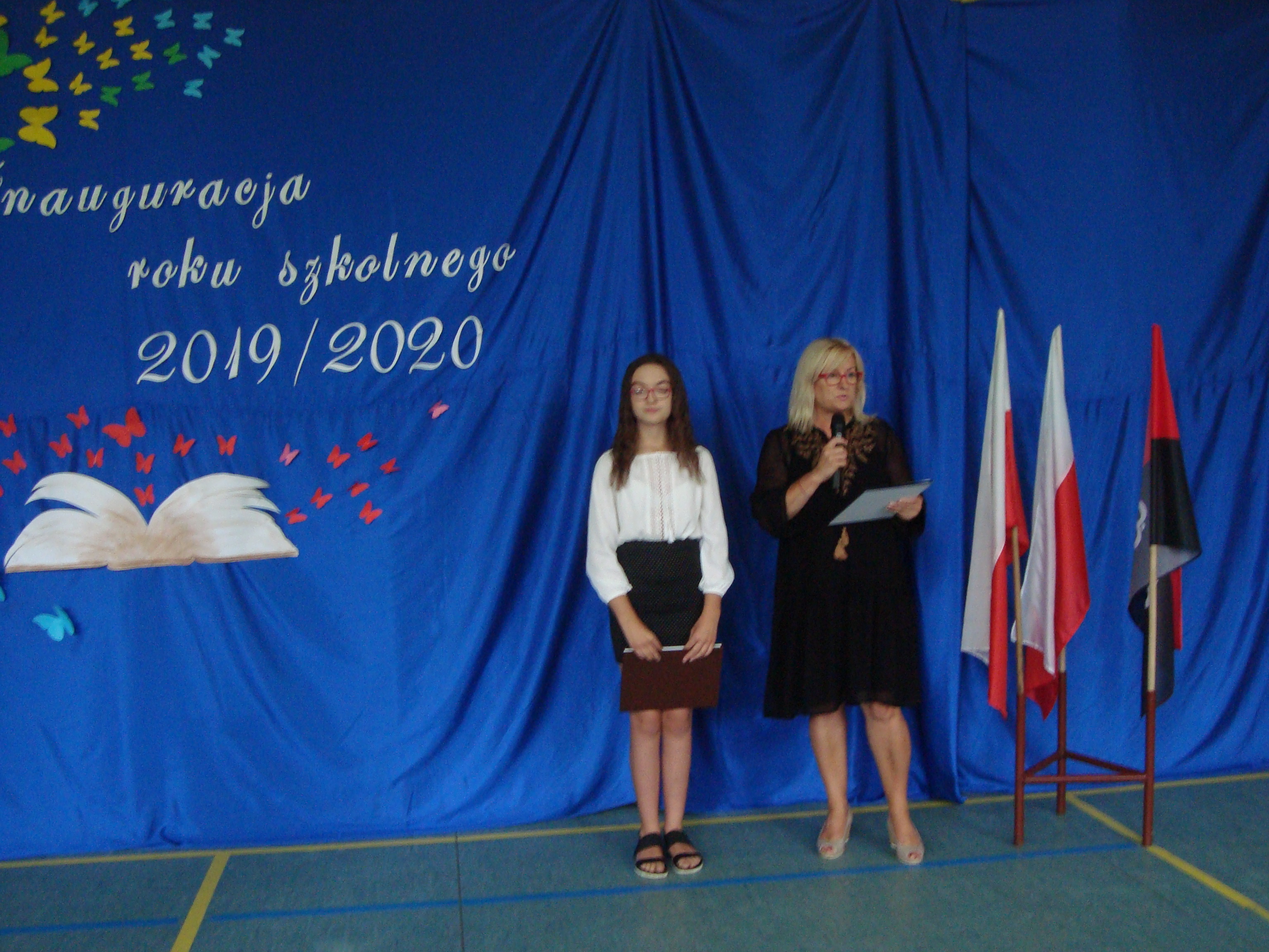 Naszą uroczystość zaszczyciła obecnością kierownik Referatu pani Anna Zawłocka, która skierowała słowa Pana Burmistrza Arkadiusza Słowińskiego do całej społeczności szkolnej. Dyrektor Szkoły oraz przewodnicząca Rady Rodziców życzyły wszystkim uczniom chęci, motywacji do pracy oraz osiągnięcia jak najlepszych sukcesów szkolnych. Głównym celem działań wychowawczych i profilaktycznych w roku szkolnym 2019/2020 będzie stworzenie wspólnoty bez barier w myśl słów szkolnego patrona Jana Pawła II: