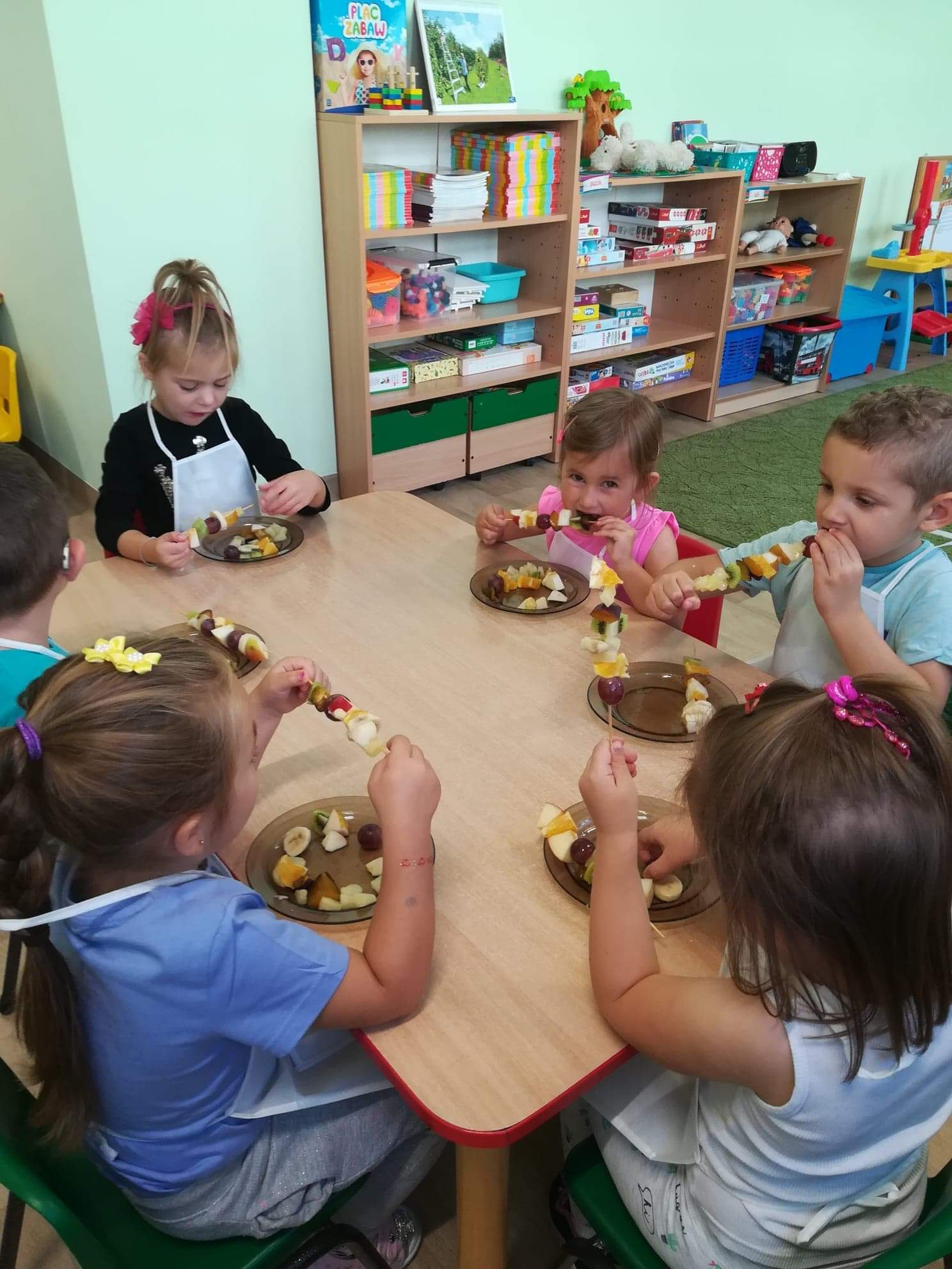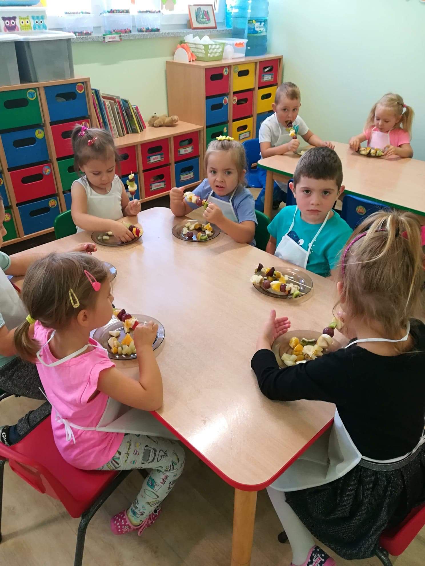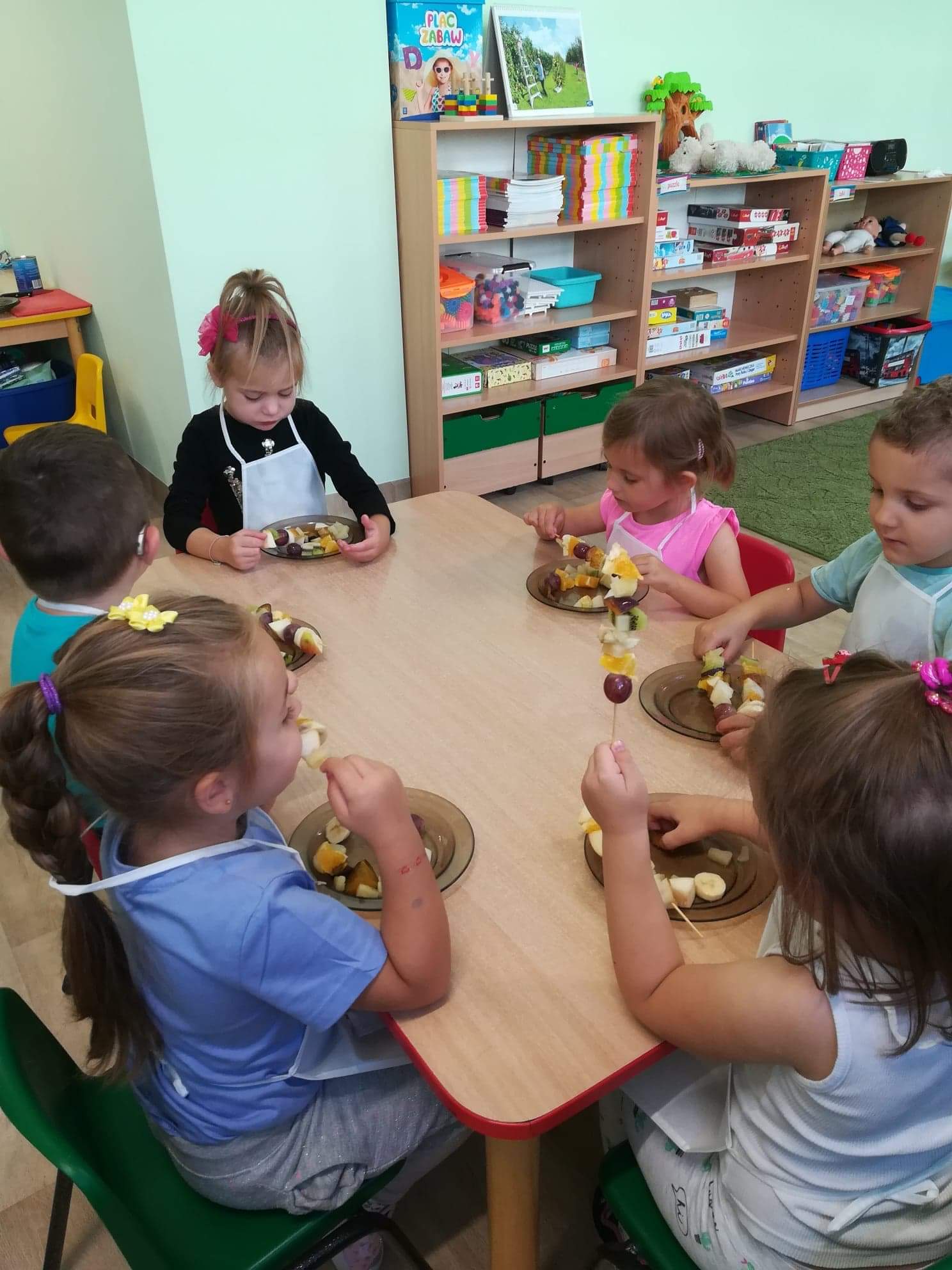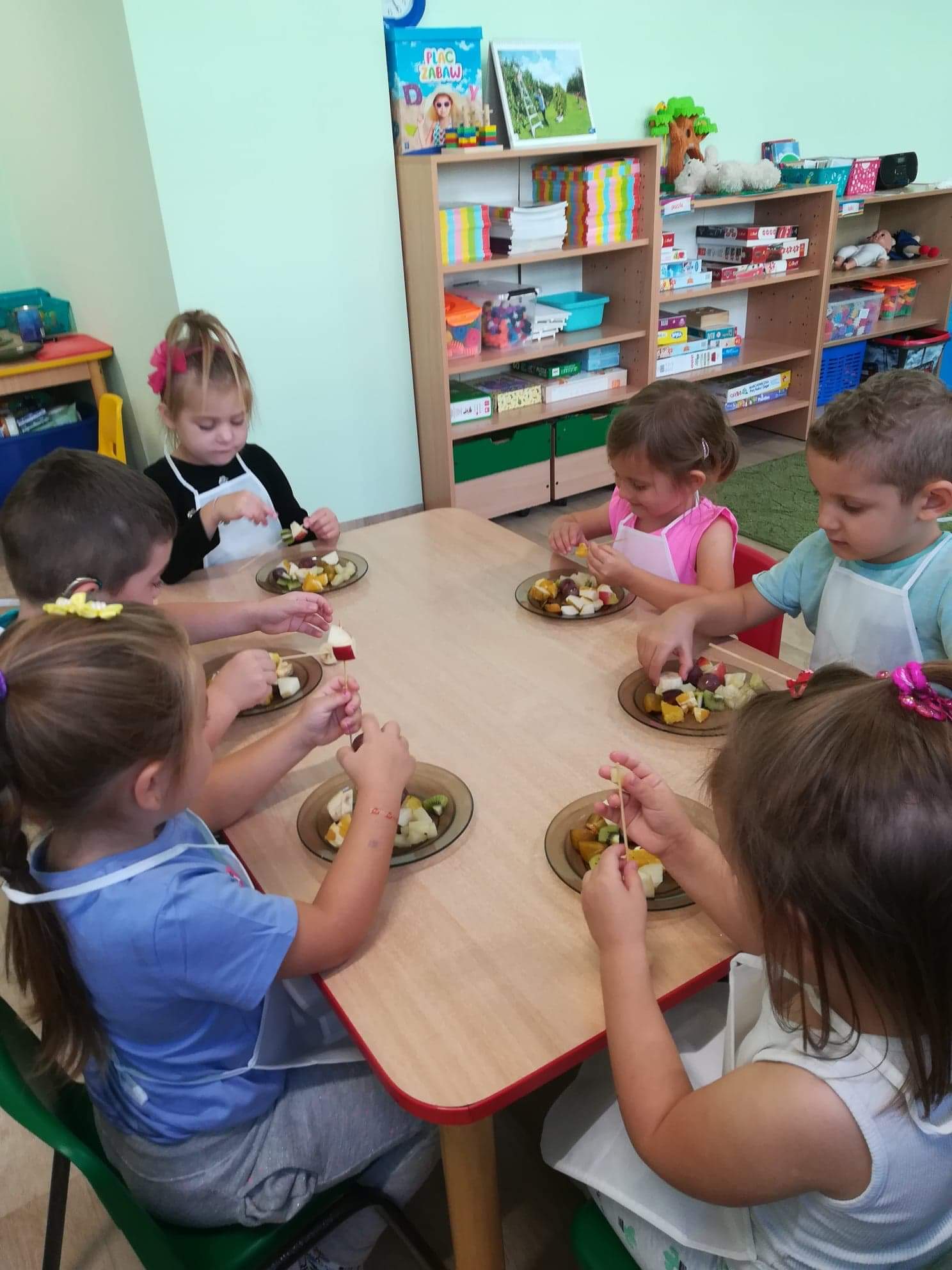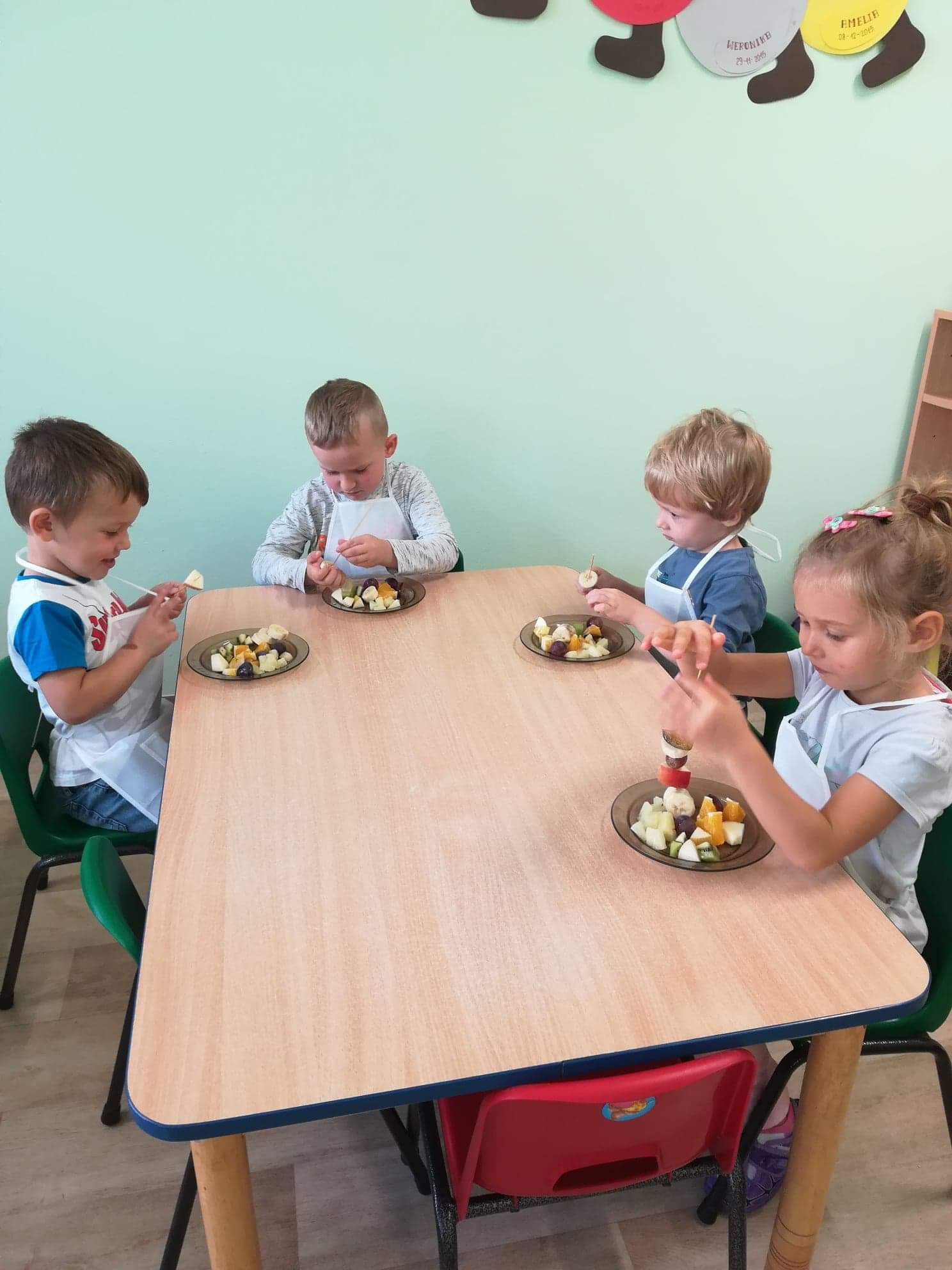 Dzieci z grupy III w PM nr 5 im J. Tuwima w Lubaniu uczestniczyły w zajęciach kulinarnych. Przedszkolaki samodzielnie przygotowały owocowe szaszłyki.
