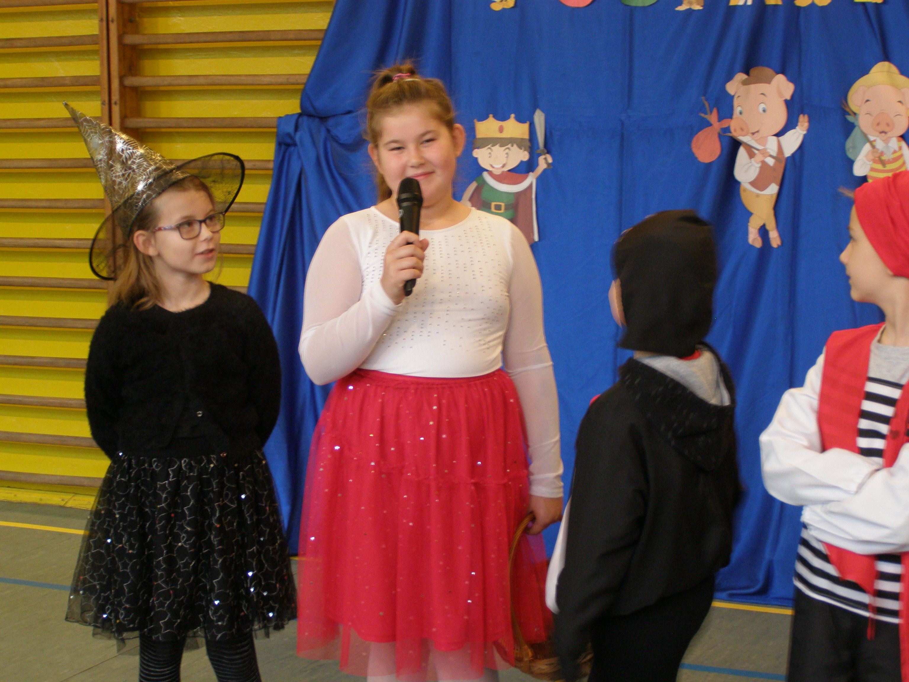Z okazji Międzynarodowego Dnia Postaci z Bajek uczniowie klasy II i III wzięli udział w bajkowym spotkaniu, podczas którego opowiadały o swoich ulubionych bajkowych postaciach.