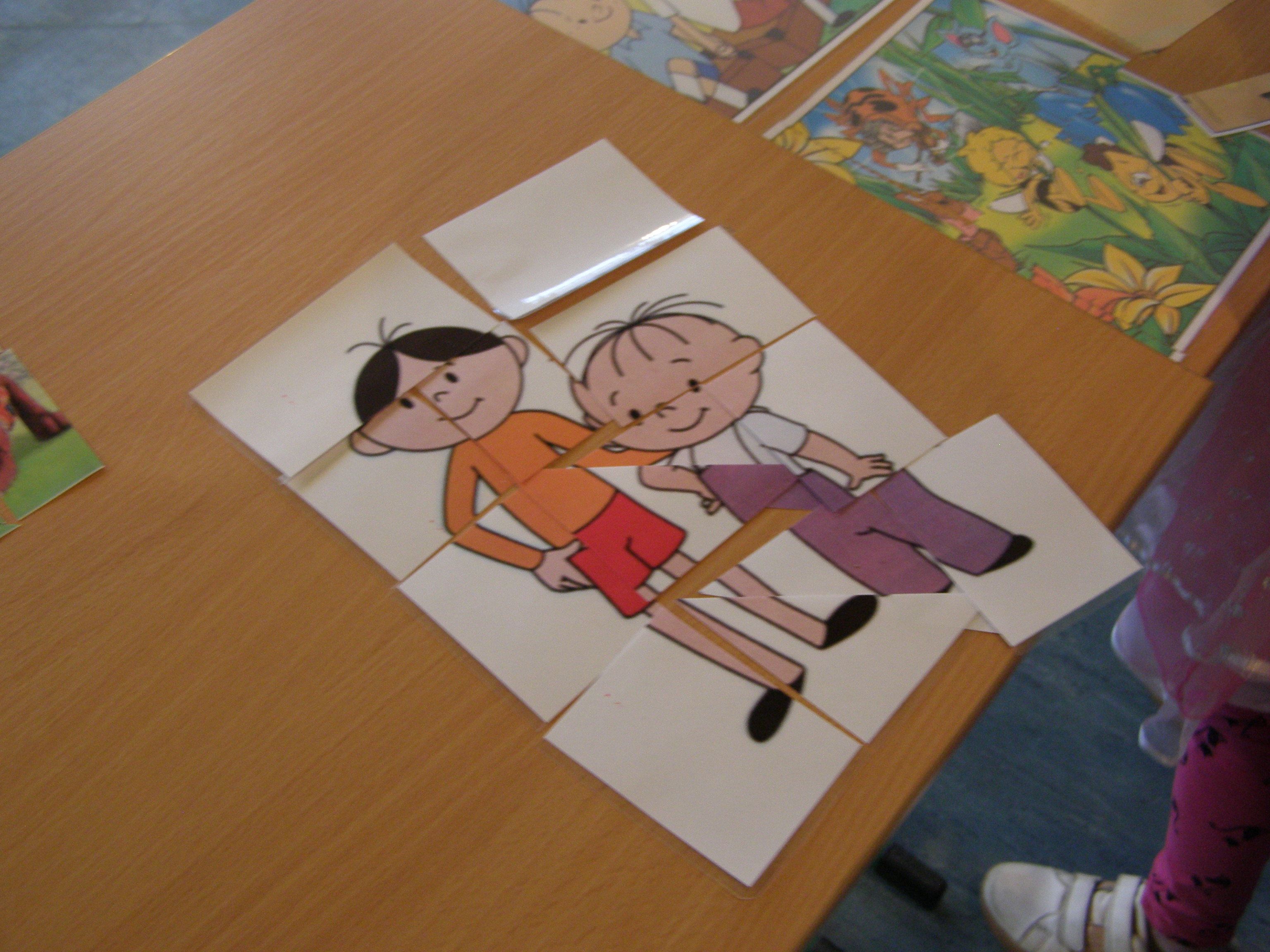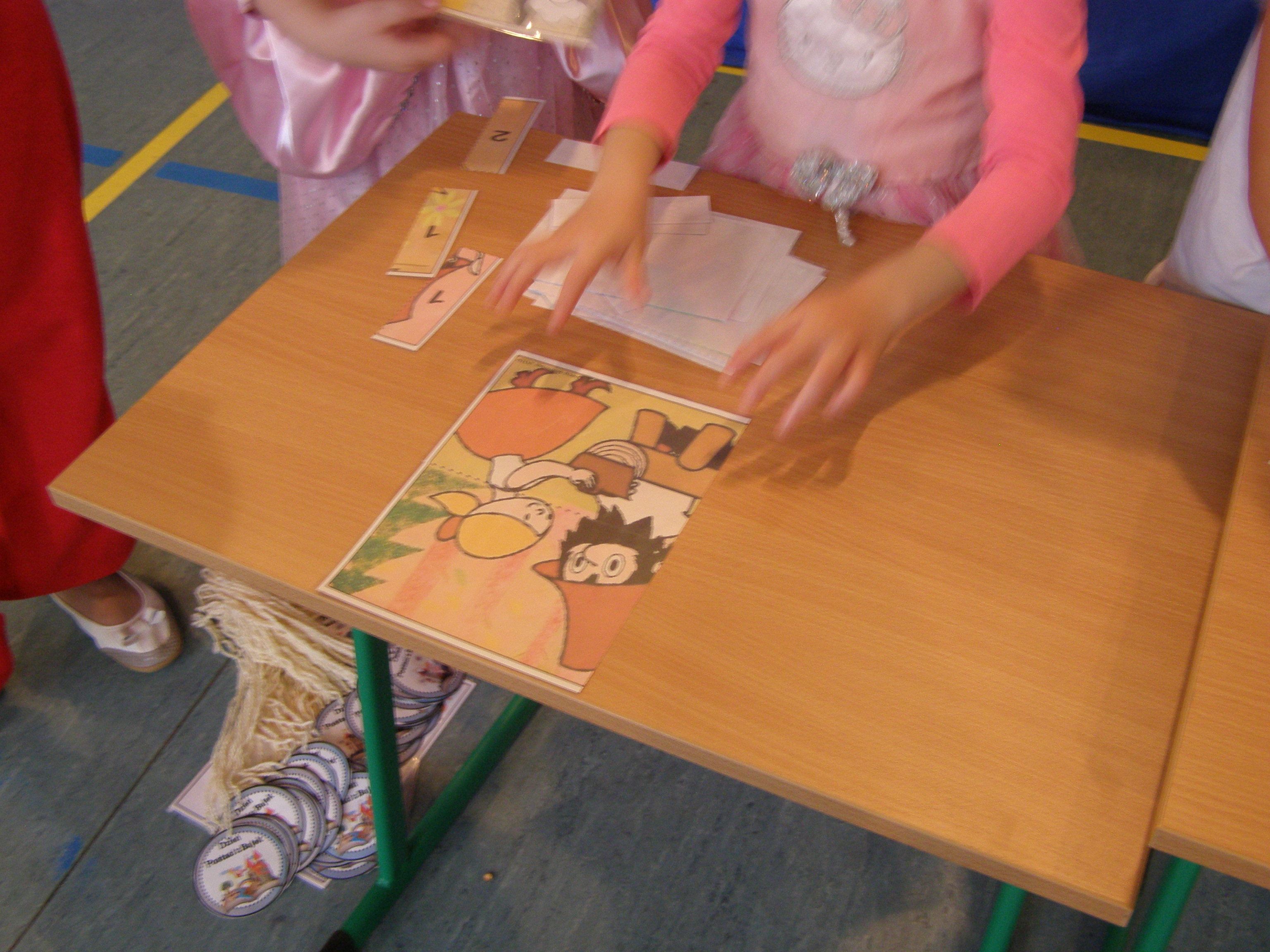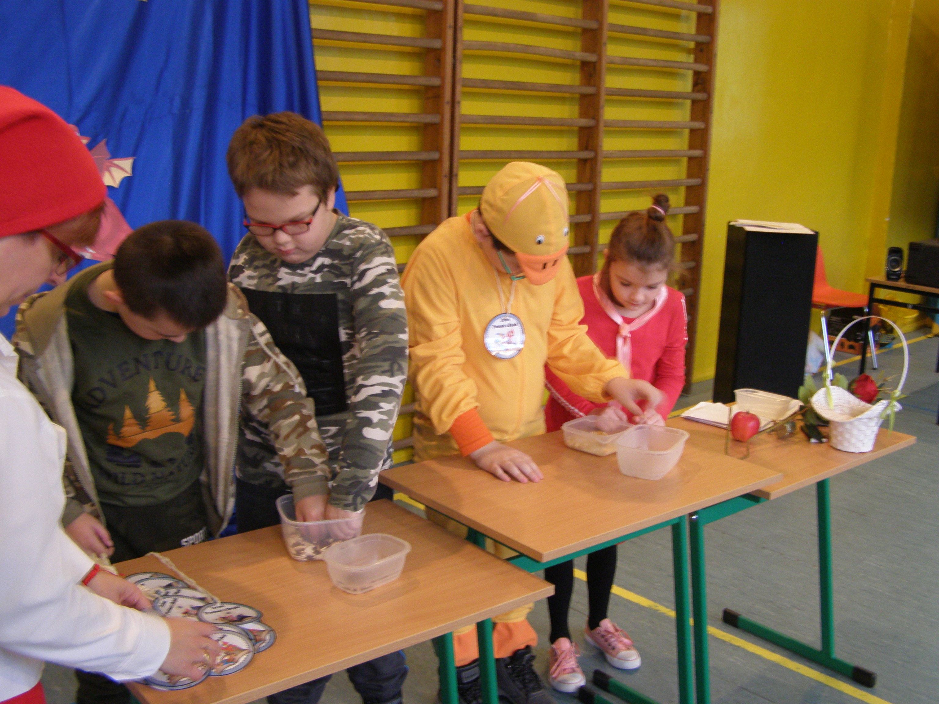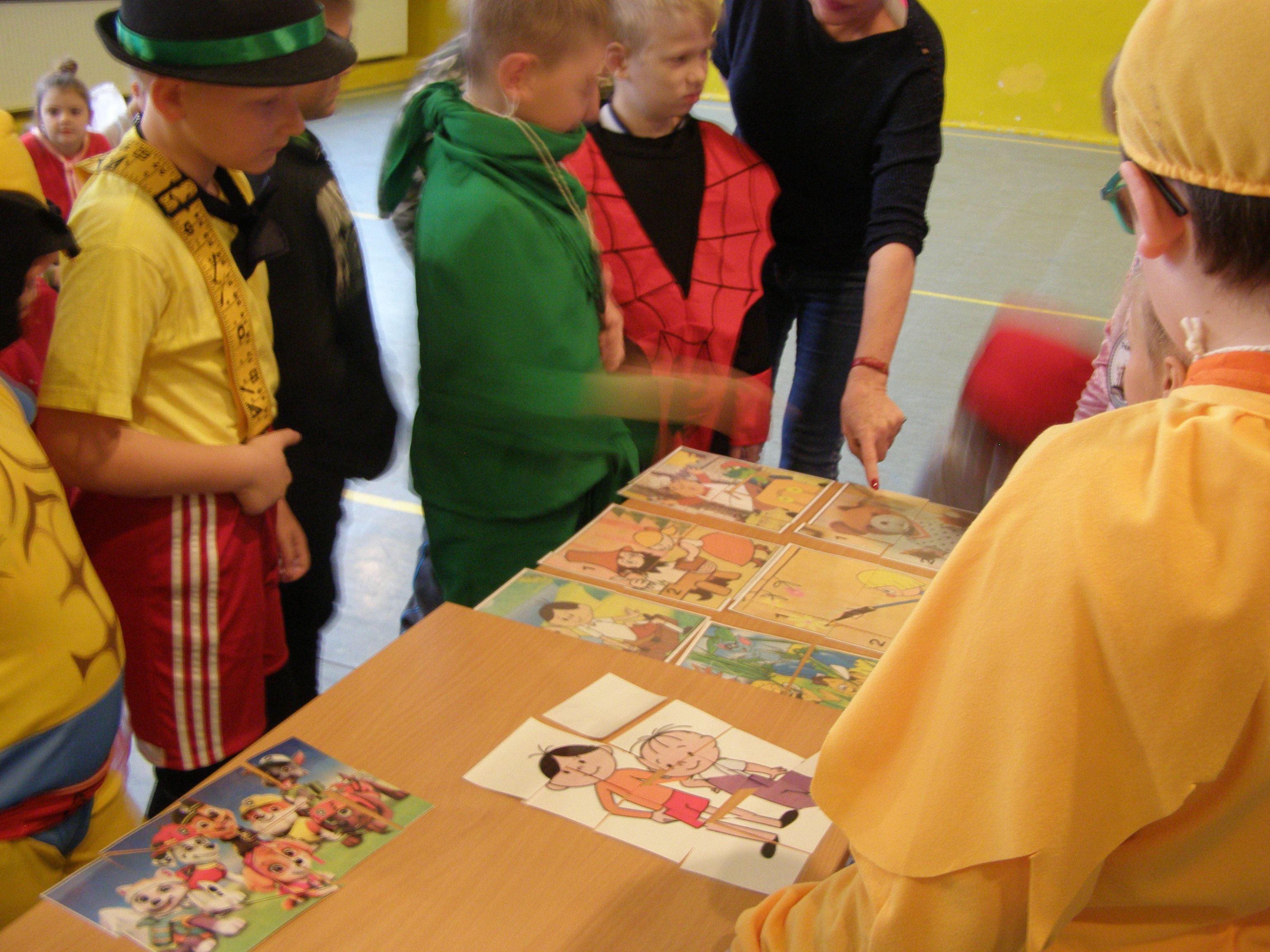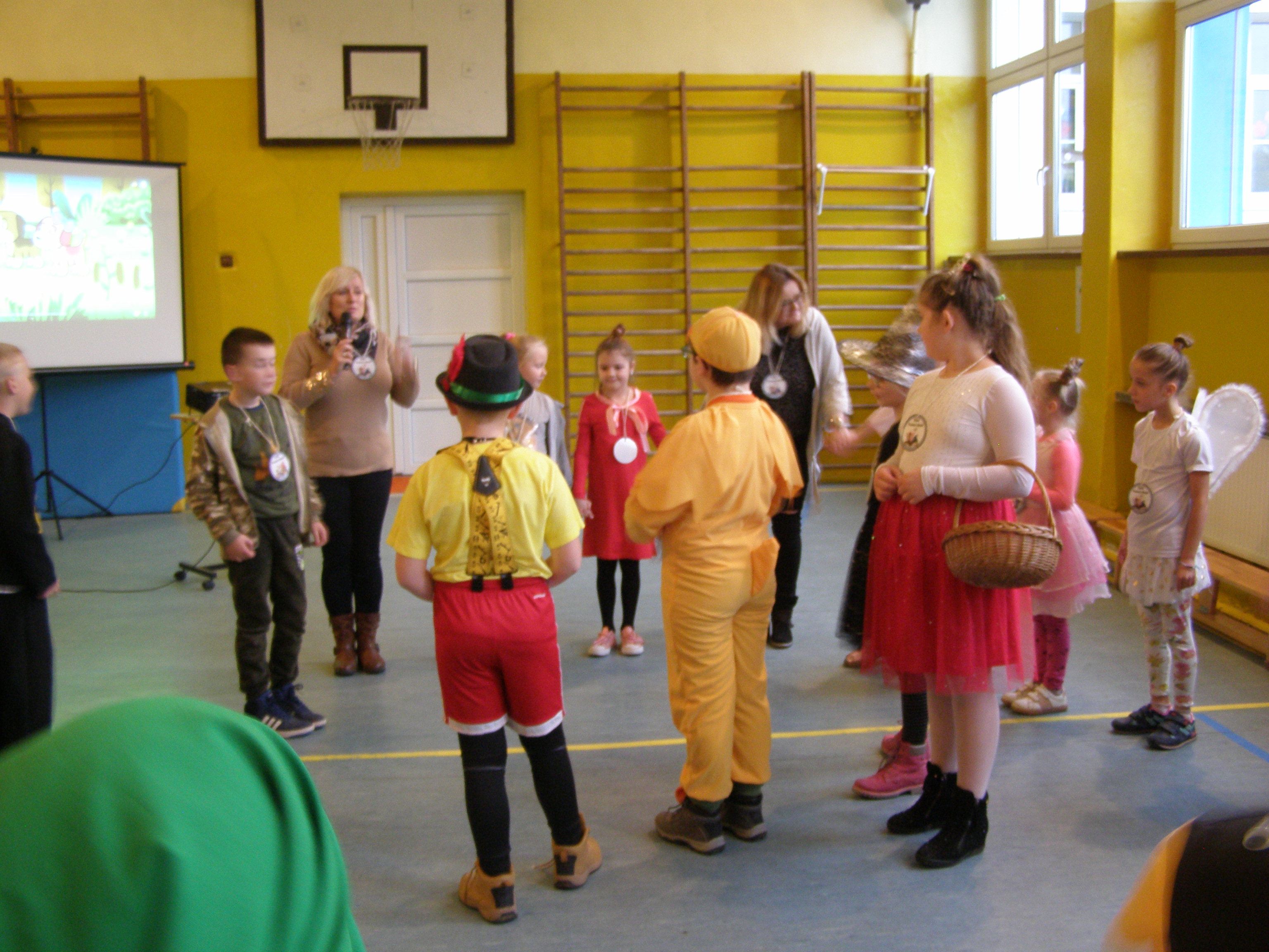 Później były zabawy wymagające wykazania się znajomością treści bajek, tych znanych i mniej znanych, m.in. dzieci rozwiązywały zagadki, rozpoznawały bajkę po rekwizycie oraz po przeczytaniu fragmentu książki. Były muzyczne zgadywanki bajkowe, zabawy ruchowe oraz prezentacja dziecięcych bajkowych przebrań. Dzieci bardzo dobrze znają bajki i doskonale radziły sobie z zadaniami.