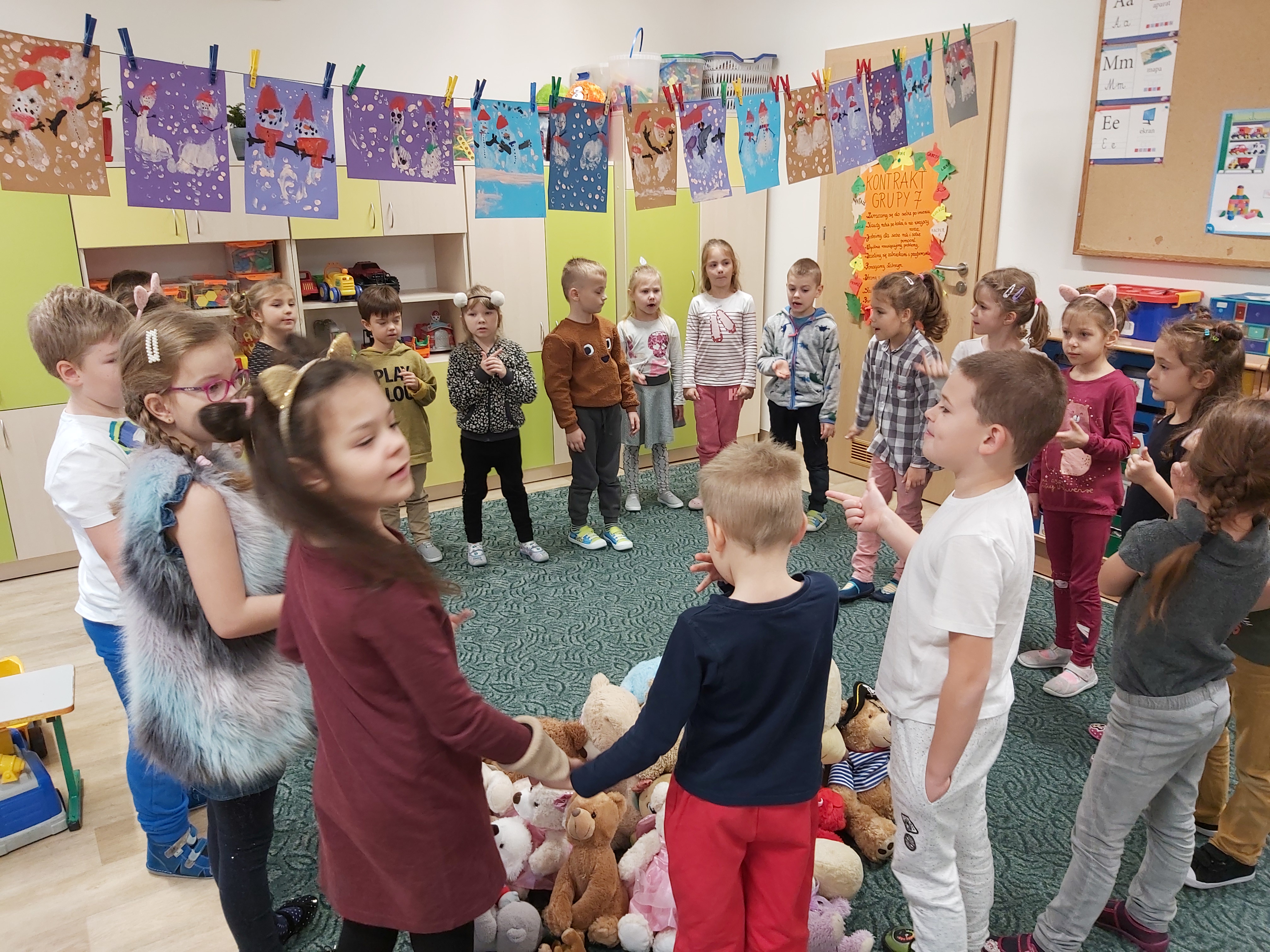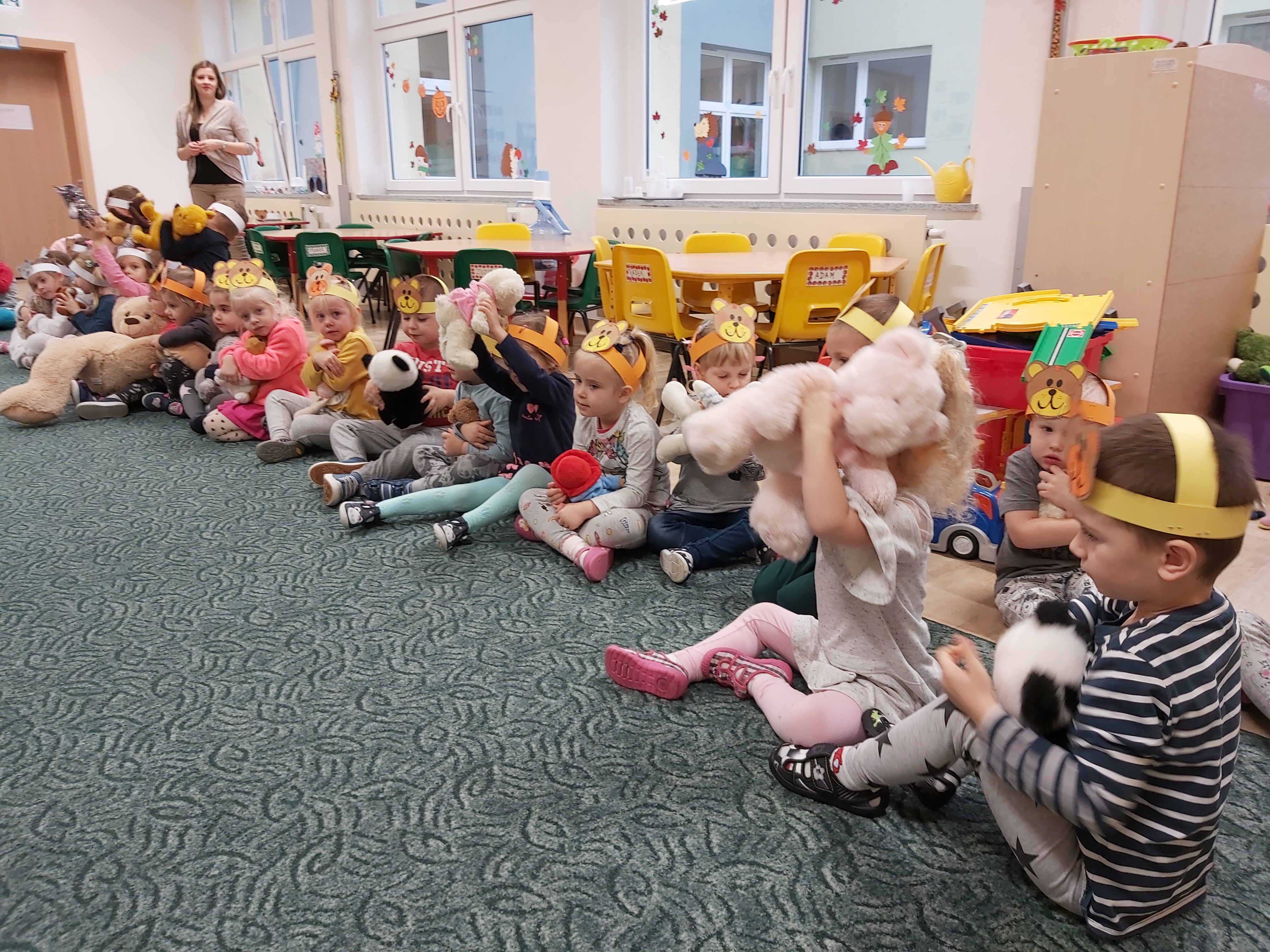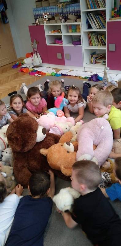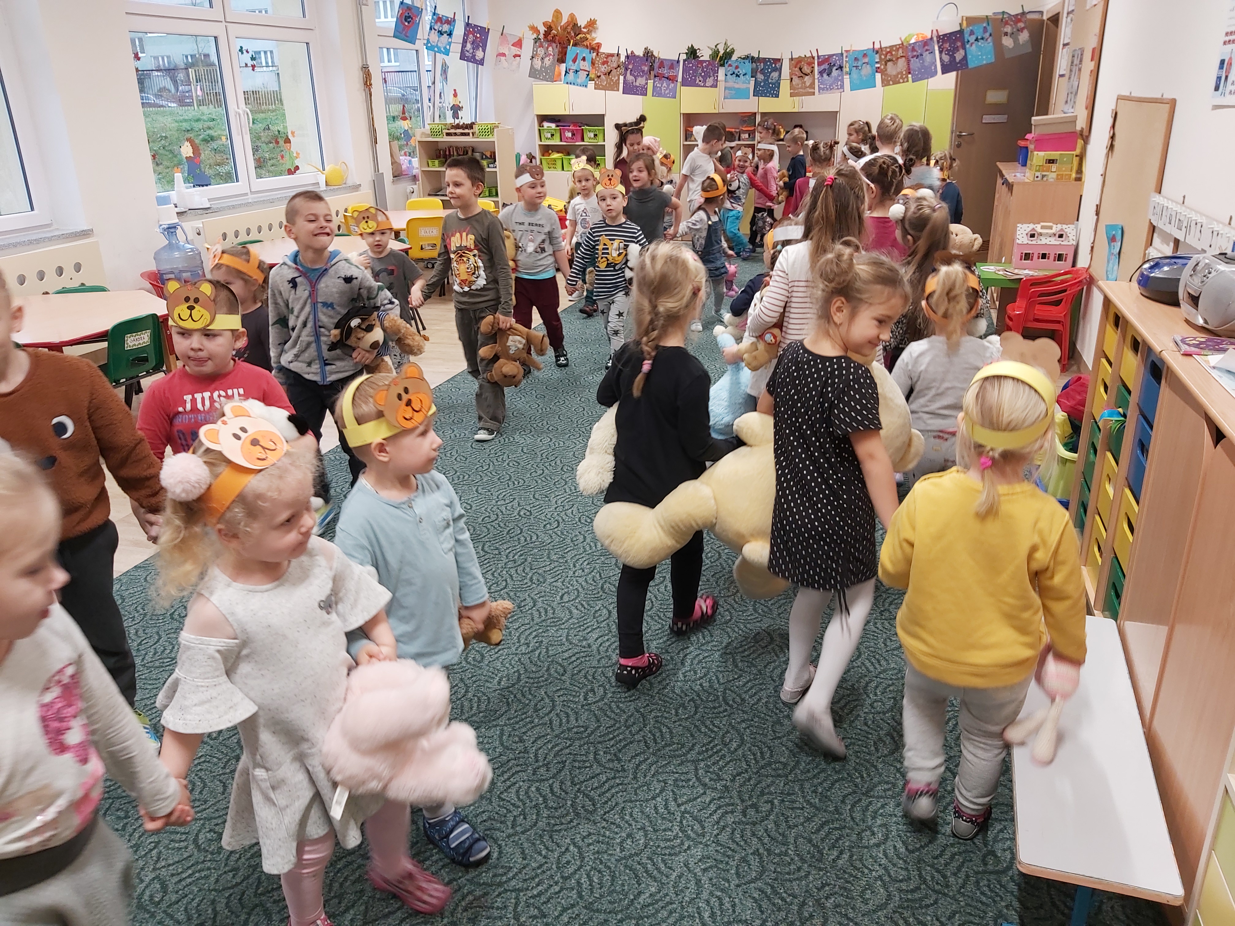 Dzień Pluszowego Misia obchodzimy 25 listopada, bo tego dnia przypada rocznica powstania misiowej maskotki. Do przedszkola każdy przyszedł ze swoim małym czy dużym przyjacielem Misiem. Dzieci zaprezentowały swoje maskotki, jako symbol dobra, czułości, łagodności i opiekuńczości, niezastąpiona przytulanka przy zasypianiu. Następnie zaproszono wszystkie dzieci do zabawy z misiami. Było wiele atrakcji jak ćwiczenia z misiami, zabawy, piosenki i tańce. Dzieci wykonały też prace plastyczne, techniczne i konstrukcyjne. Wielkie misiowe święto zostanie długo w pamięci.