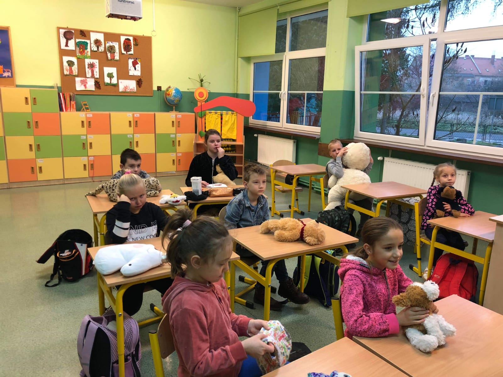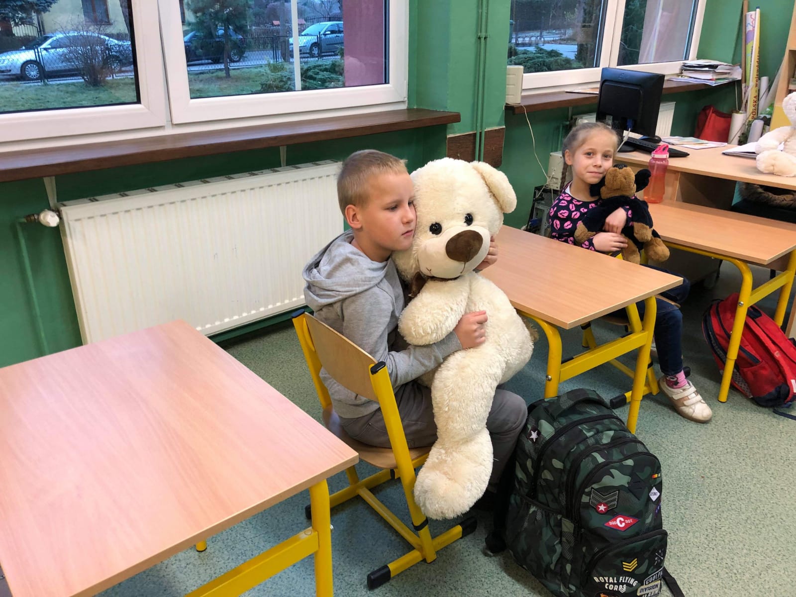 Tego szczególnego dnia uczniowie klasy II i III przybyli do szkoły ze swoimi ulubionymi pluszowymi misiami. Przytulanki były honorowymi gośćmi. Siedziały one na specjalnych miejscach, czekając cierpliwie na przebieg wydarzeń.