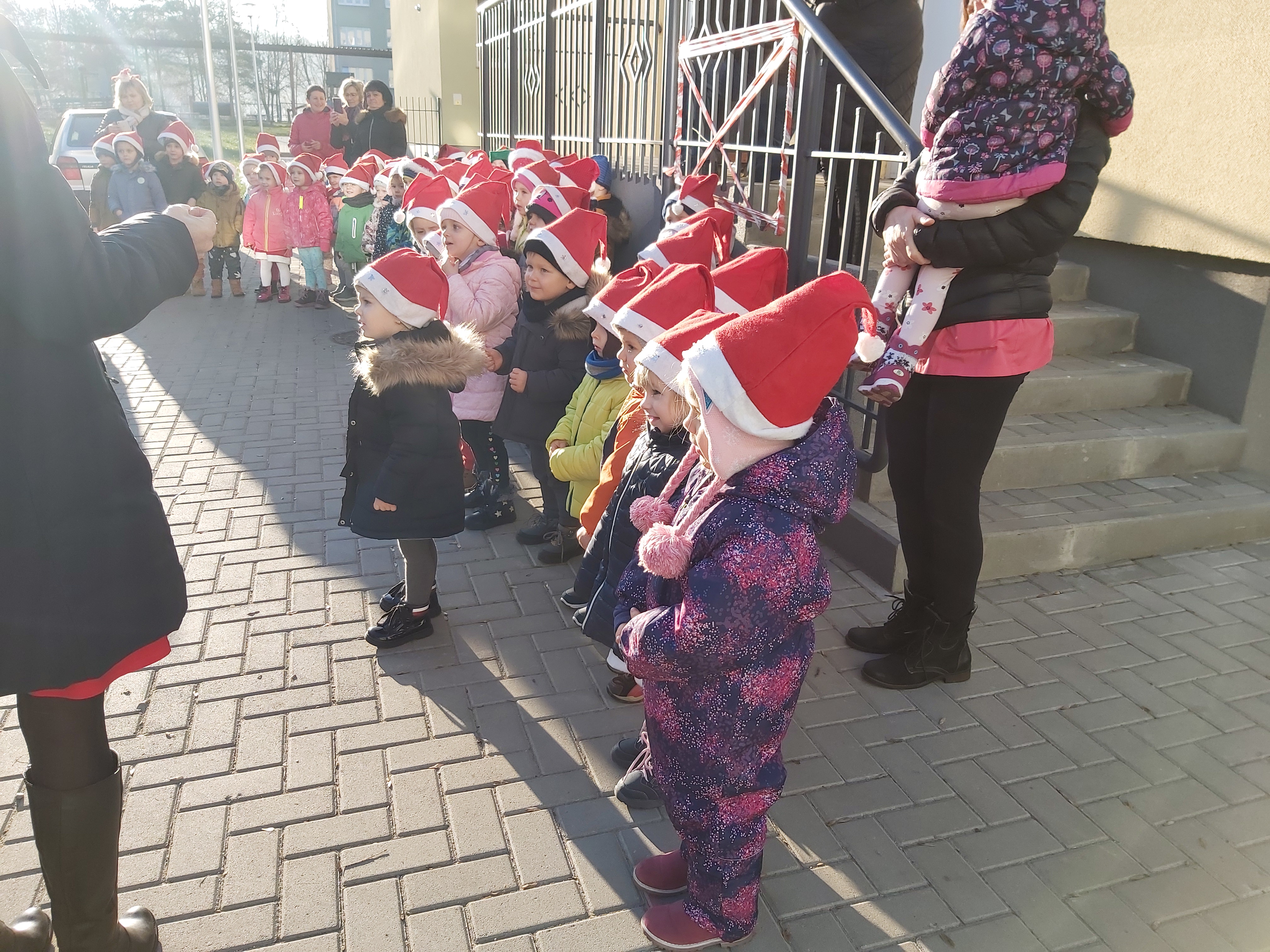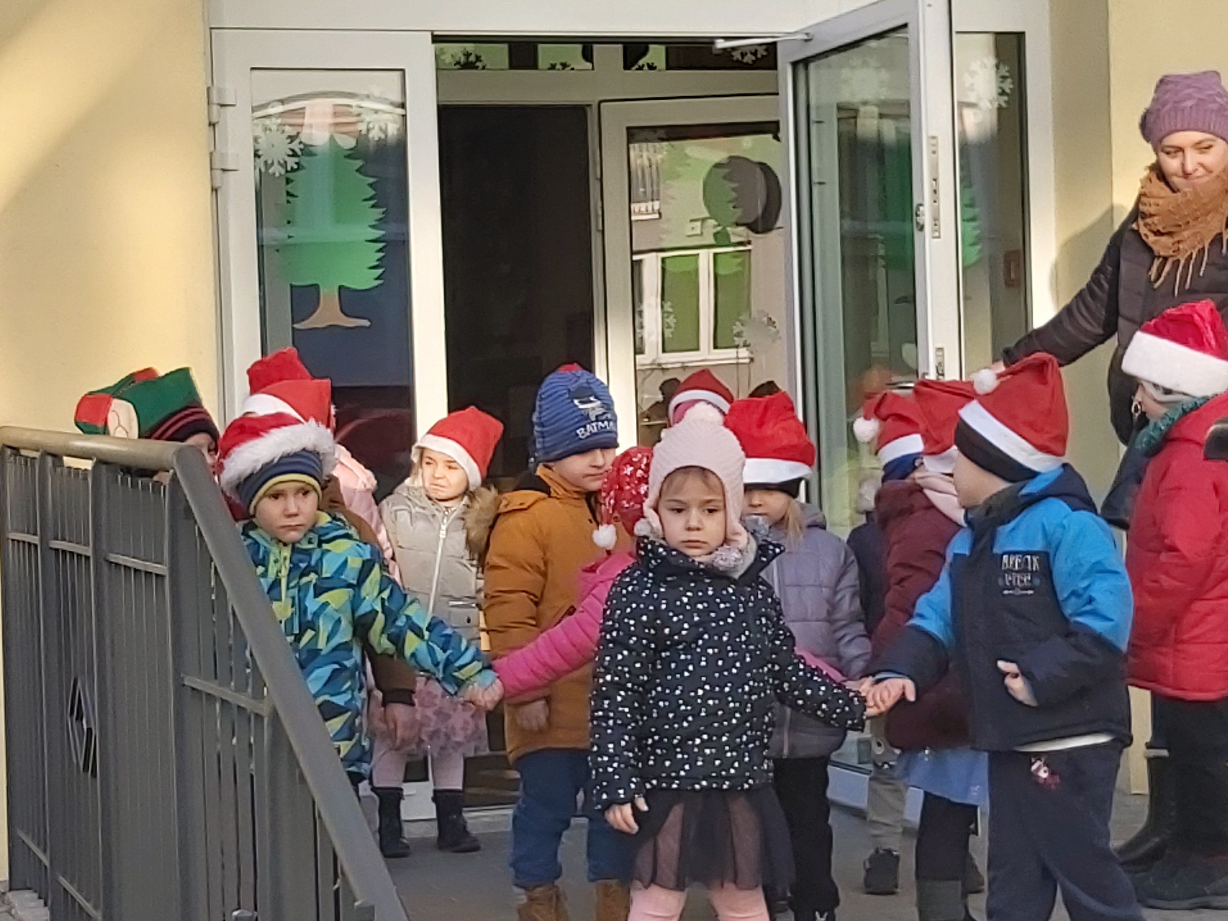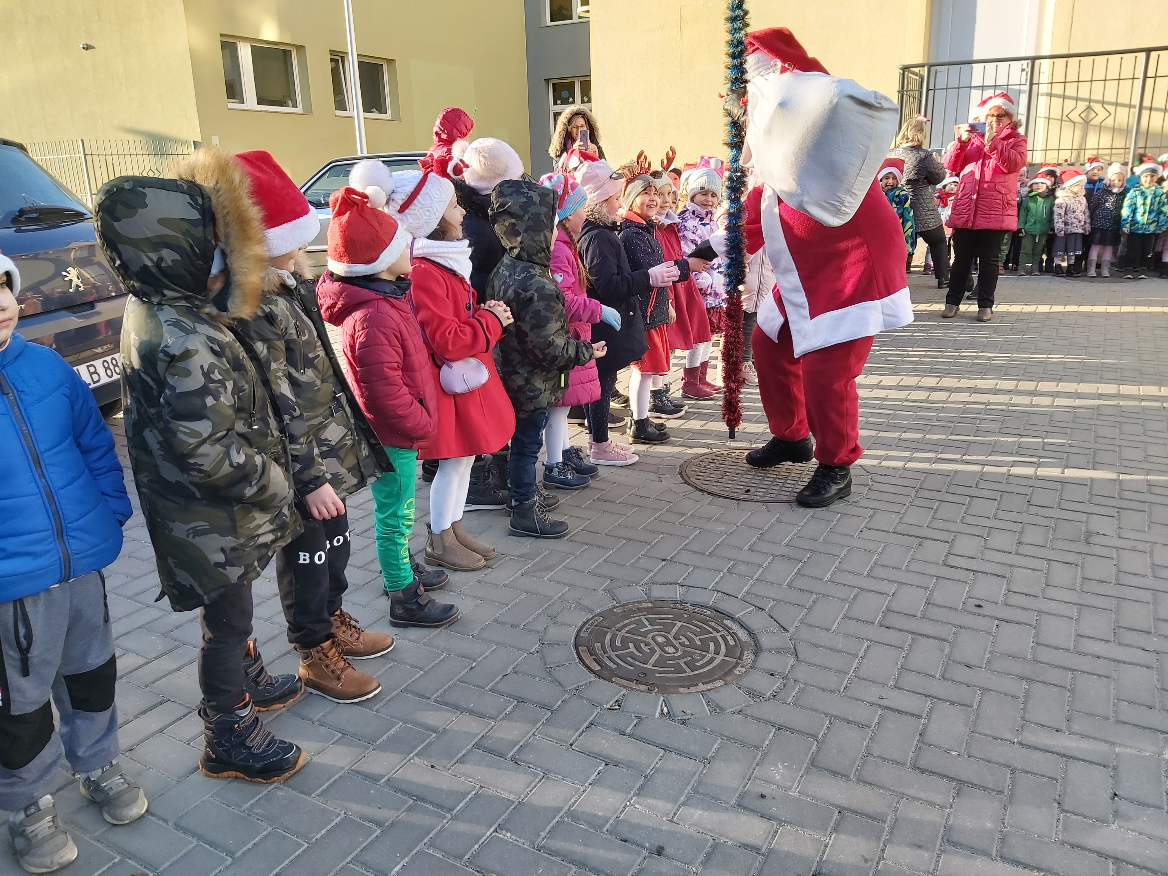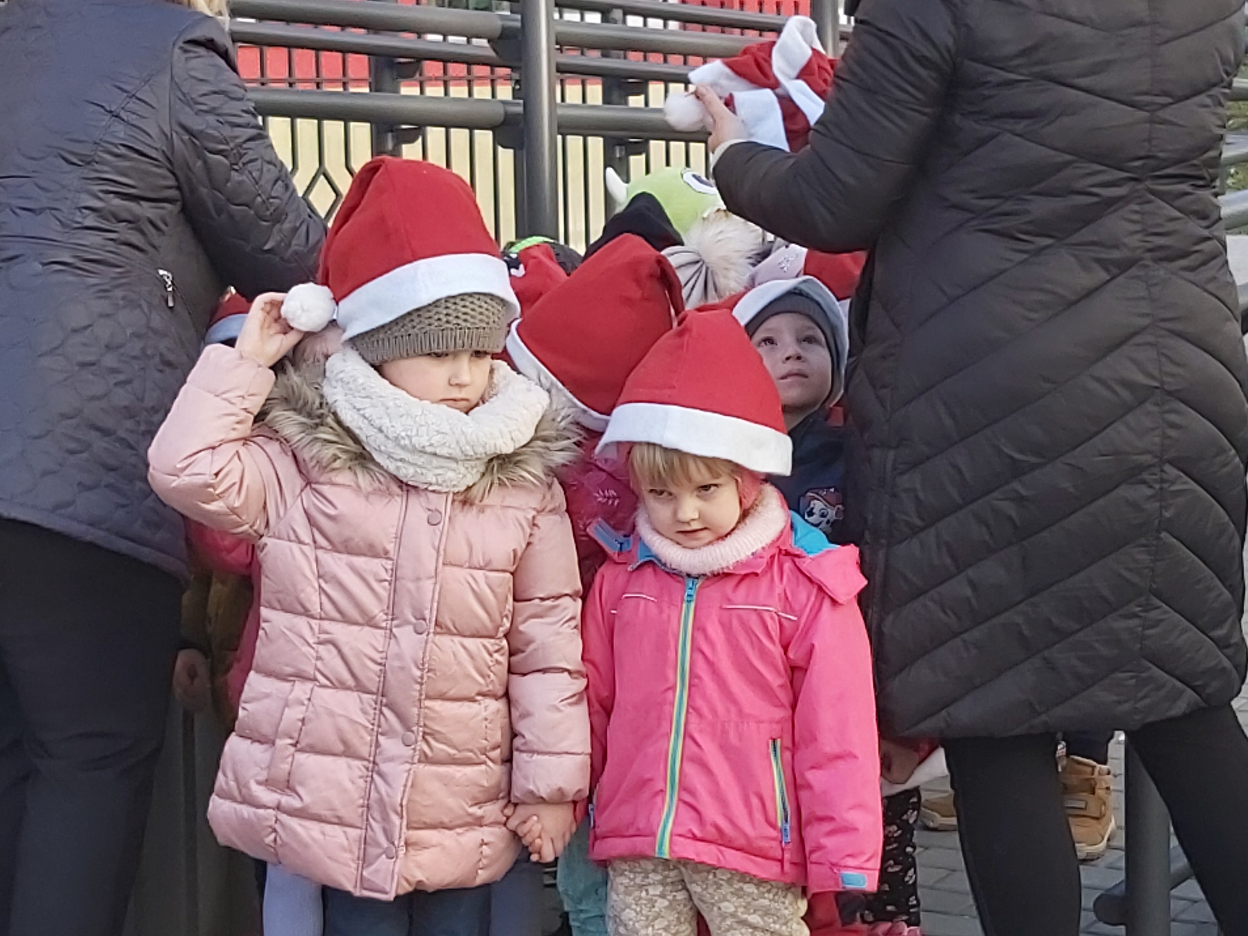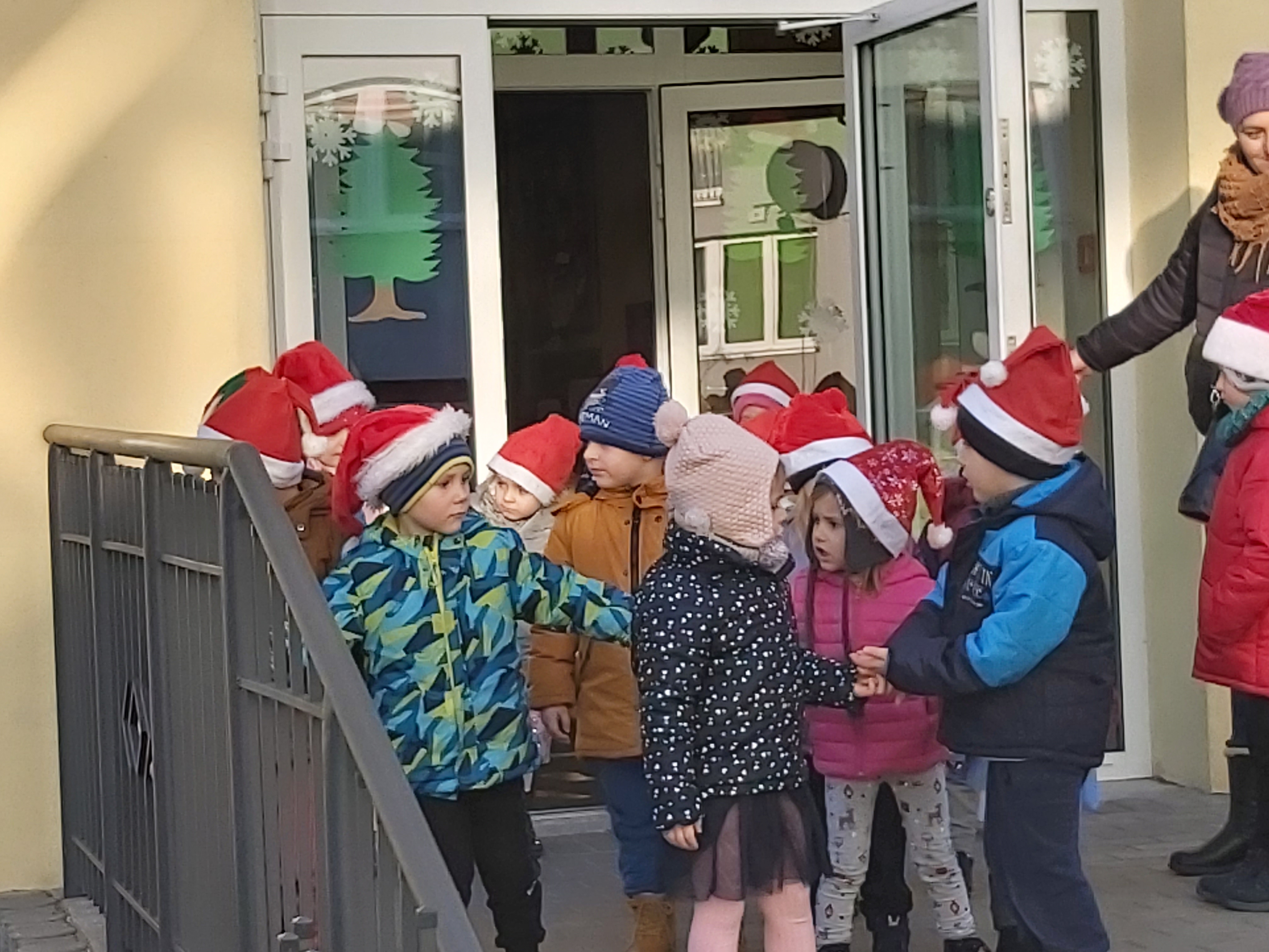 To nie mógł być nikt inny, tylko Mikołaj. Był wesoły, rozmowny, chętny do wspólnej zabawy i tańca. Chociaż nie było śniegu, to długo oczekiwany gość przybył na czas. We wszystkich grupach spotkanie przebiegało w radosnej i przyjemnej atmosferze. Przedszkolaki śpiewały Mikołajowi piosenki świąteczne, recytowały wiersze i zadawały mnóstwo pytań. Mikołaj obdarował wszystkie dzieci prezentami. Wszystkie buzie były uśmiechnięte ze spotkania z gościem.