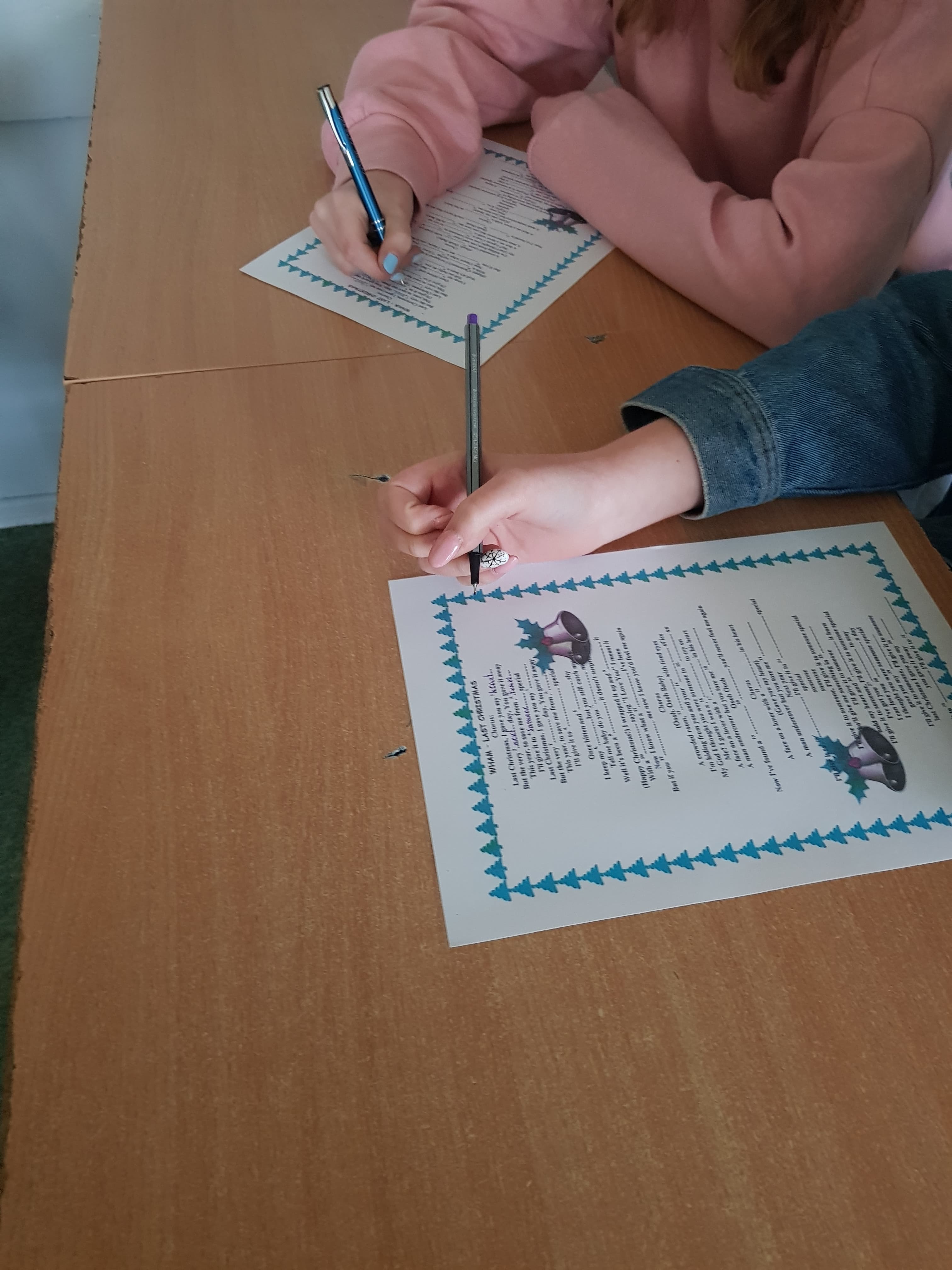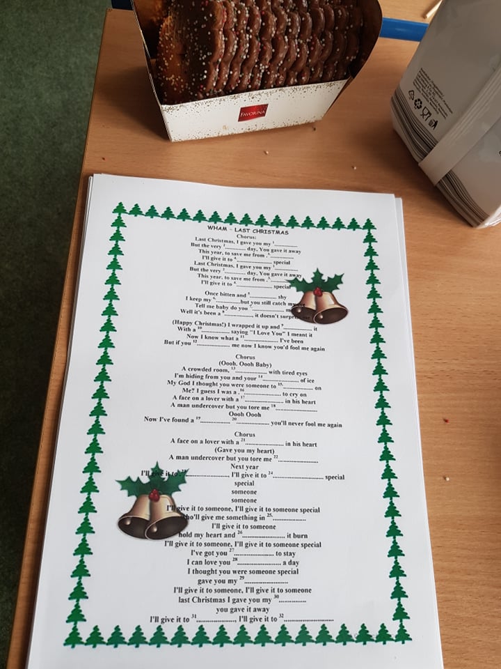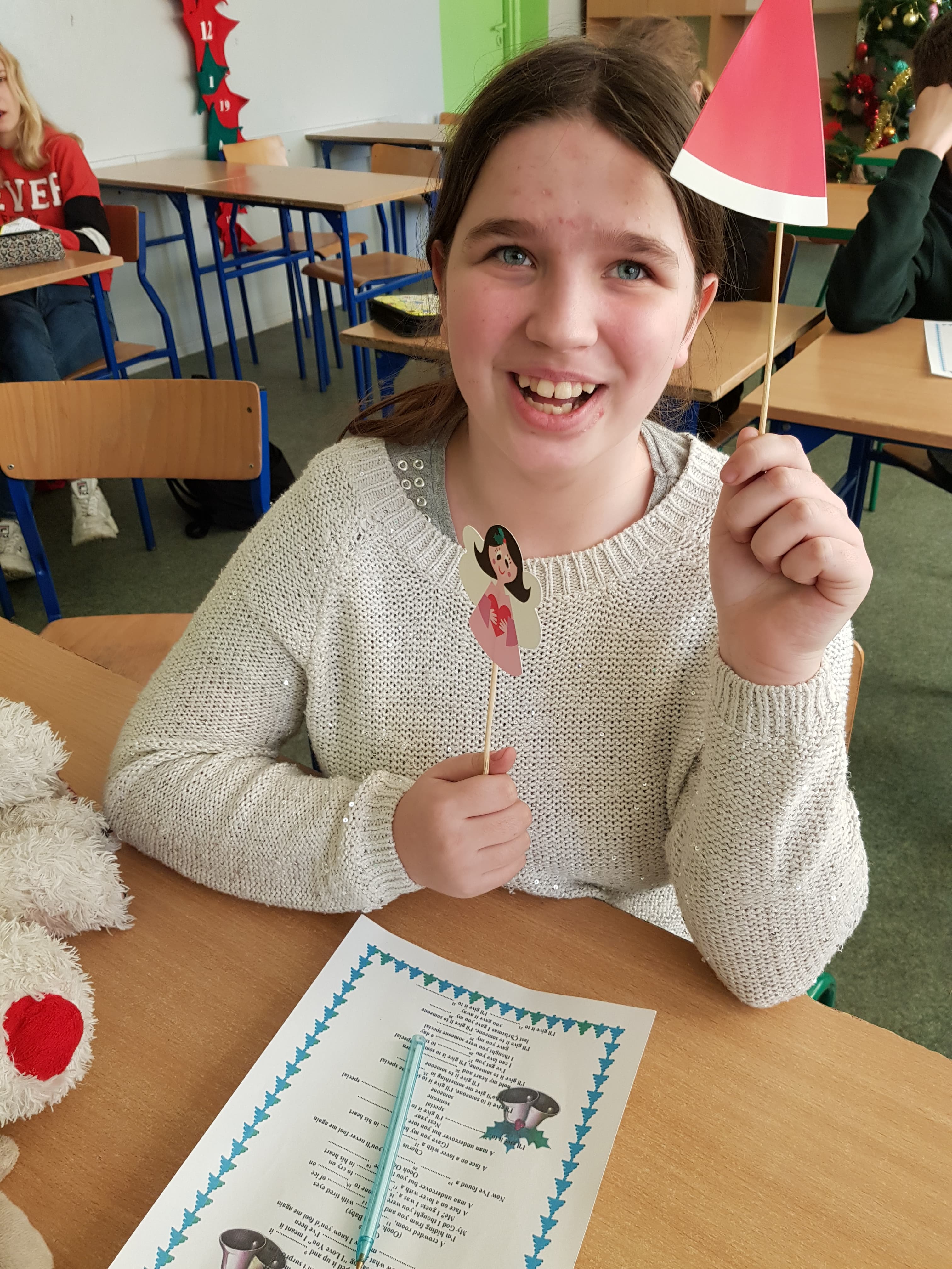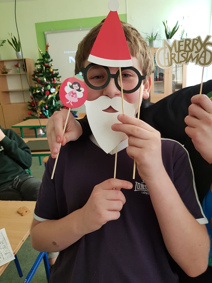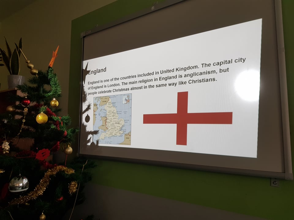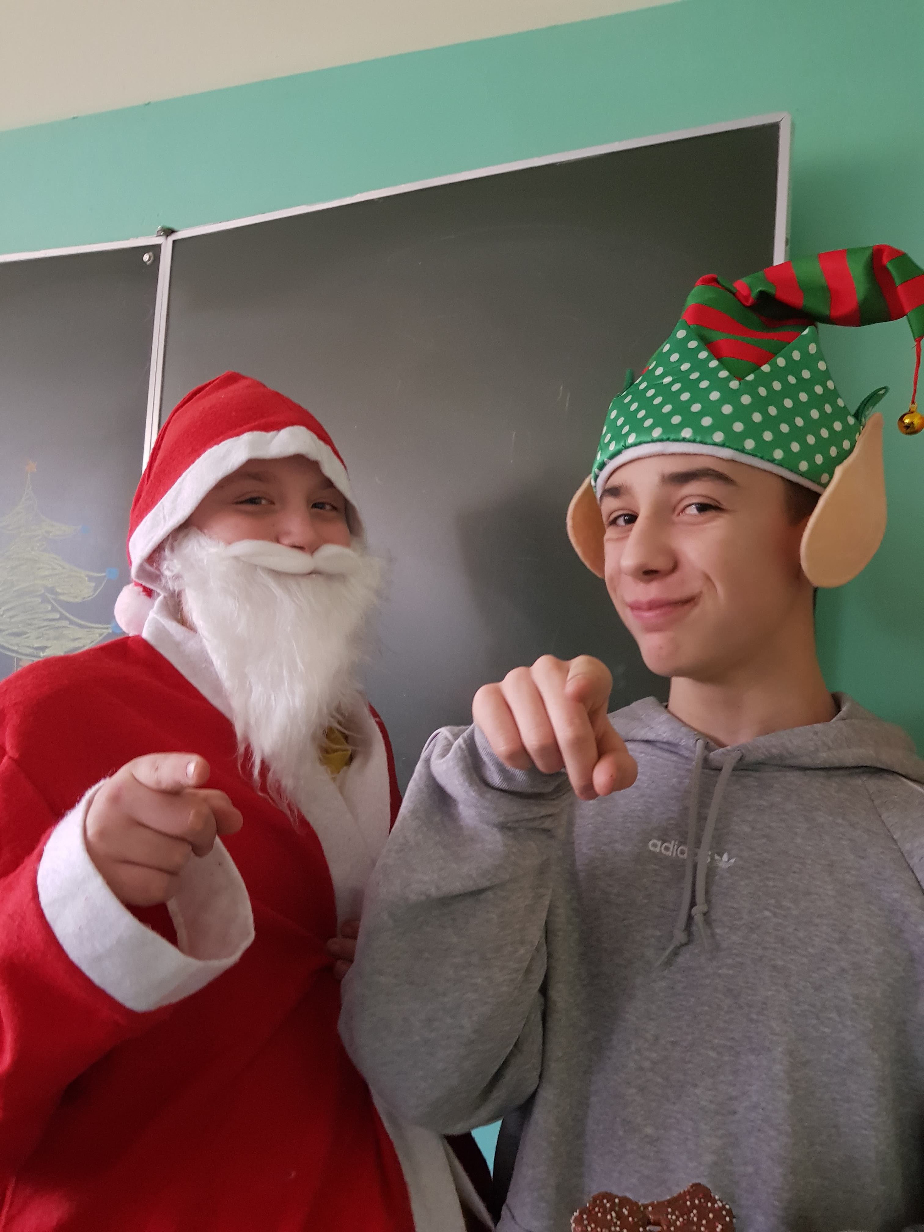 Uczniowie przyszli przebrani za elfy, mikołaje. Niektórzy mieli na sobie świąteczne sweterki. Następnie wysłuchali prezentacji dotyczącej zwyczajów związanych ze świętami w Anglii. Uczniowie poznali różnicę w obchodzeniu tego święta pomiędzy Polakami a Anglikami. Po krótkiej prezentacji obejrzeli kawałek odcinka słynnego serialu - Jaś Fasola (klasyczny humor brytyjski), świąteczne przemówienie Królowej Elżbiety II oraz film o ozdobach na ulicach Londynu. Uczniowie byli bardzo zainteresowani sposobem w jaki Anglicy obchodzą święta. Po prezentacji otrzymali kartki z tekstem znanej piosenki świątecznej “Last Christmas” zespołu Wham! i musieli uzupełnić luki. Dodatkowo w międzyczasie odbył się słodki, świąteczny poczęstunek w postaci ciasteczek.