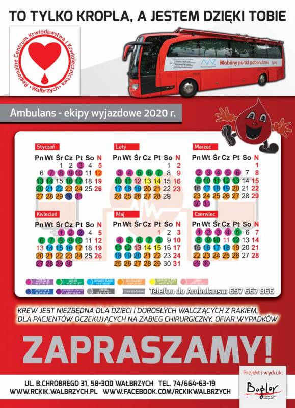 Regionalne Centrum Krwiodawstwa i Krwiolecznictwa w Wałbrzychu informuje, że w pierwszym półroczu 2020 roku w Lubaniu krew można oddawać w Punkcie Pobierania Krwi - w KRWIOBUSIE przy Wieży Brackiej ul. Bracka 12 w godzinach: 9.00 - 13.00.
