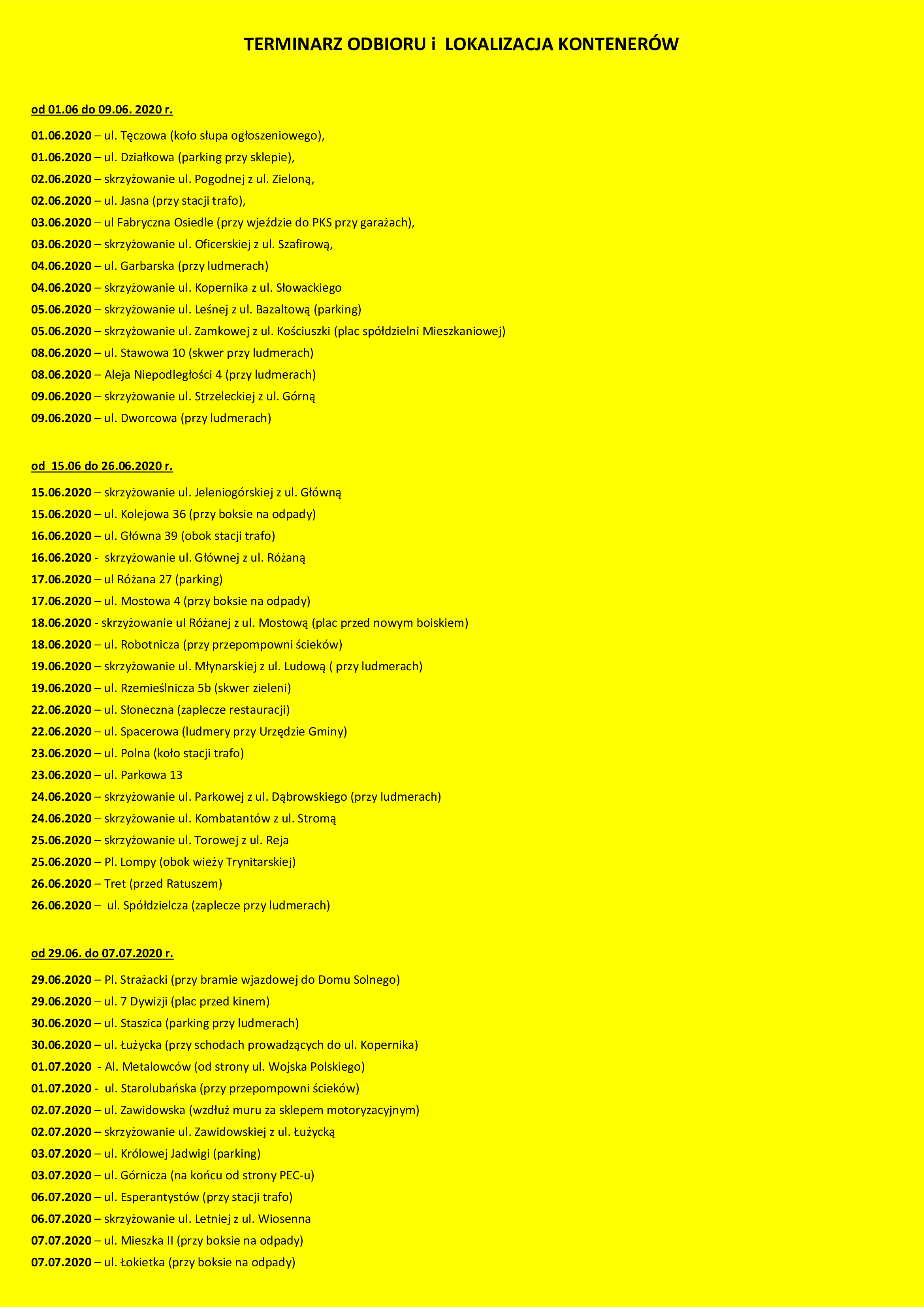 TERMINARZ ODBIORU i LOKALIZACJA KONTENERÓW