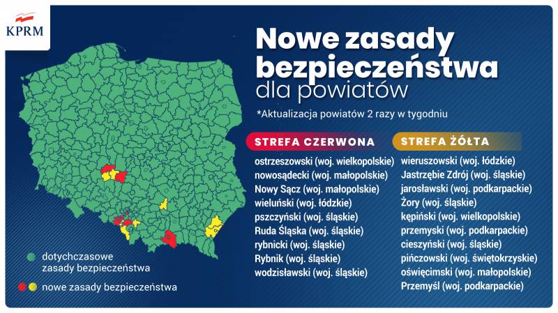 Wprowadzamy nowe zasady bezpieczeństwa, ale tylko w poszczególnych powiatach, w których wzrost zakażeń jest większy niż w pozostałych częściach Polski.