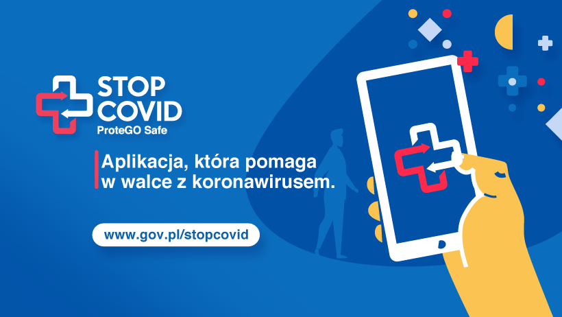 Walkę z zagrożeniem wspiera też aplikacja STOP COVID – ProteGO Safe. Jest ona w pełni bezpieczna, bezpłatna i dobrowolna. Im więcej osób będzie z niej korzystać, tym szybciej i skuteczniej ograniczymy tempo i zasięg rozprzestrzeniania się koronawirusa.