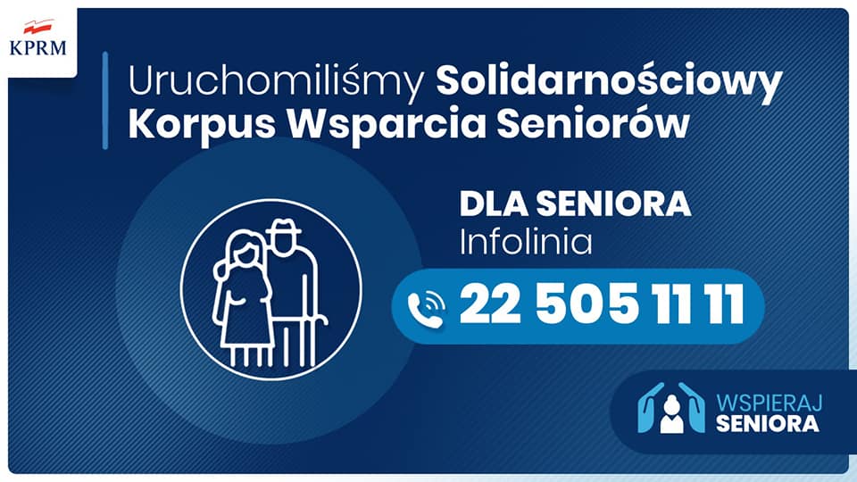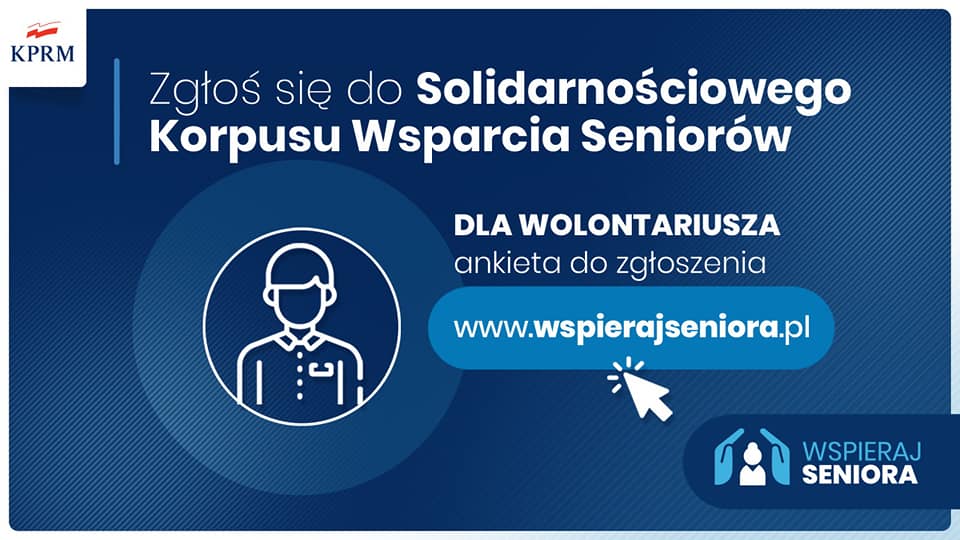 Zgodnie z zapowiedziami rząd uruchamia program Solidarnościowy Korpus Wsparcia Seniorów, dzięki któremu pomoc seniorom w okresie pandemii koronawirusa i działania podejmowane w tym zakresie przez rząd, samorządy, ośrodki pomocy społecznej i wolontariuszy będą przebiegały sprawniej, a osoby starsze uzyskają niezbędną pomoc w trudnym czasie. Koordynatorem programu jest Ministerstwo Rodziny i Polityki Społecznej.