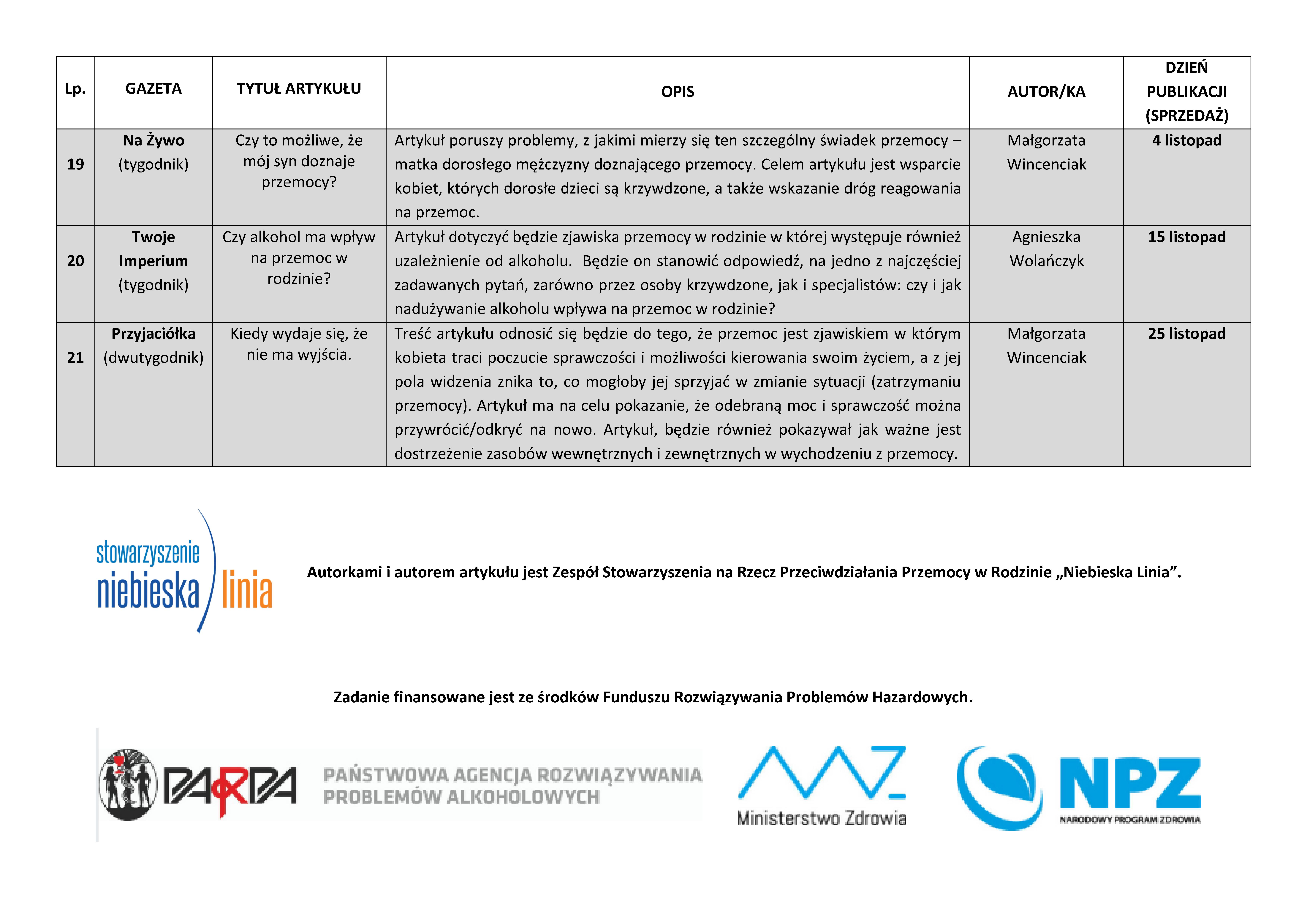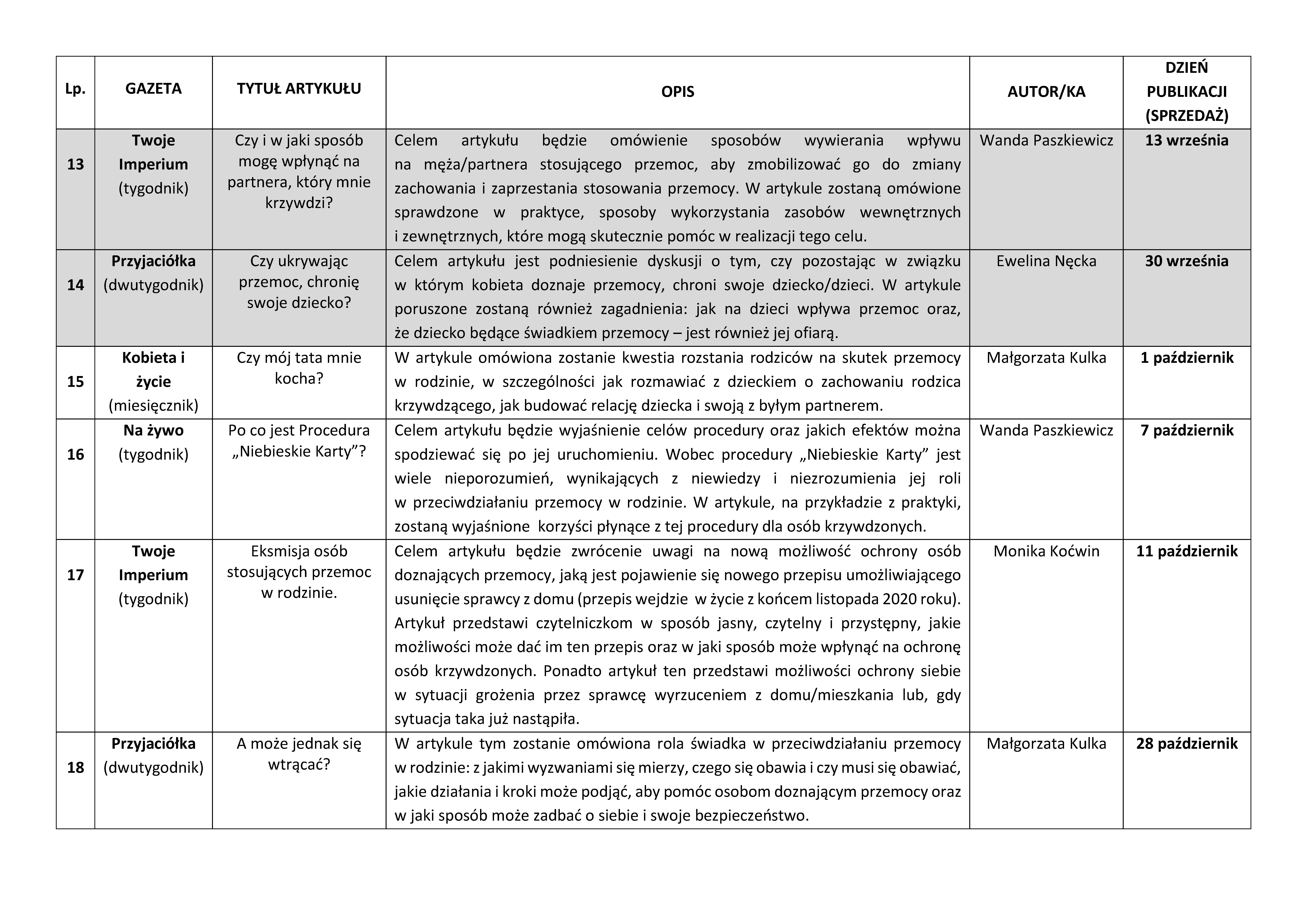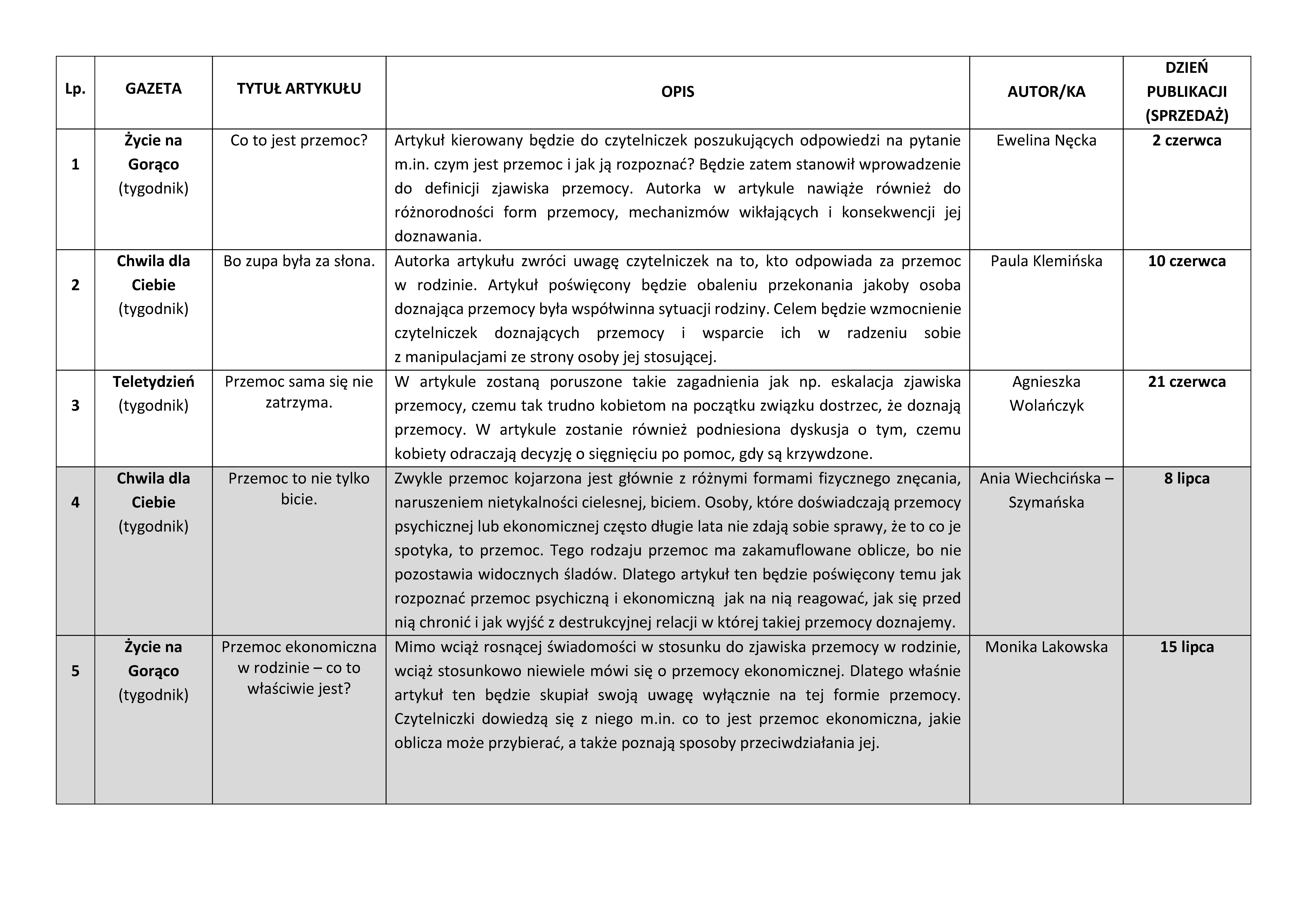 Informujemy o rozpoczęciu prac nad nowym programem pt. "Upowszechnianie wiedzy nt. zjawiska przemocy w rodzinie i możliwości uzyskania pomocy – cykl artykułów w prasie kobiecej".