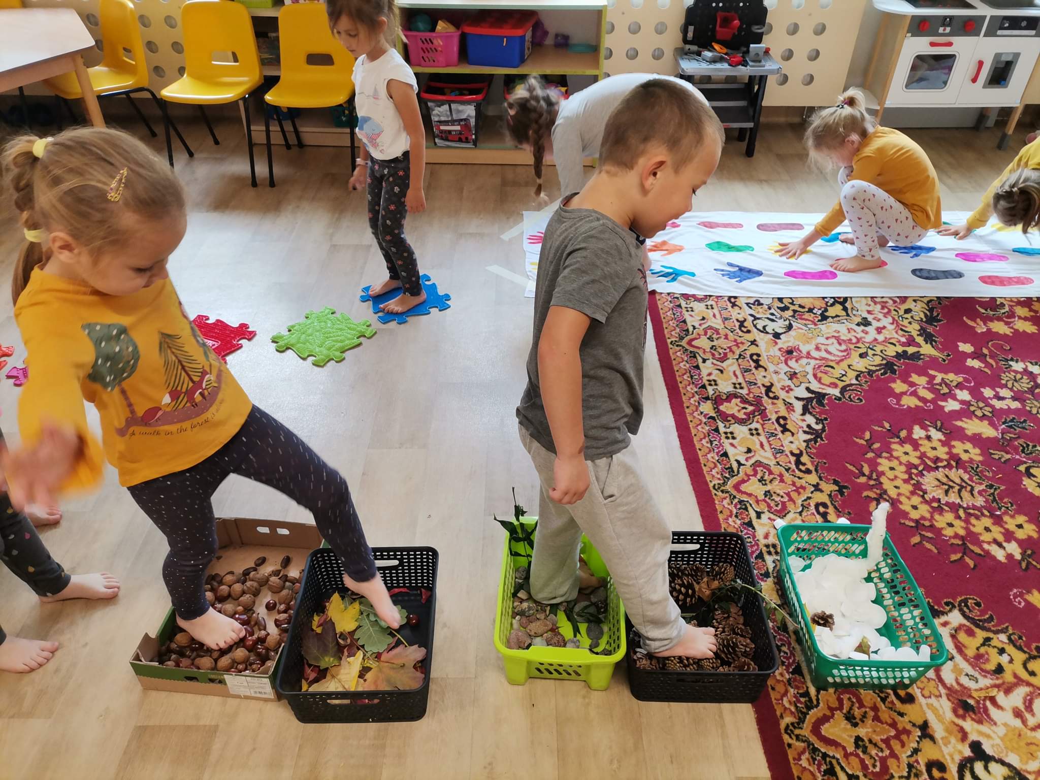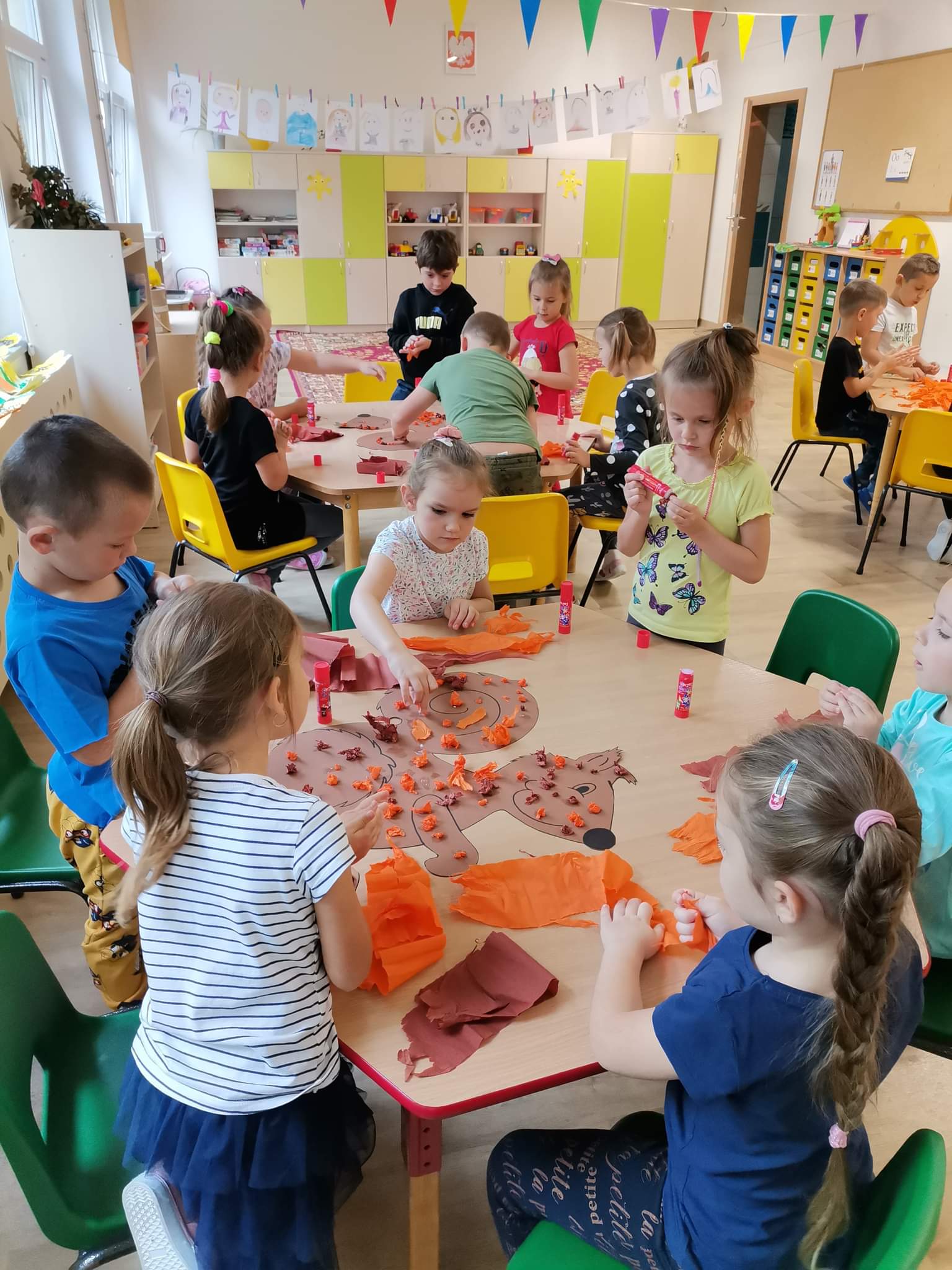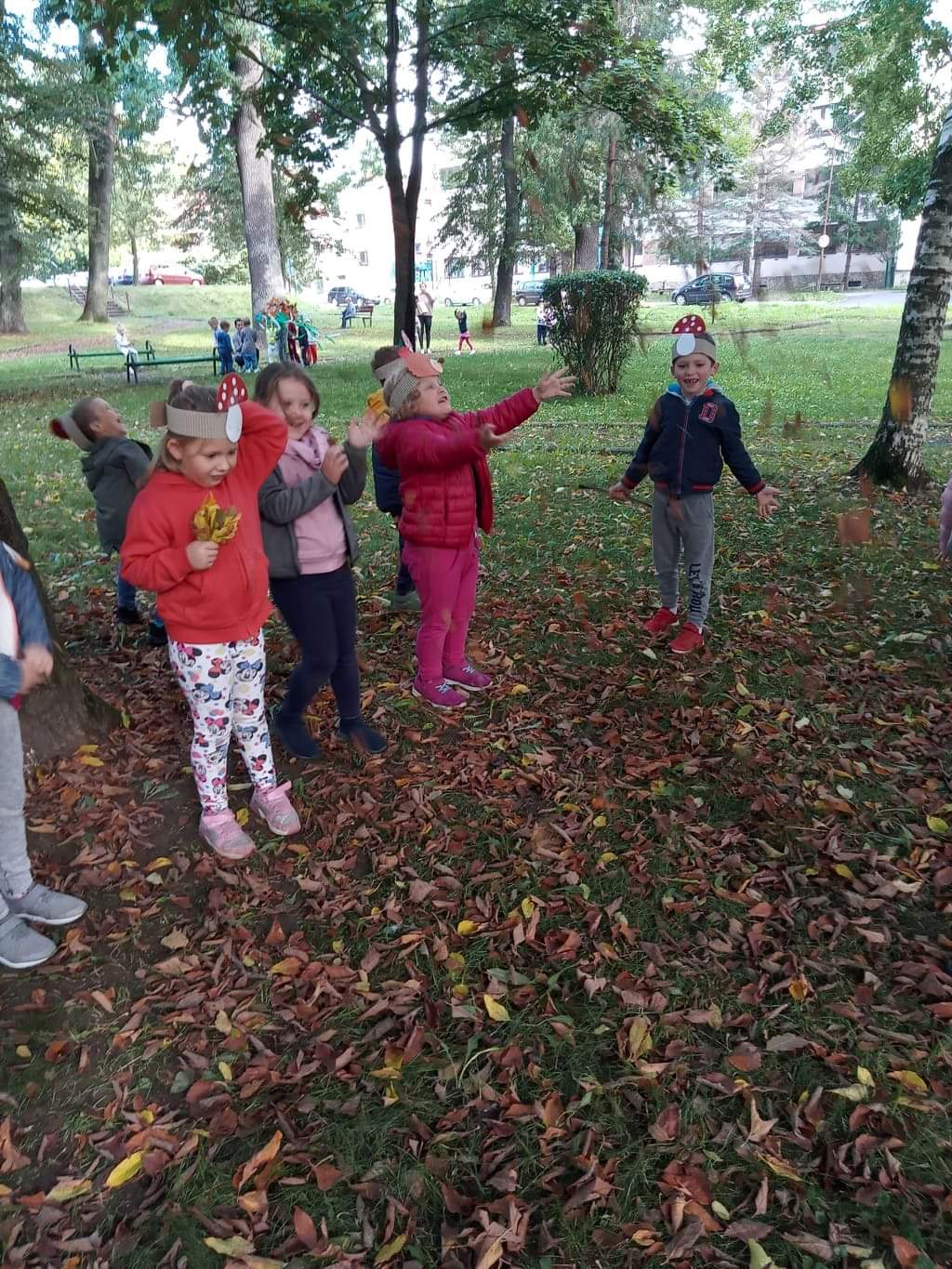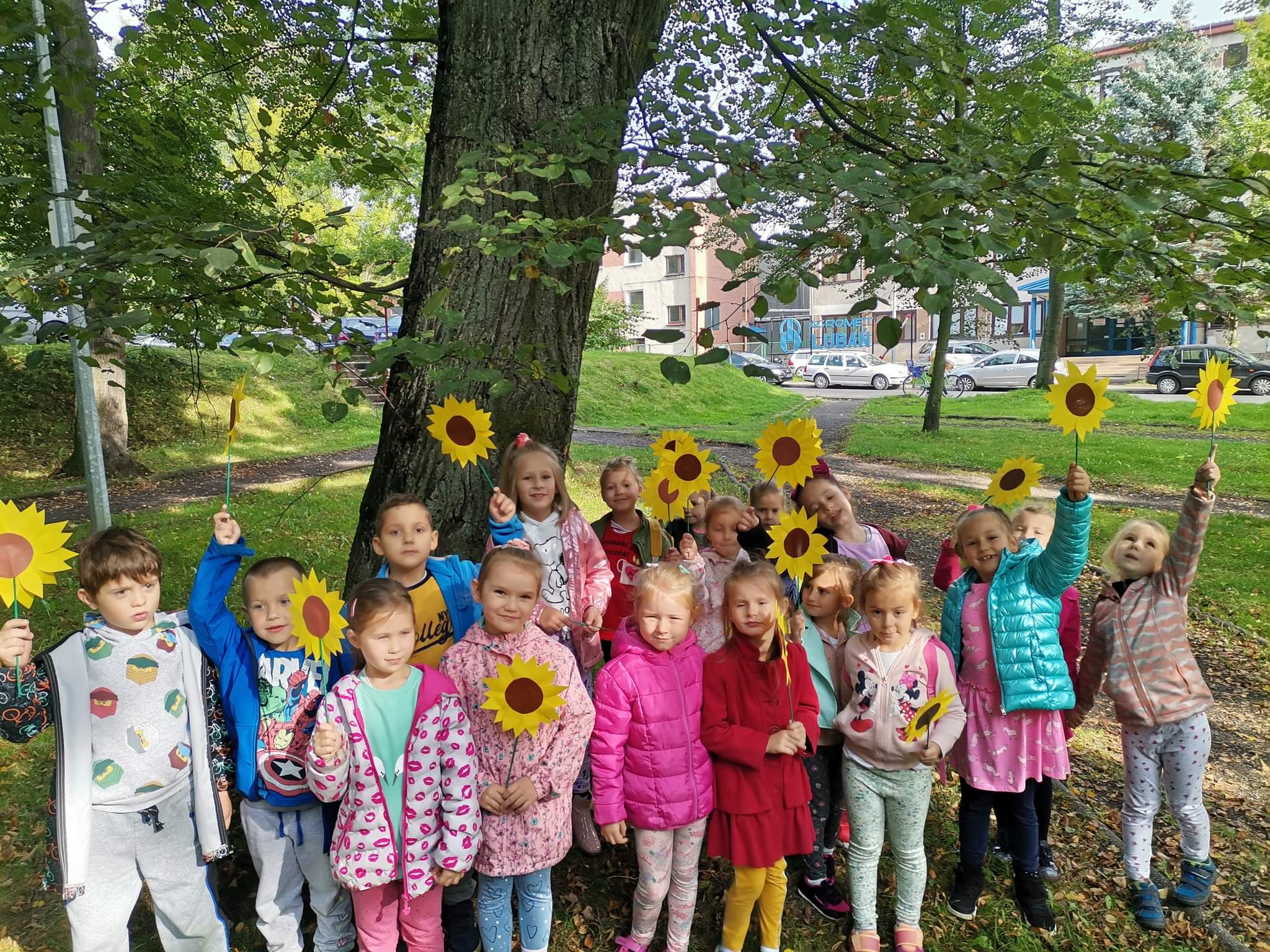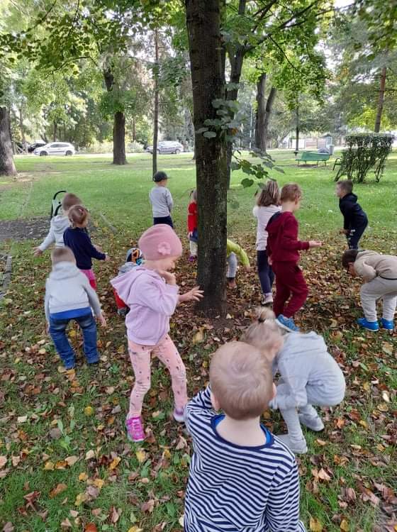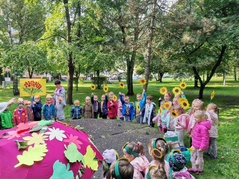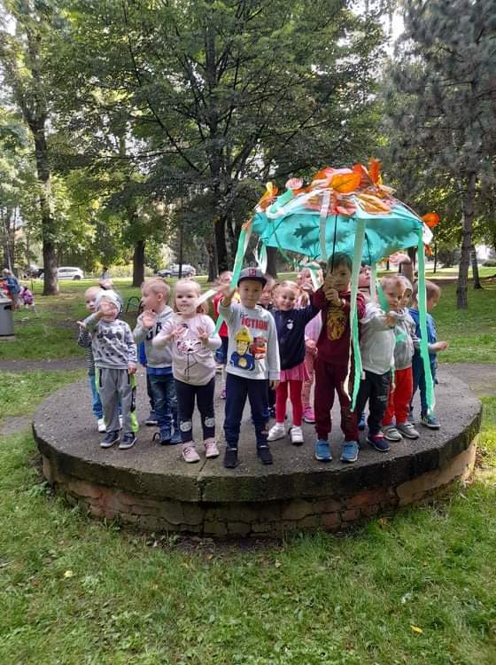 W pierwszy dzień jesieni pogoda dopisała. Dzieci z przedszkola wybrały się do parku, gdzie z pełną energią i radością poszukiwały oznak jesieni, obserwowały zmiany zachodzące w przyrodzie. Z przyniesionych darów jesiennych ozdobiono kąciki przyrody w salach. Dzieci miały wiele radości i zabawy.