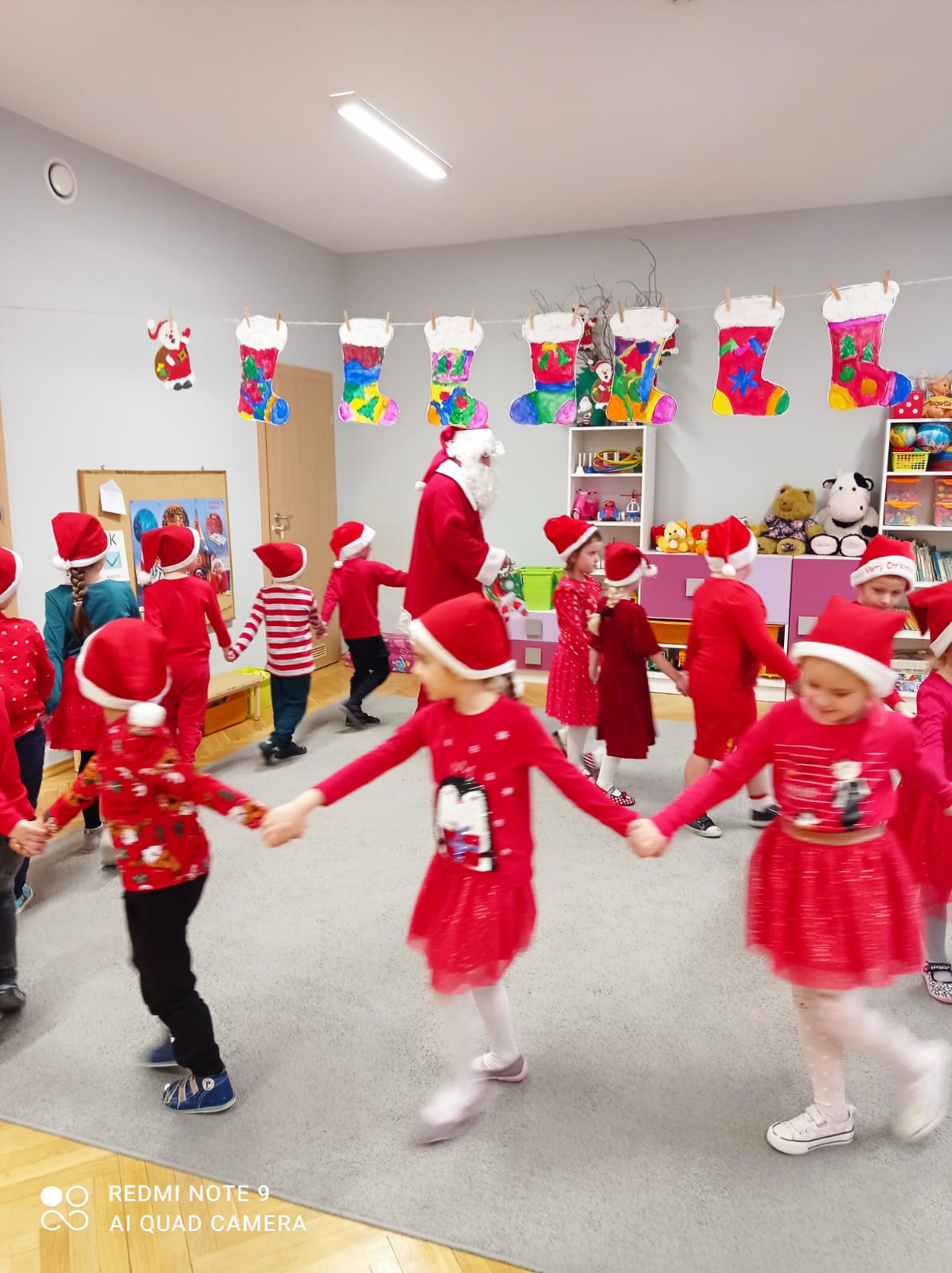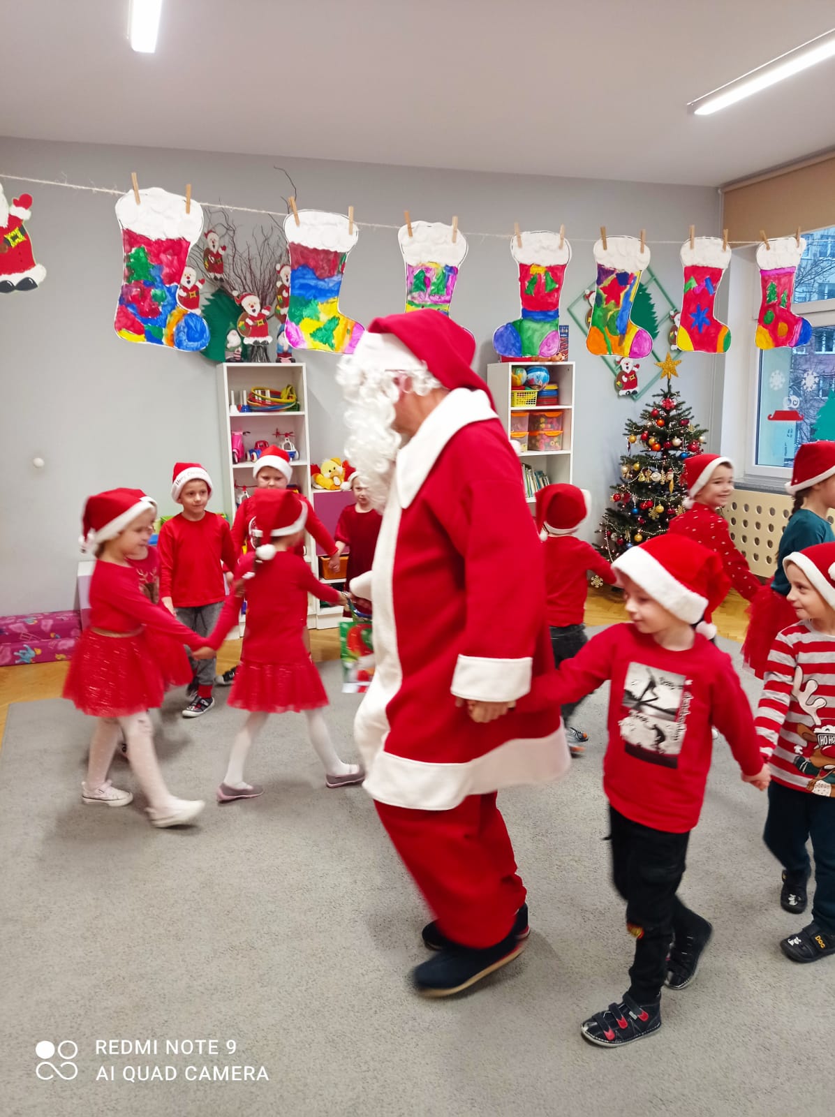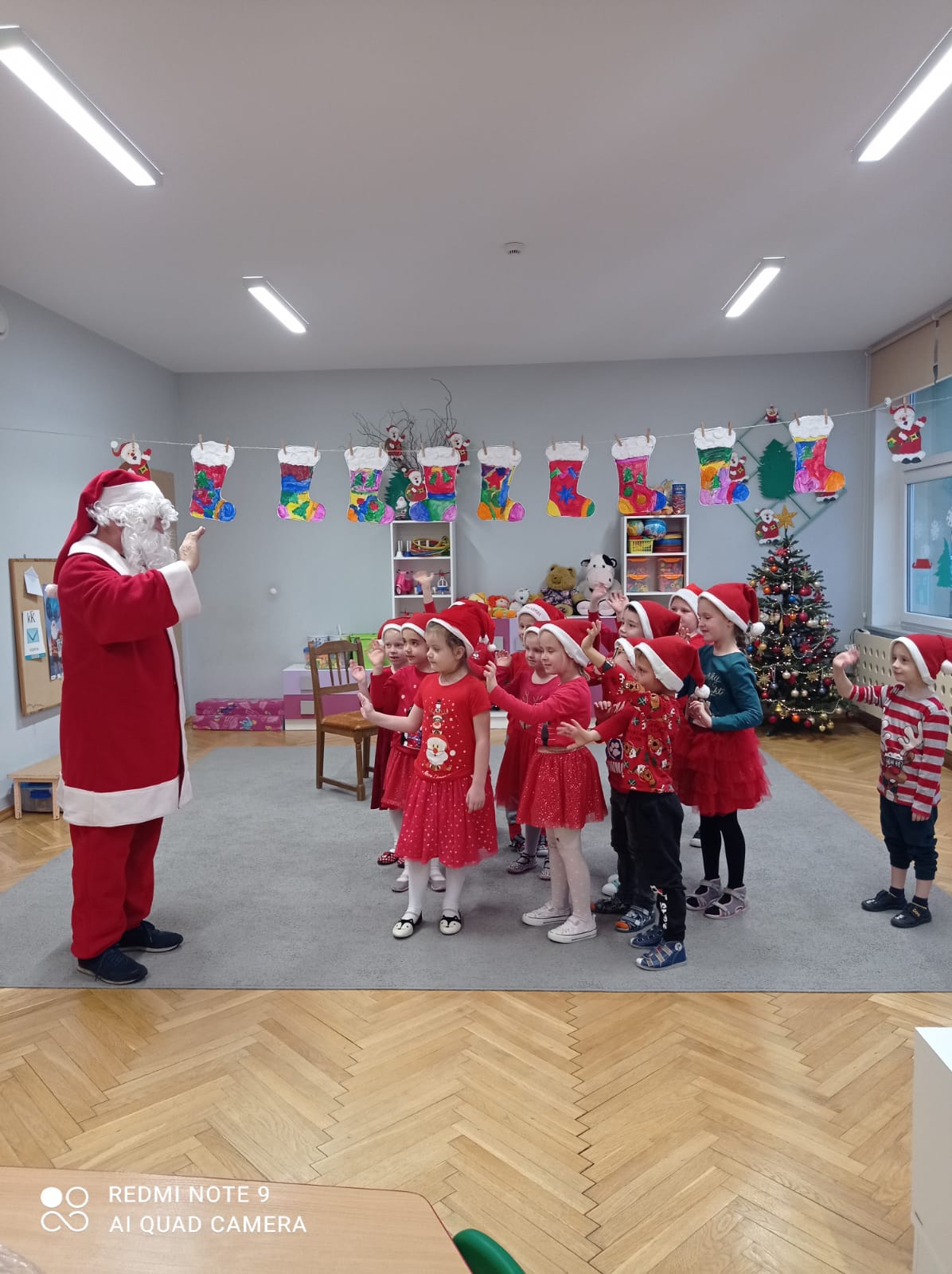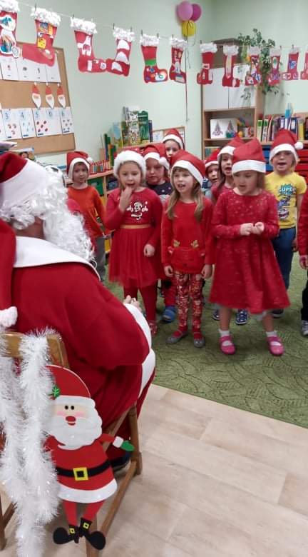 Każda z grup w ramach podziękowania za przybycie i otrzymane podarunki, recytowały wiersze i śpiewały piosenki, oraz tańce z Mikołajem. Atmosfera była pełna magii. Dzieci bardzo się cieszyły z podarunków, które otrzymały.