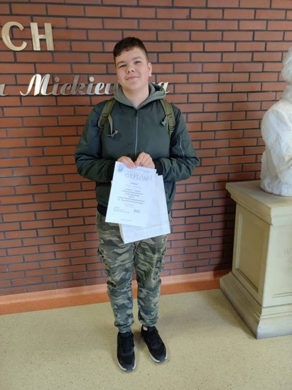 Uczeń klasy VIII b Błażej Augustyn zajął I miejsce w konkursie z języka angielskiego zorganizowanym przez ZSP im. A. Mickiewicza w Lubaniu dla klas ósmych szkół podstawowych.