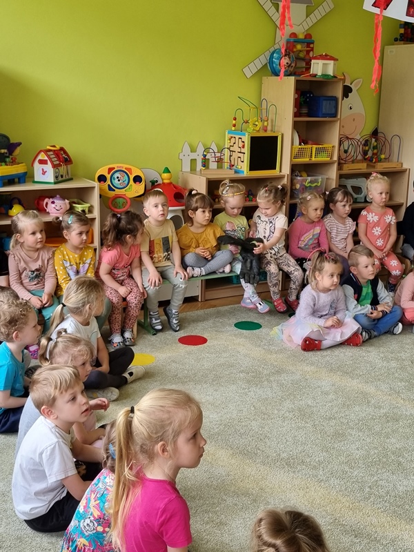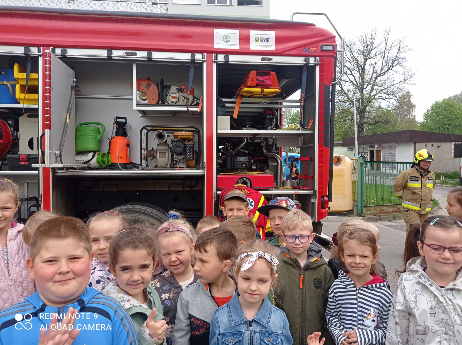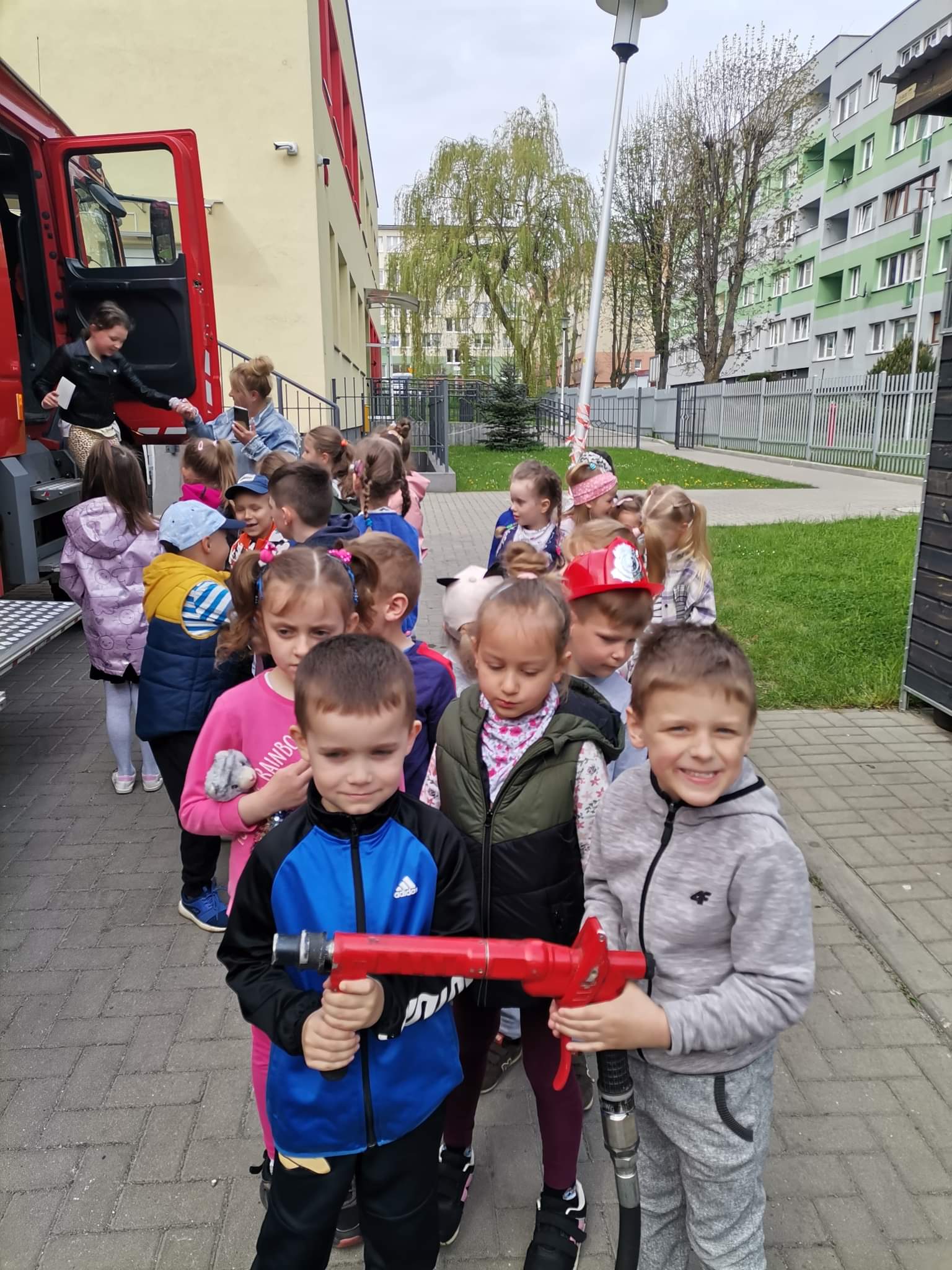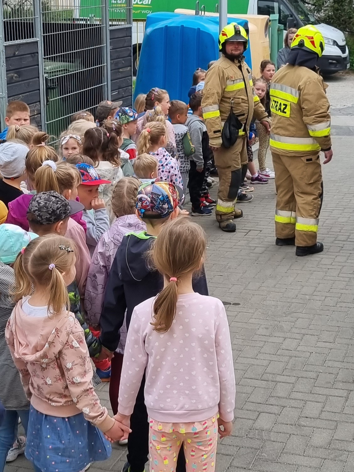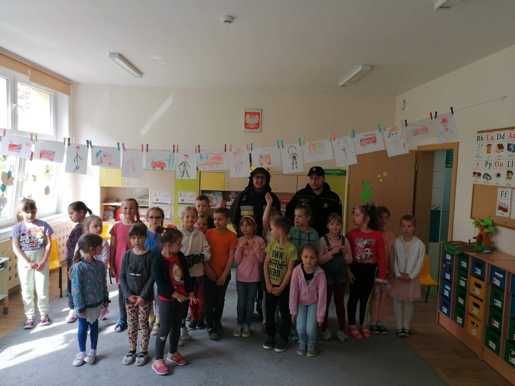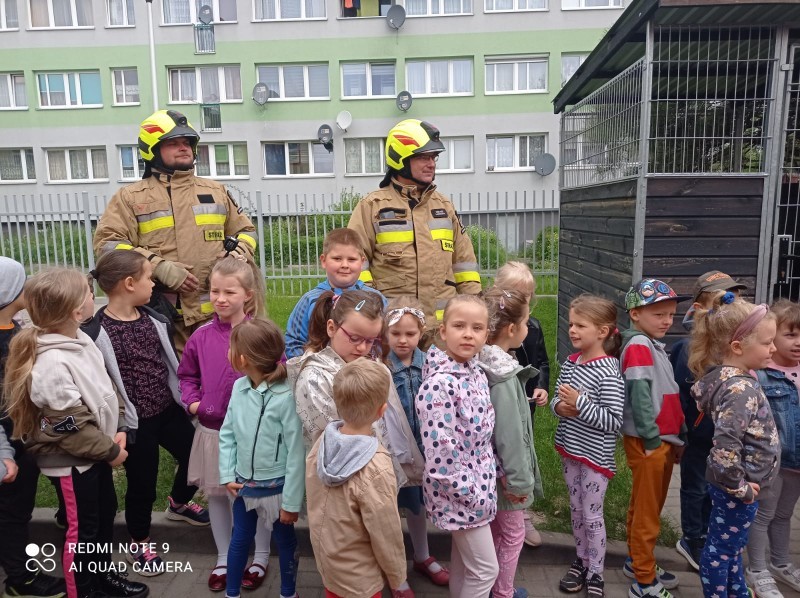 Prezentowano strój i podręczny sprzęt strażacki. W trakcie spotkania dzieci dowiedziały się, że praca strażaka nie polega tylko na gaszeniu pożarów, ale również na udzielaniu pomocy podczas wypadków samochodowych oraz w asyście podczas różnych akcji. Zaproszeni goście zapoznali przedszkolaków z sytuacjami, w których należy wezwać straż pożarną i korzystania z numeru 112. Można było z bliska podziwiać wóz strażacki, oraz jego wyposażenie wykorzystywane podczas akcji. Dzieci przymierzały hełm strażacki, trzymały wąż strażacki i wchodziły do wozu. Wizyta strazaków utrwaliła wiedzę dzieci w zakresie bezpieczeństwa.
