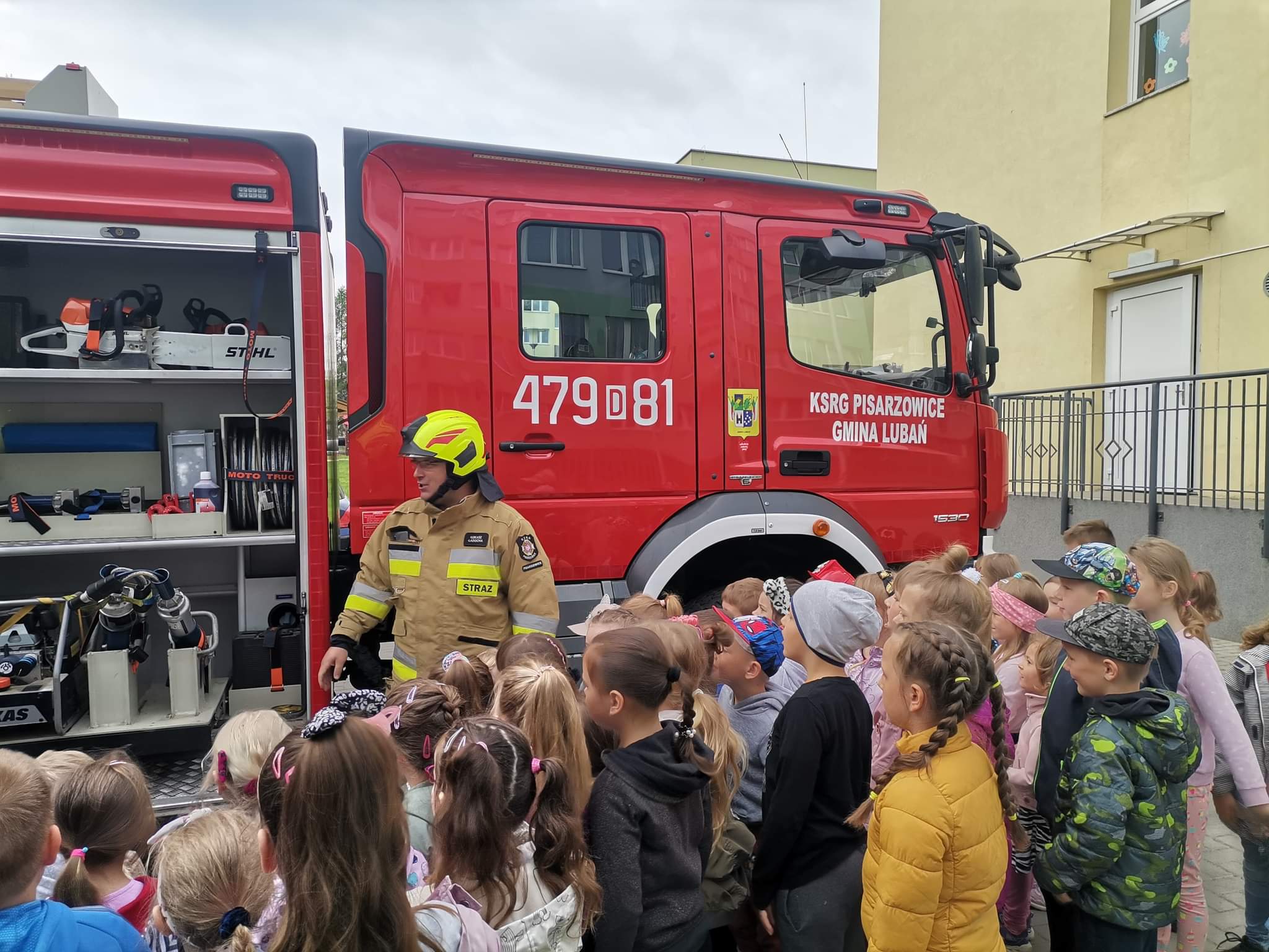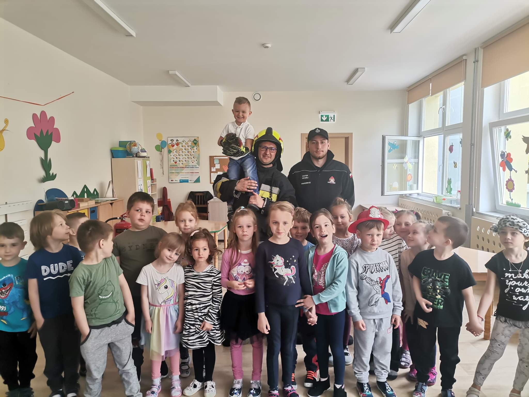 Dnia 6 maja 2022 r. dzieci z PM nr 5 im. J. Tuwima w Lubaniu z okazji obchodów Dnia Strazaka uczestniczyły w spotkaniu z funkcjonariuszami Ochotniczej Straży Pożarnej. Zaproszeni goście w ciekawy sposób przybliżyli przedszkolakom specyfikę pracy strażaka.