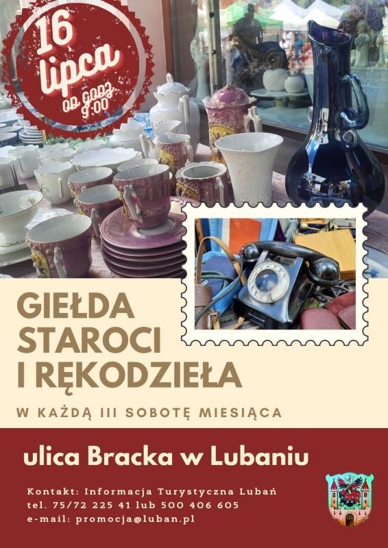 Wystawcy zainteresowani udziałem w Giełdzie Staroci proszeni są o kontakt z Informacją Turystyczną Lubań ul. Bracka 12, tel. 75 722 25 41 lub 500 406 605, promocja@luban.pl