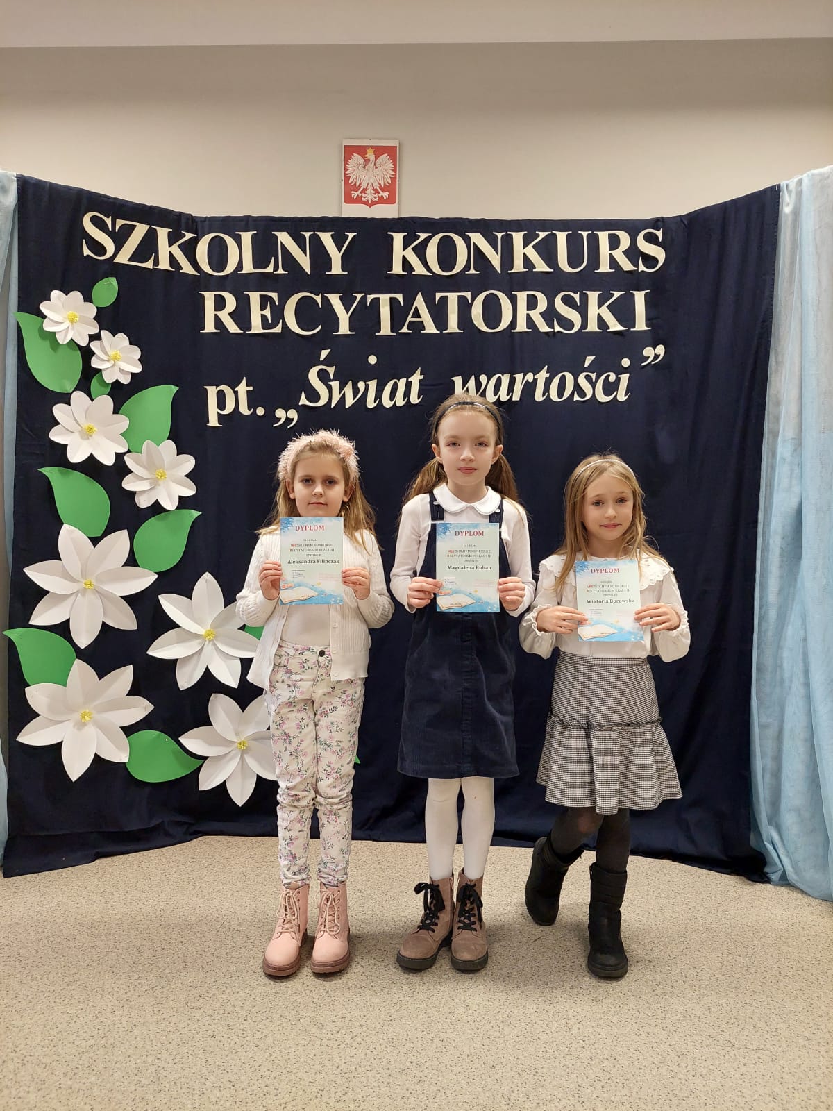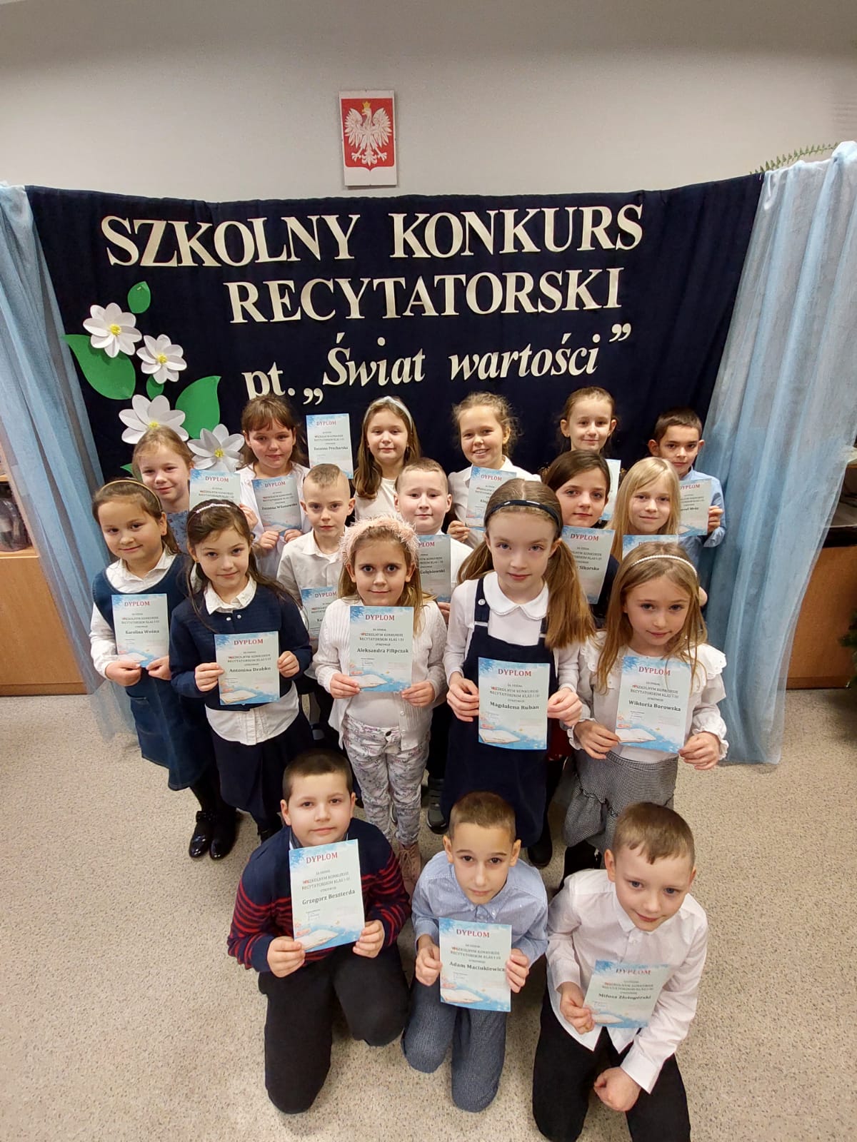 18 stycznia 2023 r. odbył się Szkolny Konkurs Recytatorski dla uczniów klas I–III o tematyce ,,Świat wartości”.