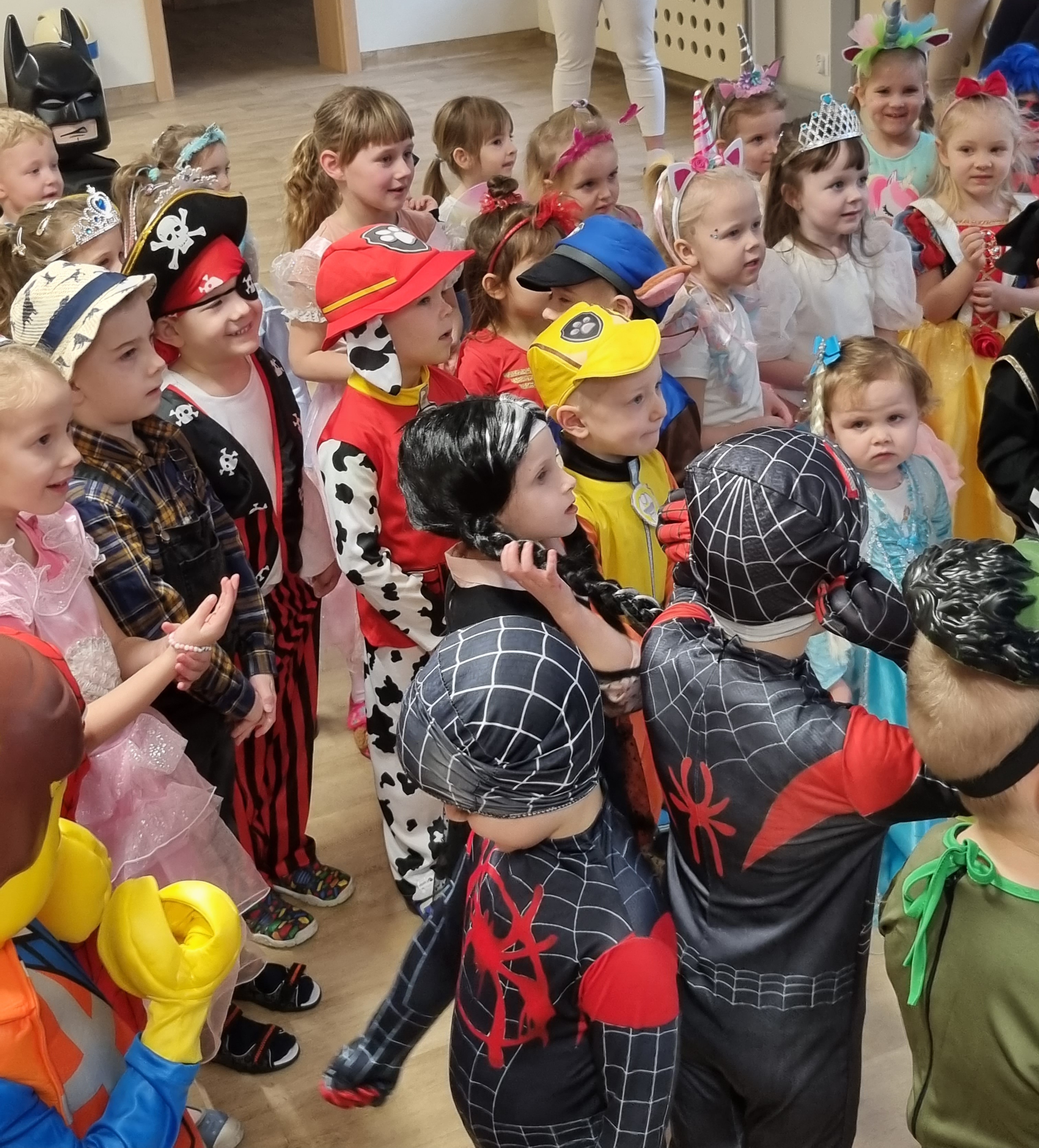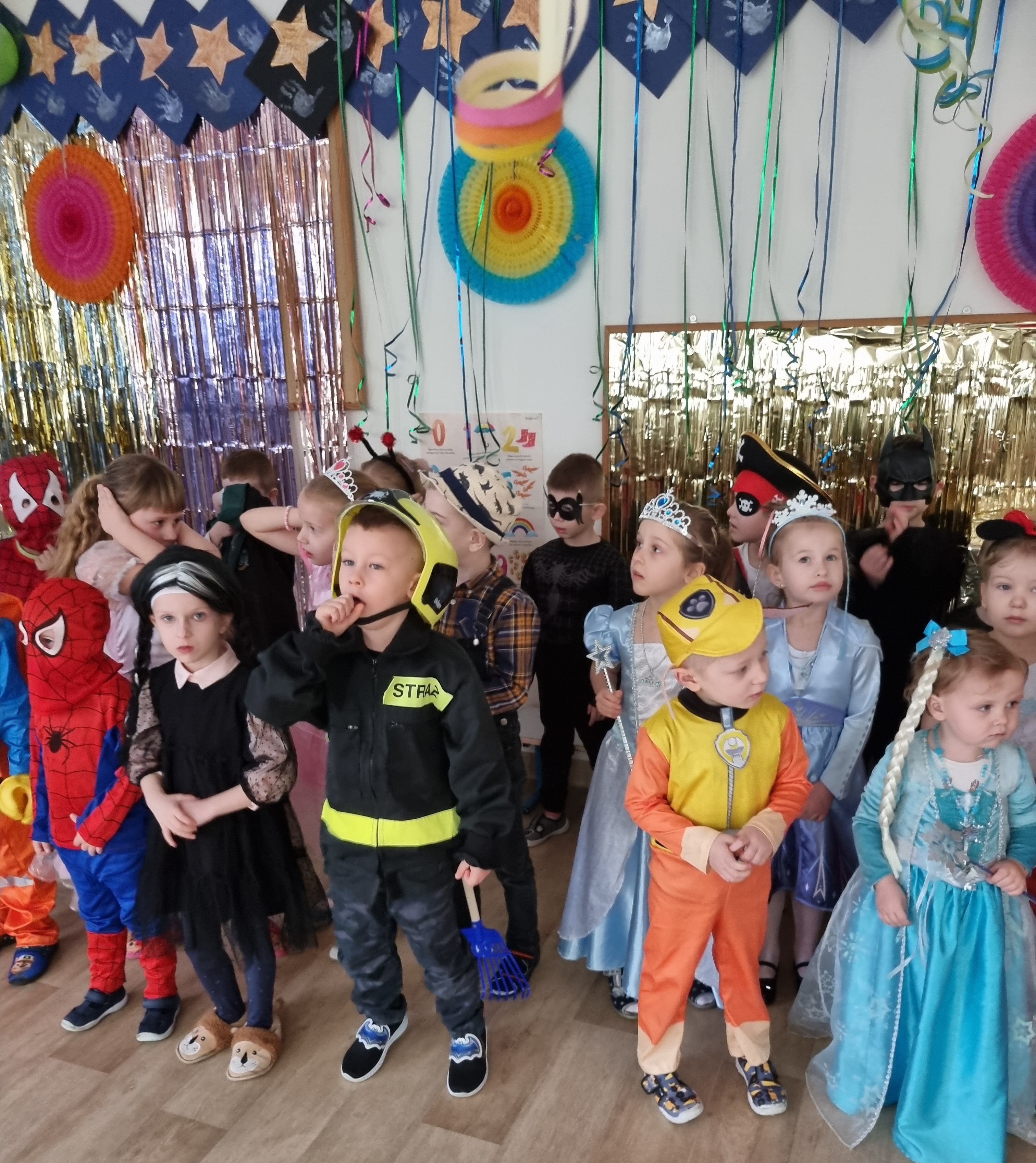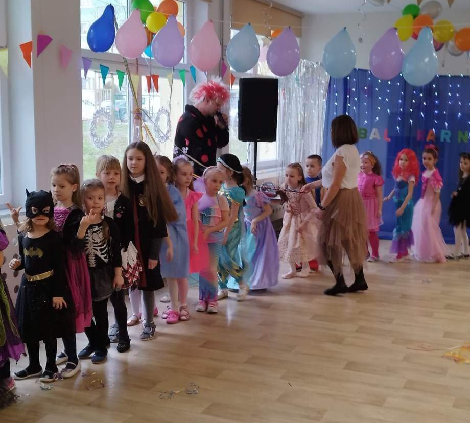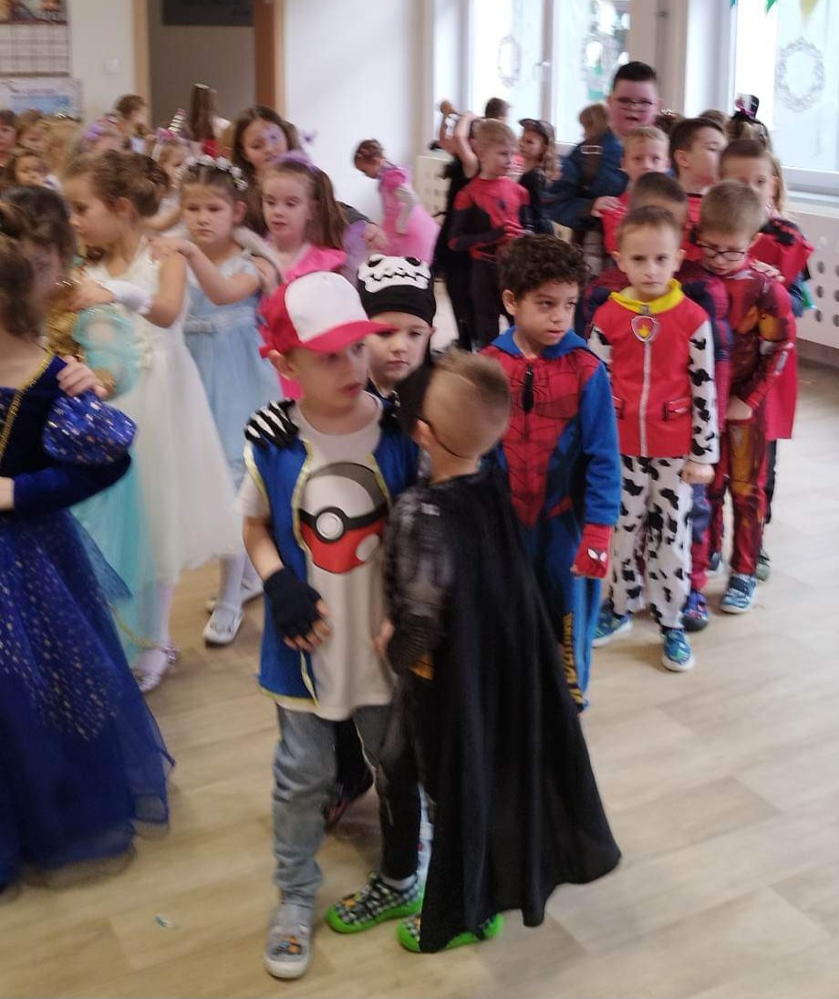 Były królewny, księżniczki, wróżki, biedronki, batmany, spidermany, piraci, skrzaty, policjanci i różne kreacje bohaterów ulubionych bajek przez dzieci. Przebierańcy świetnie bawili się przy muzyce DJ Pipka. Skoczna i wesoła muzyka zapraszała do tańca. Bal karnawałowy przebiegł w serdecznej atmosferze. Dziękujemy rodzicom za przygotowanie ciekawych strojów. Kolejny bal karnawałowy już za rok...