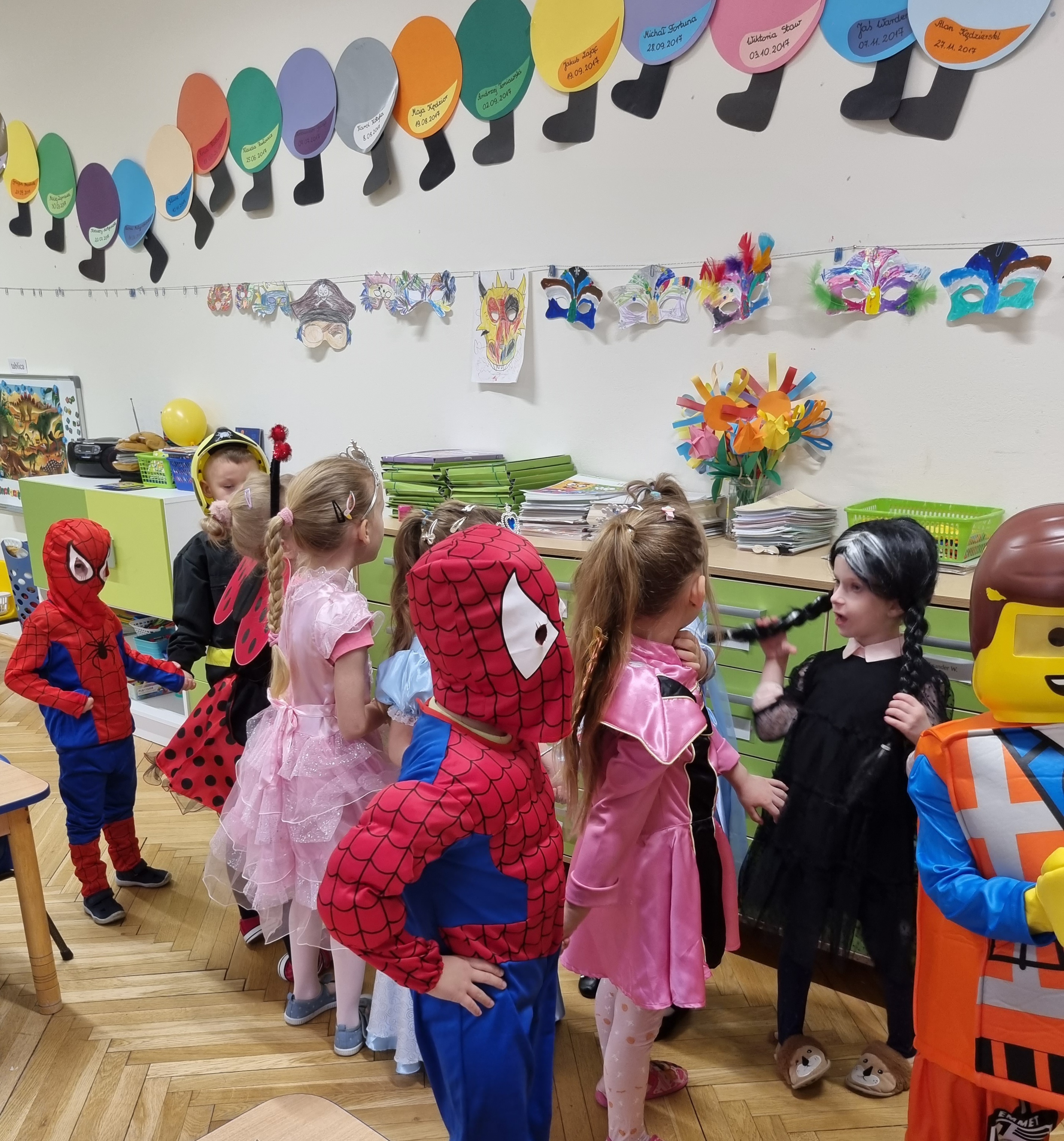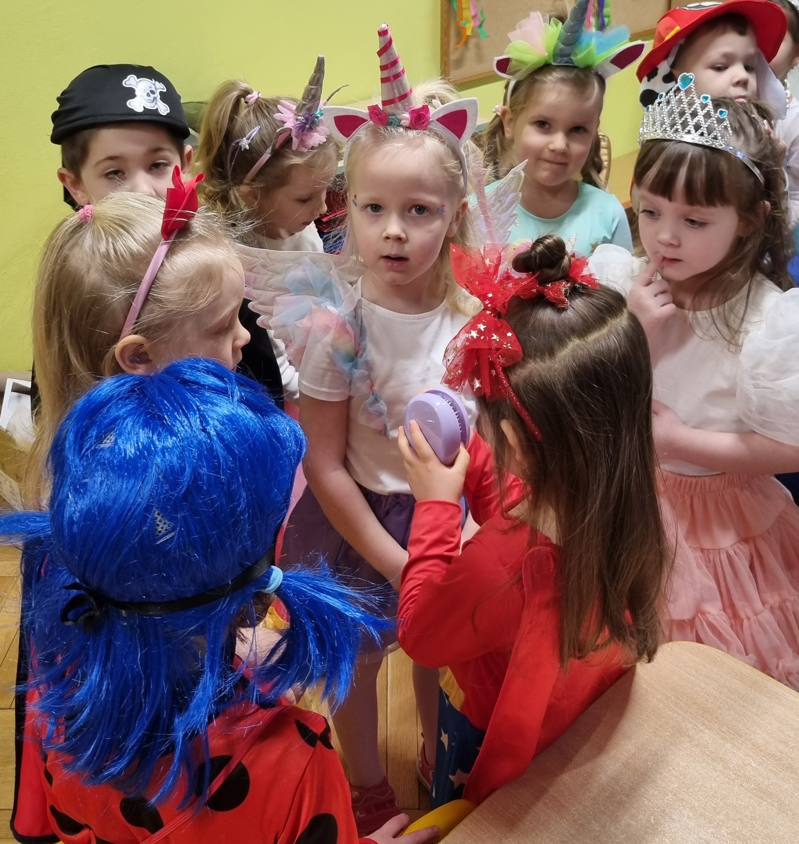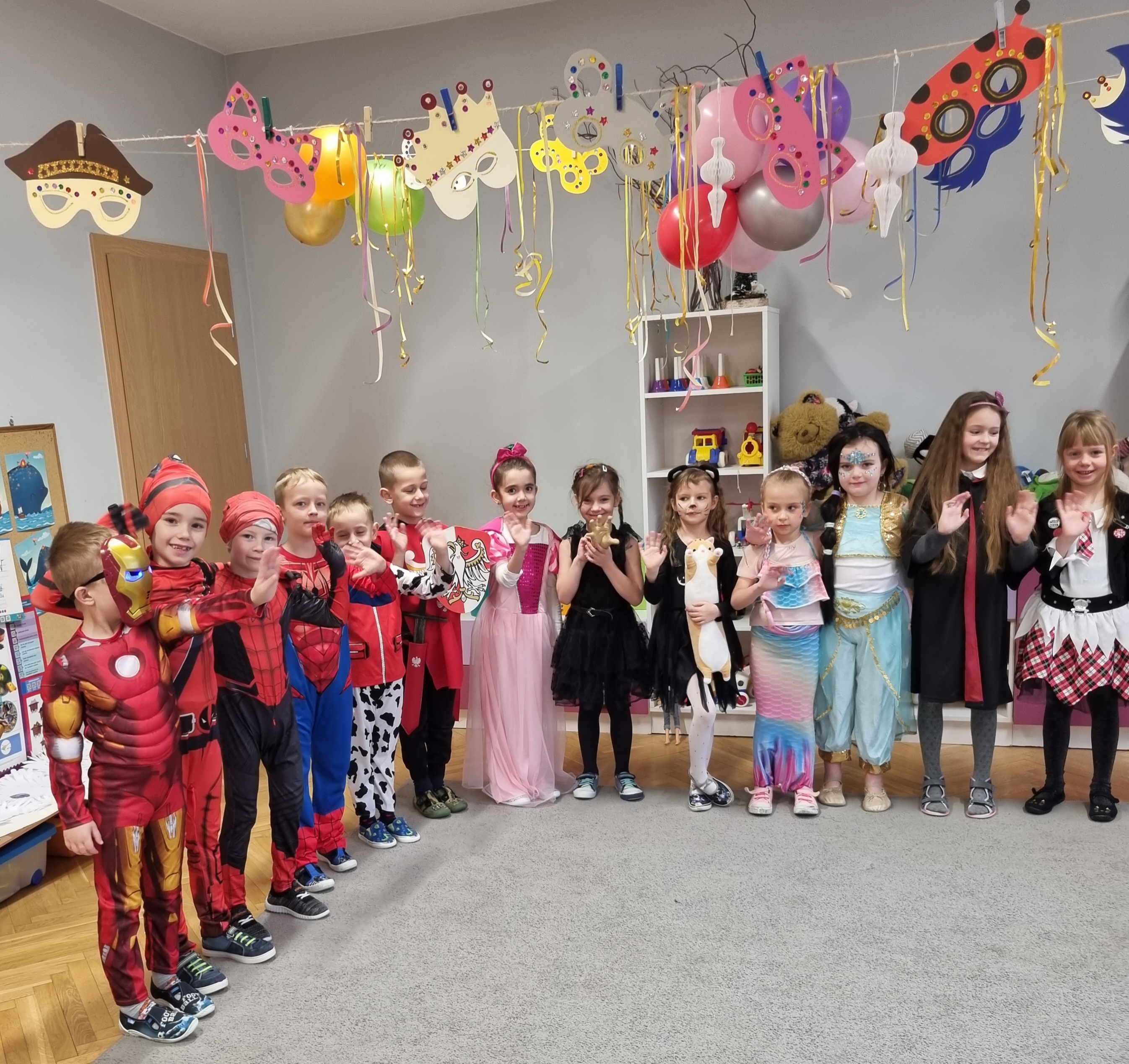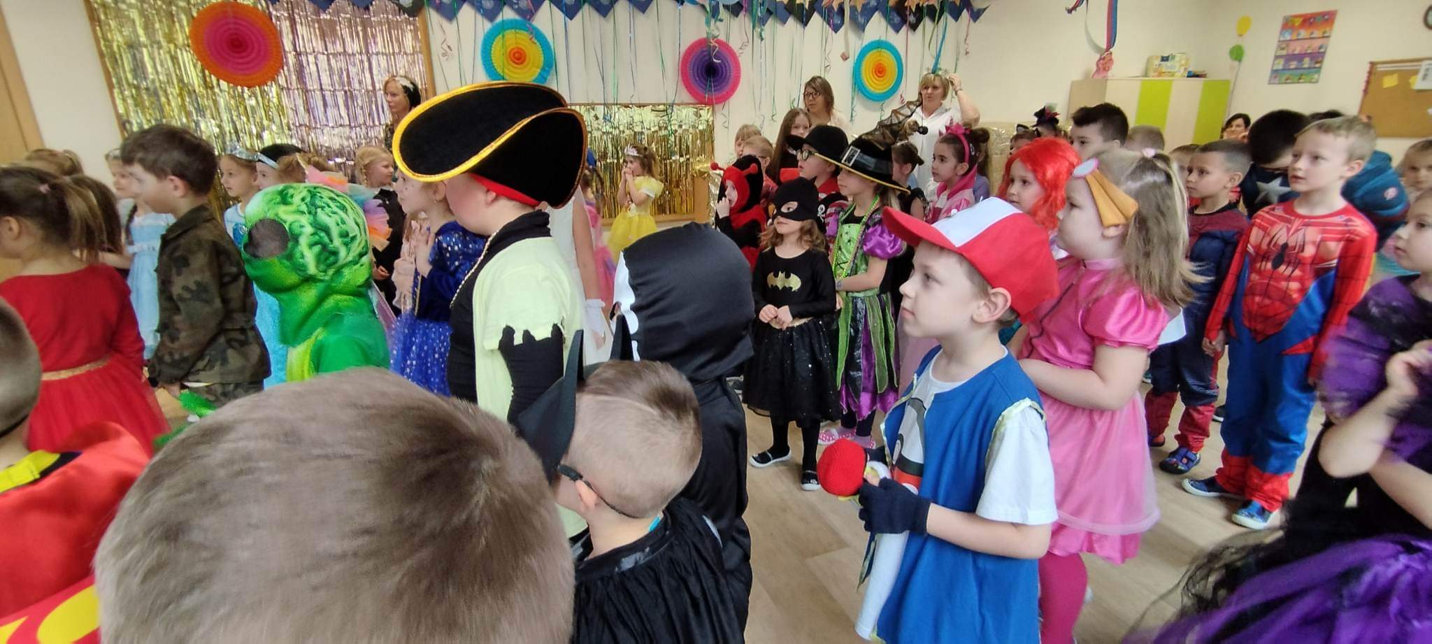 Były królewny, księżniczki, wróżki, biedronki, batmany, spidermany, piraci, skrzaty, policjanci i różne kreacje bohaterów ulubionych bajek przez dzieci. Przebierańcy świetnie bawili się przy muzyce DJ Pipka. Skoczna i wesoła muzyka zapraszała do tańca. Bal karnawałowy przebiegł w serdecznej atmosferze. Dziękujemy rodzicom za przygotowanie ciekawych strojów. Kolejny bal karnawałowy już za rok...