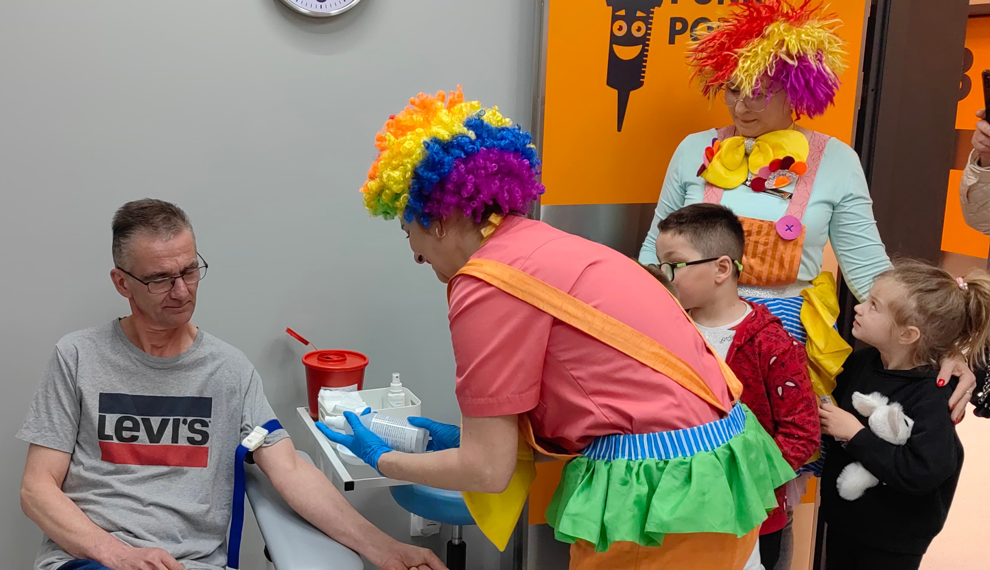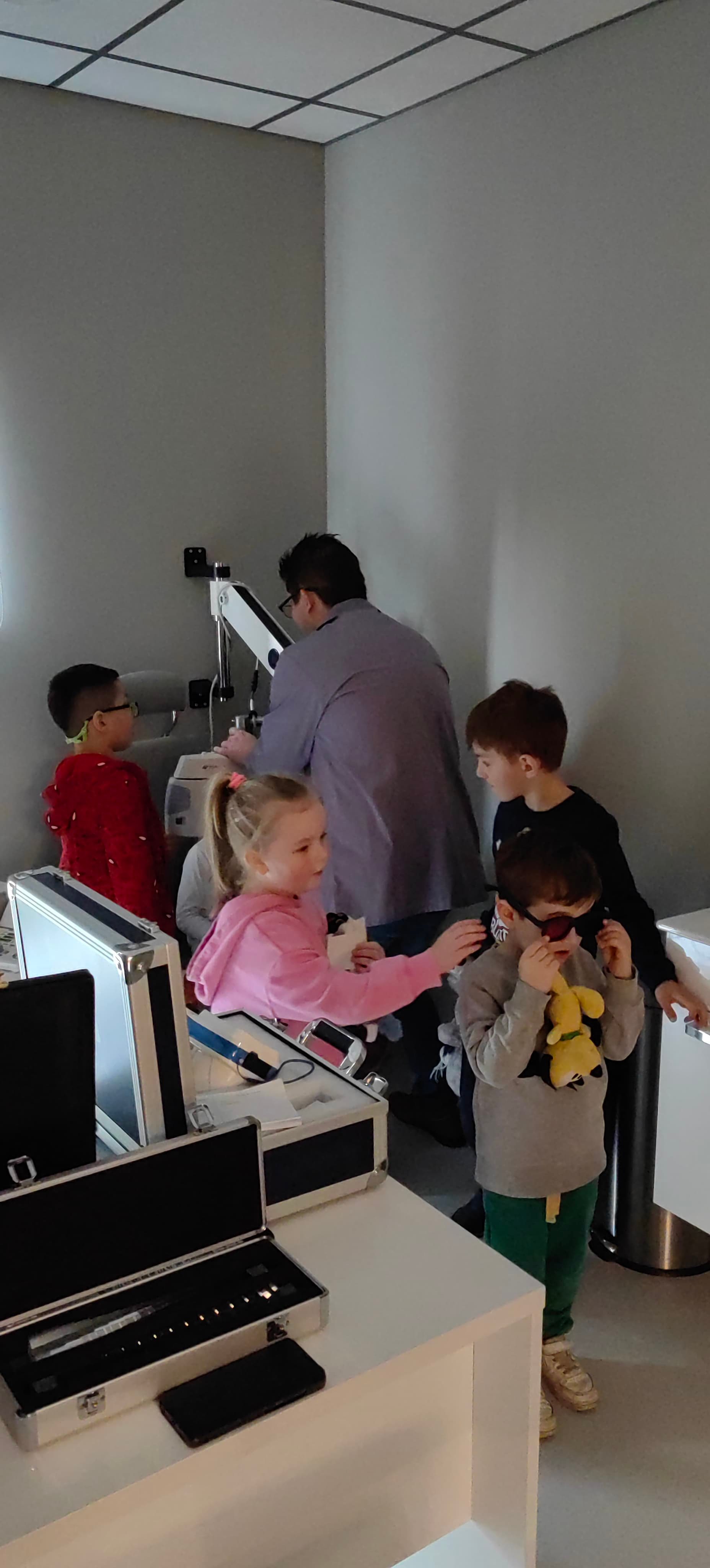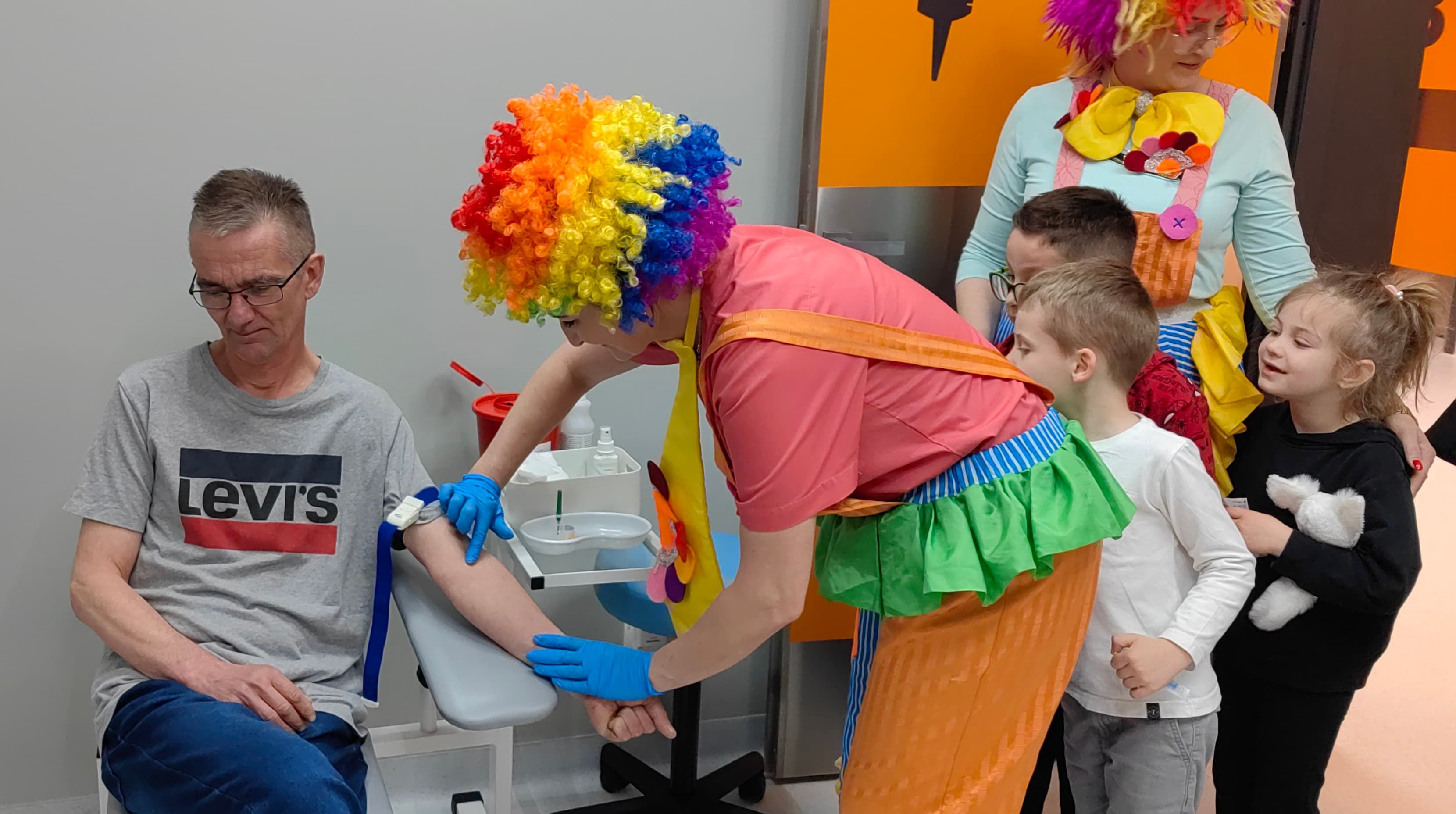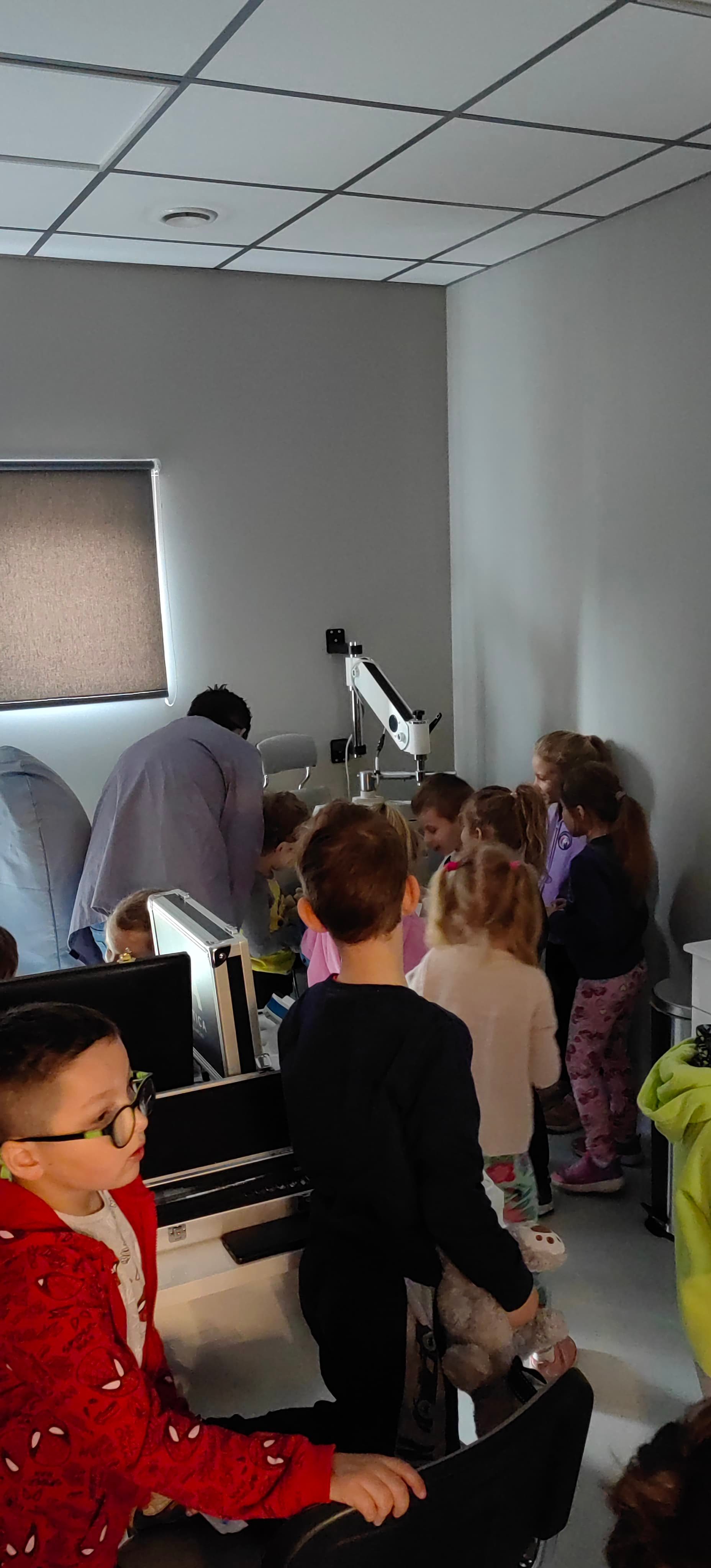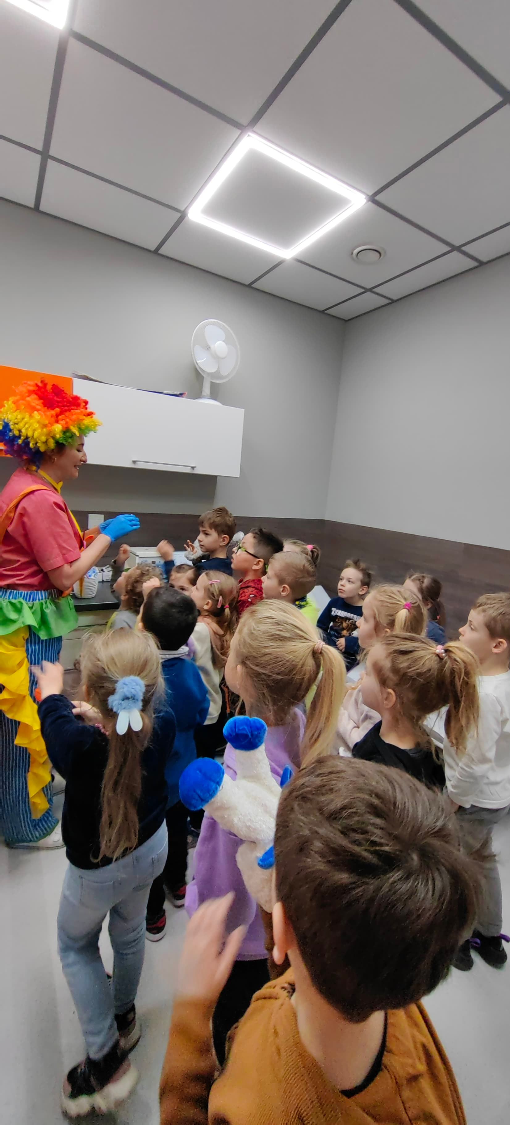 Przedszkolaki zostały powitane przez pracowników medycznych przebranych za kolorowe klauny. Dzięki przyjaznej atmosferze dzieci zapoznały się z funkcjonowaniem gabinetu zabiegowego. Celem wizyty było oswojenie i przełamanie lęku przed pobraniem krwi, oraz innych zabiegów wykonywanych w tym gabinecie. Oprócz tego dzieci miały okazję zapoznać się pracą optomedysty. Chętne dzieci skorzystały z możliwości oglądnięcia gabinetu wyposażonego w sprzęt i narzędzia optomedysty. Dzieci z PM nr 5 im. J. Tuwima w Lubaniu serdecznie dziękują za zaproszenie panu prezesowi oraz wspaniałemu personelow, który stanął na wysokości zadania, aby przedszkolaki czuły się swobodnie i bezpiecznie. Dziękujemy za miłą atmosferę.