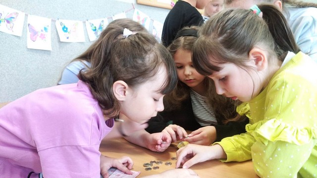 Bohaterem zajęć był polski złoty. Dzieci z dużym zainteresowaniem oglądały banknoty i monety, poznały ich zabezpieczenia oraz urządzenie wykorzystywane w banku — LICZARKA I SORTER MONET. Następnie uważnie słuchały informacji o tajnikach bankowości, oszczędzaniu i gospodarowaniu pieniędzmi. Przekazane wiadomości uzupełniły i wzbogaciły wiedzę naszych uczniów, na pewno w przyszłości klientów banku.