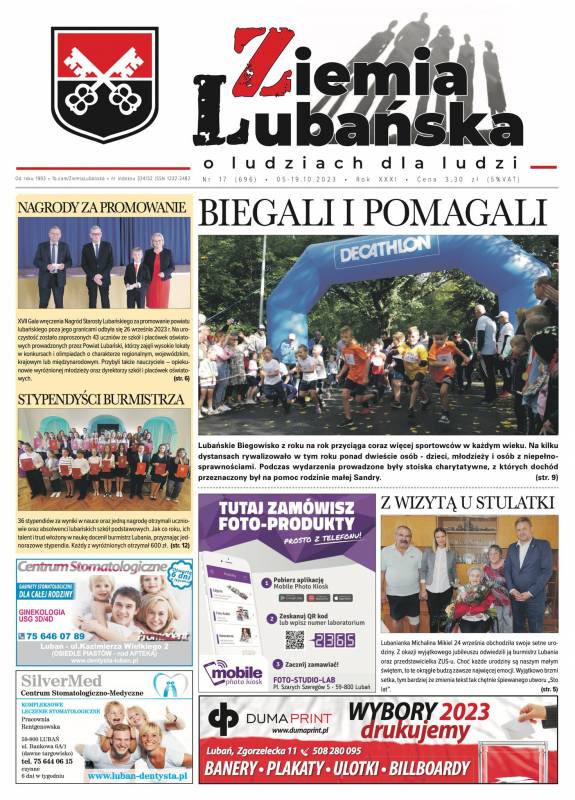 Jak w co drugi czwartek, od dziś w sprzedaży kolejny numer "Ziemi Lubańskiej". W numerze, m.in. o najzdolniejszych dzieciach i młodzieży - stypendystach Burmistrza i Starosty, o Lubańskim Biegowisku oraz cała strona komentarzy wyborczych o rozterkach przy urnach. Warto poczytać.