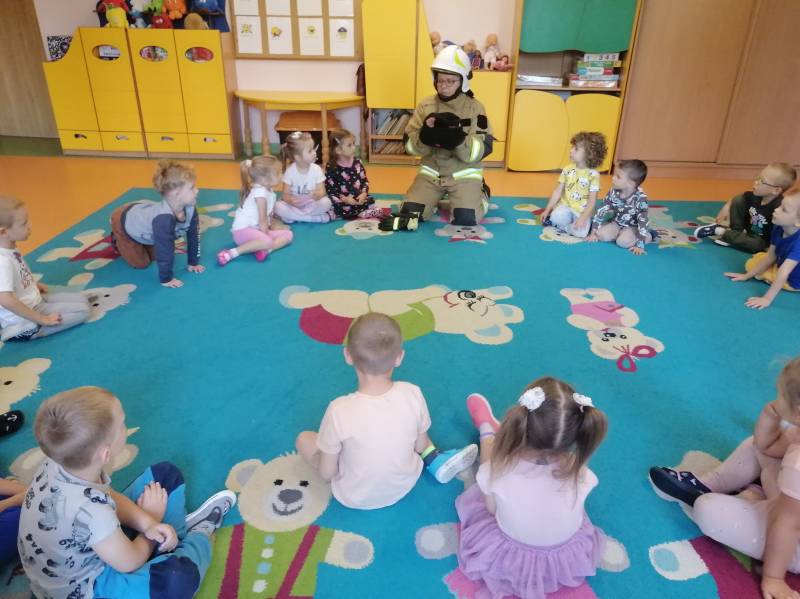 Dzisiaj w przedszkolu gościliśmy członka Ochotniczej Straży Pożarnej w Henrykowie Lubańskim. Pani Ilona w ciekawy sposób przybliżyła przedszkolakom specyfikę pracy strażaka. W trakcie spotkania dzieci dowiedziały się, że praca strażaka nie polega tylko na gaszeniu pożarów, ale również na udzielaniu pomocy podczas wypadków samochodowych. Wizyta gościa utrwaliła wiedzę najmłodszych w zakresie bezpieczeństwa oraz zachęciła dzieci do służby w straży pożarnej.
