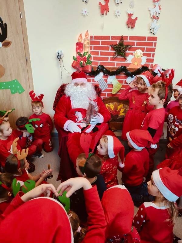 6 grudnia do naszego przedszkola zawitał Święty Mikołaj. Dzieci z niecierpliwością wyczekiwały tego dnia. Z ogromną radością i szczerym zaangażowaniem przywitały miłego gościa, śpiewając mu piosenki i recytując wiersze. Oczywiście Mikołaj przywiózł ze sobą prezenty, które bardzo spodobały się dzieciom. Ten dzień zapamietał każdy przedszkolak.