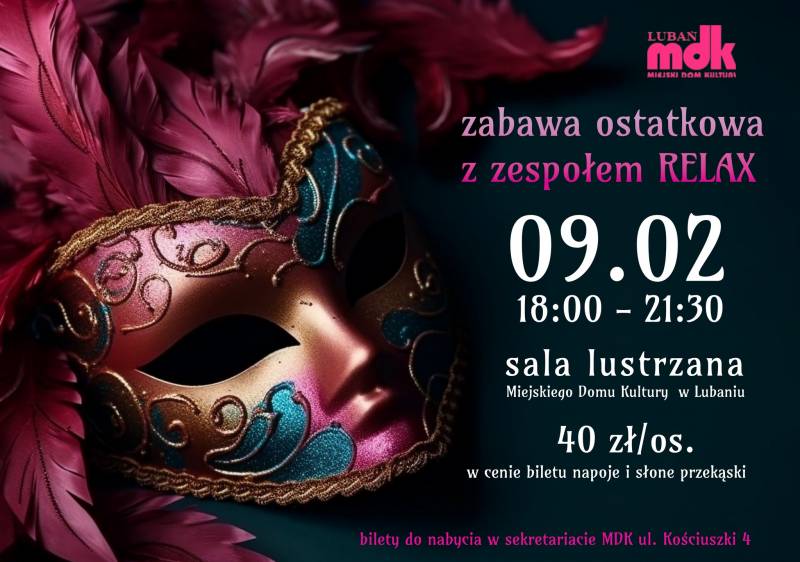 Wydarzenie na FB: Zabawa ostatkowa z zespołem RELAX - 9 lutego