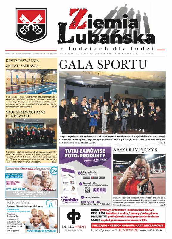W tym wydaniu jest m.in. obszerna relacja z Gali Sportu, o naszym paraolimpijczyku z Zawidowa, który wystąpi na igrzyskach w Paryżu, o otwarciu lubańskiego basenu po dwuletnim remoncie oraz wiele innych ważnych dla nas tematów.