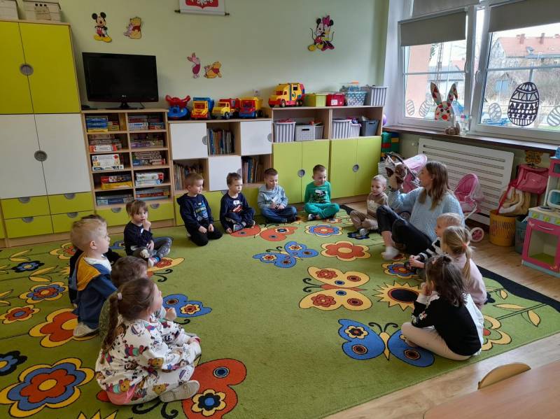 W naszym przedszkolu w grupie 4 latków odbywają się warsztaty z programu Poruszające Bajki o Emocjach prowadzone przez trenerki.