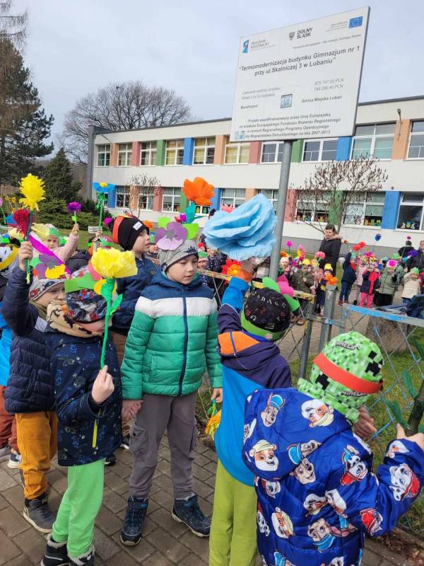 Uroczystości powitania Wiosny rozpoczęły się od zabaw związanych z tematyką pór roku. Mimo wielu atrakcji najbardziej oczekiwaną częścią dnia było wyjście na spacer, podczas którego mogliśmy pożegnać zimę i powitać wiosnę. Dzieci radośnie maszerowały w wiosennym korowodzie, na czele którego widniała Marzanna, którą następnie pożegnaliśmy według tradycji.